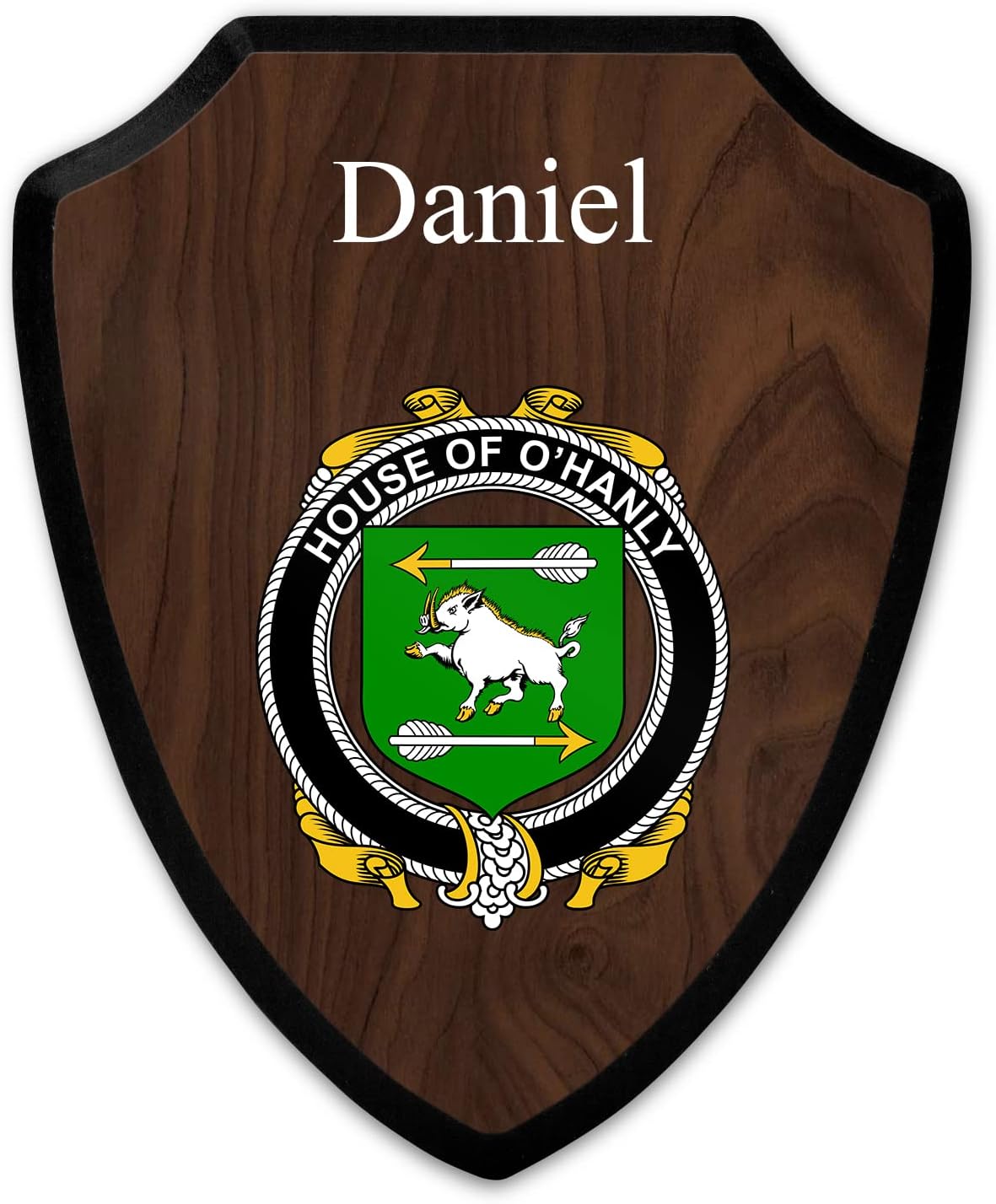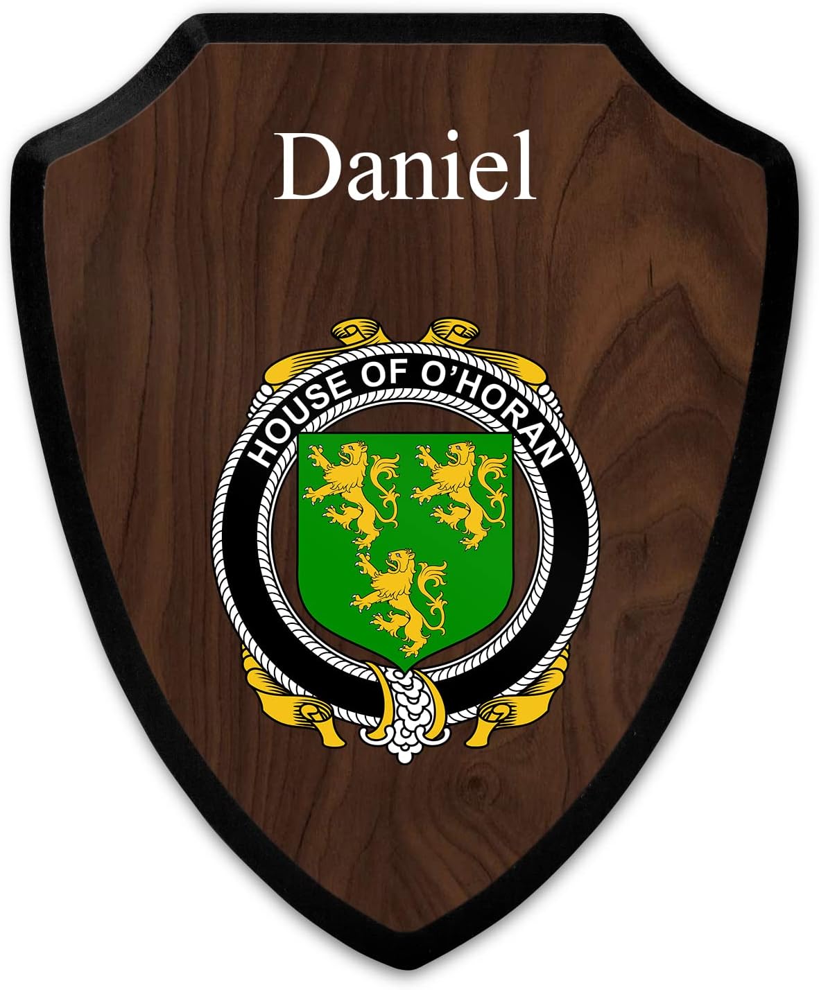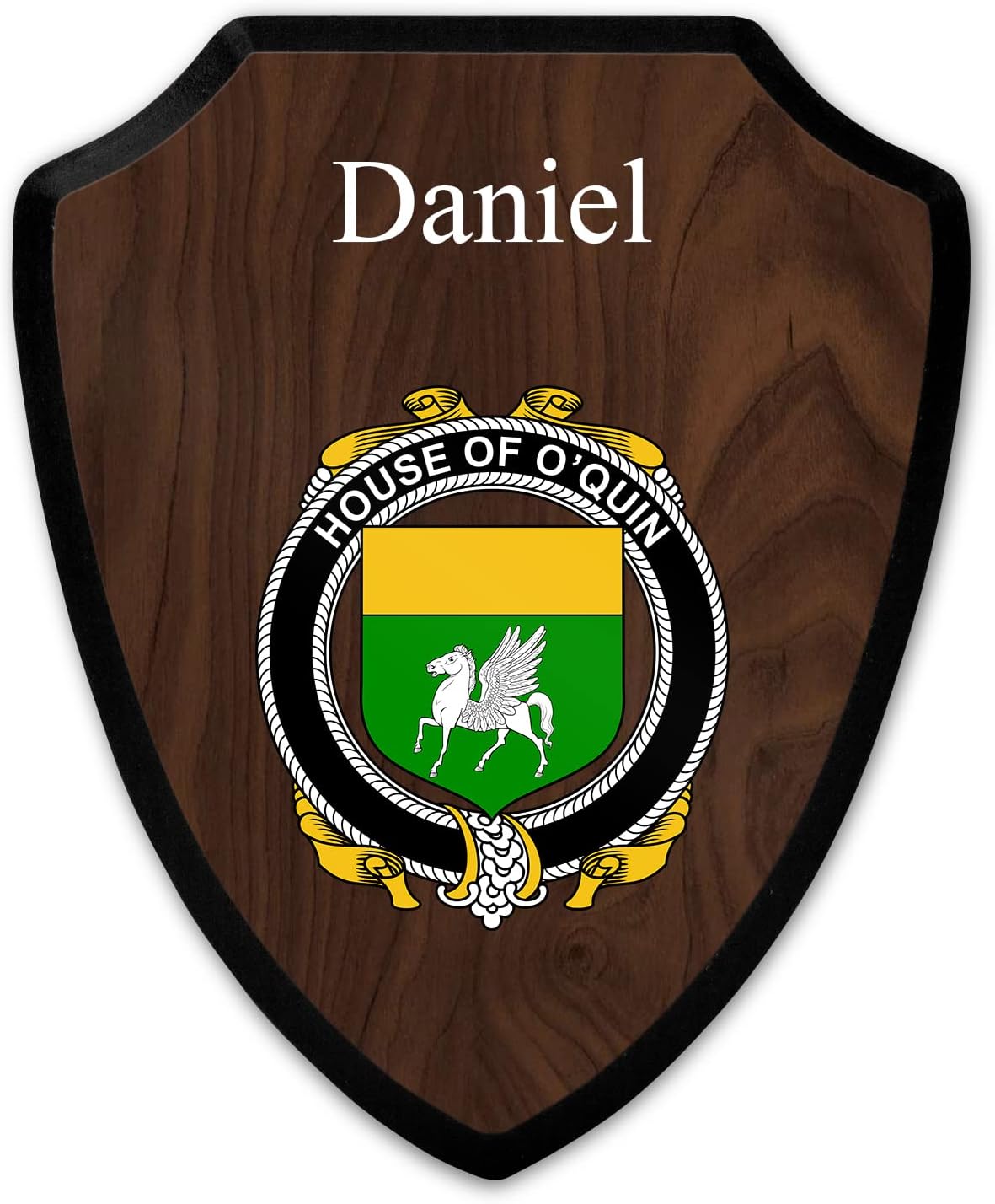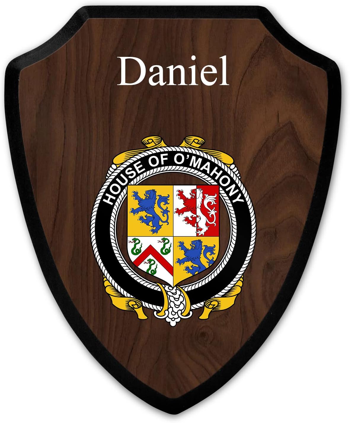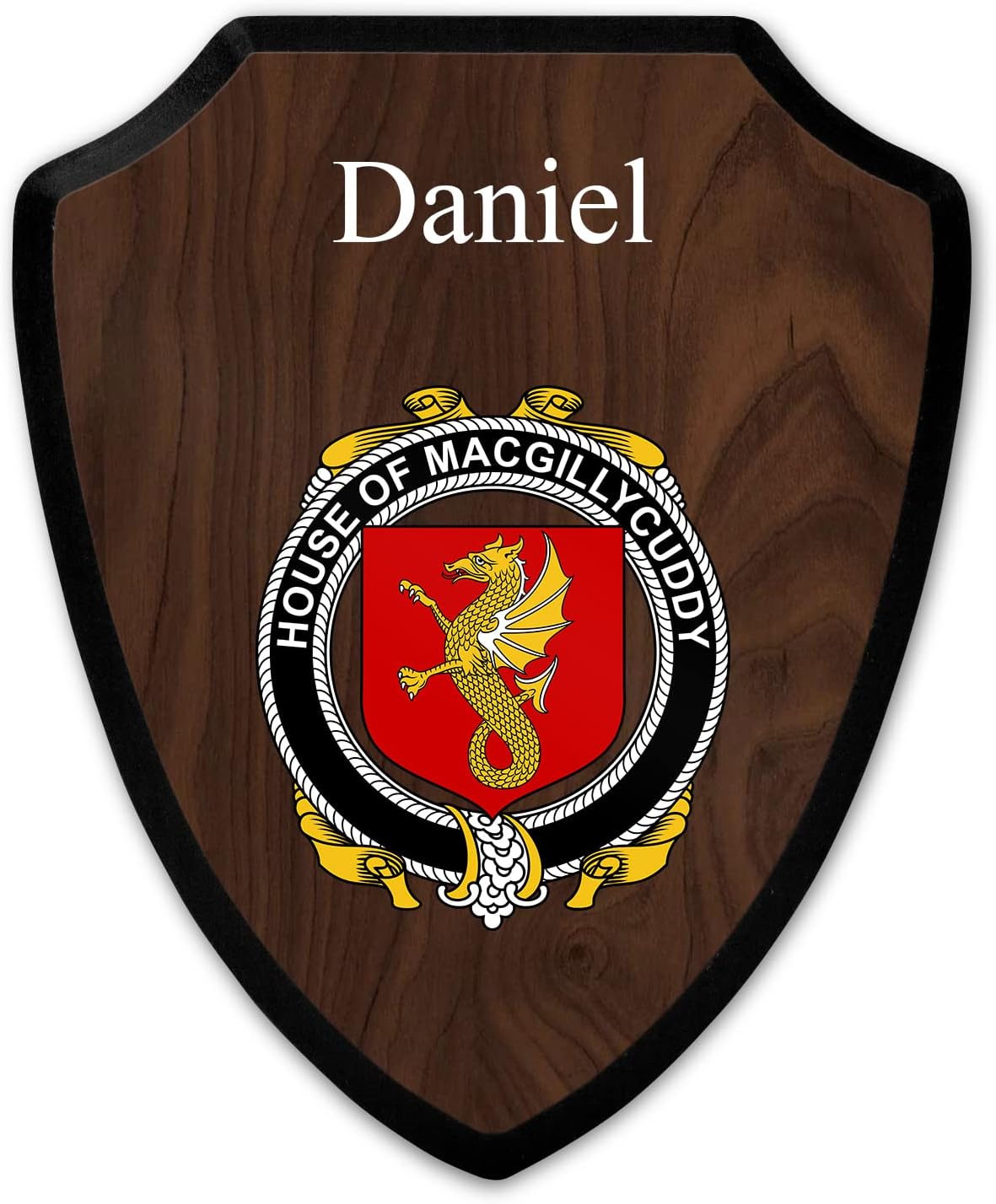 This beautifully crafted shield-shaped plaque is the perfect way to display your family crest. Measuring 7.75 inches wide by 9.125 inches tall, this plaque is the ideal size to be displayed on a wall, door or any other place of your choice. The plaque is sublimated, meaning the image of your family crest is infused into the surface of the plaque, ensuring the design will not fade or peel over time. This process also allows for vibrant and long-lasting colors that truly make your crest stand out. With its smooth edges and high-quality finish, this plaque is sure to be a treasured family heirloom for years to come. The back of the plaque has an inset hole which enables easy hanging, giving you flexibility in where to showcase it. Whether you choose to display it in your home, office, or give it as a gift, this sublimated shield-shaped plaque is a stunning way to celebrate your family heritage.