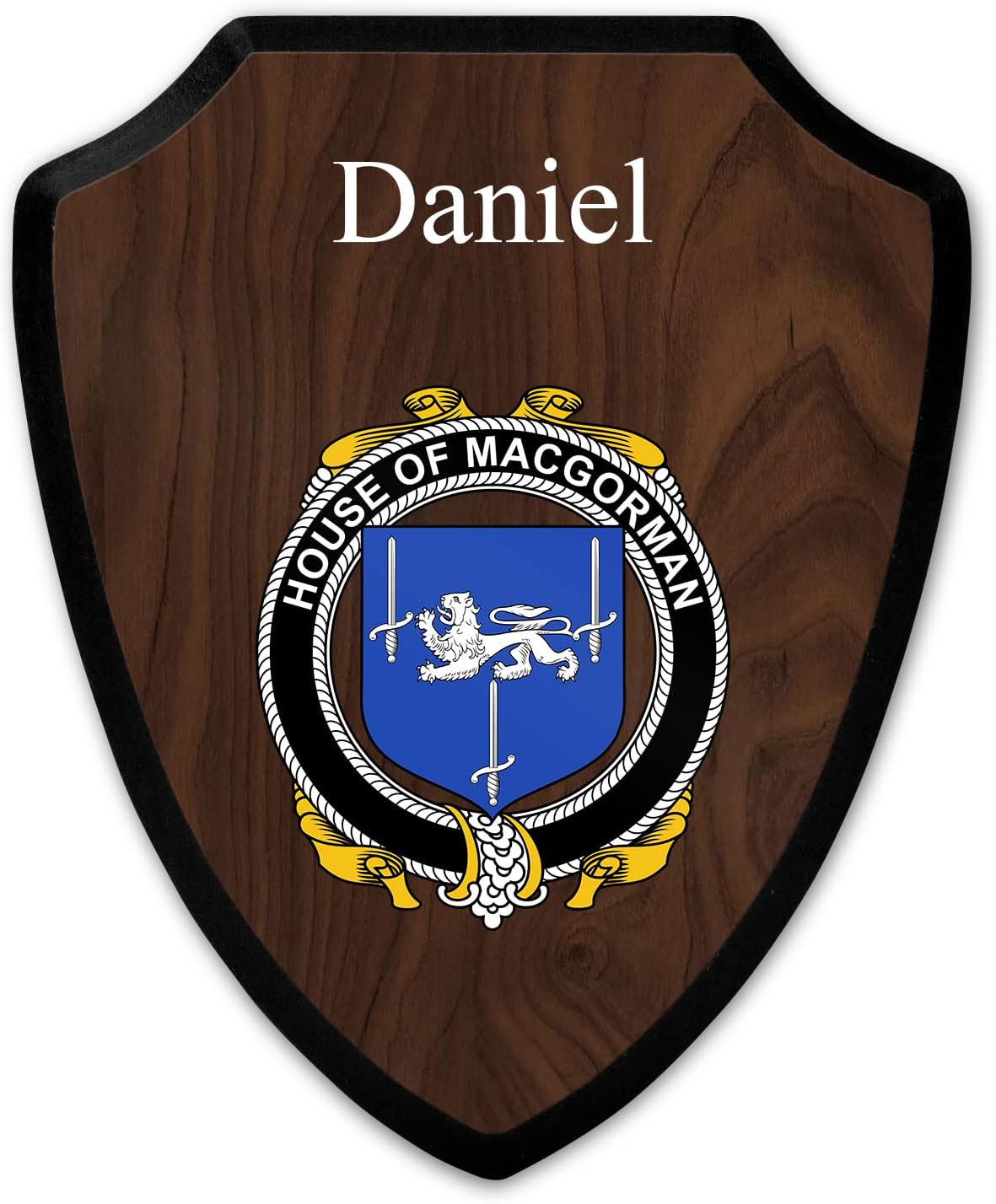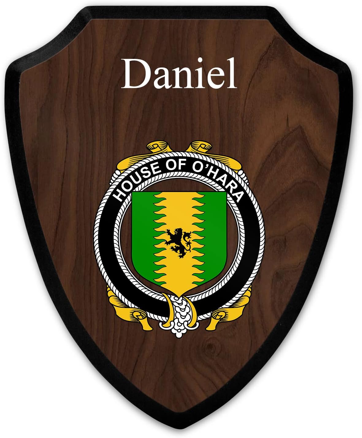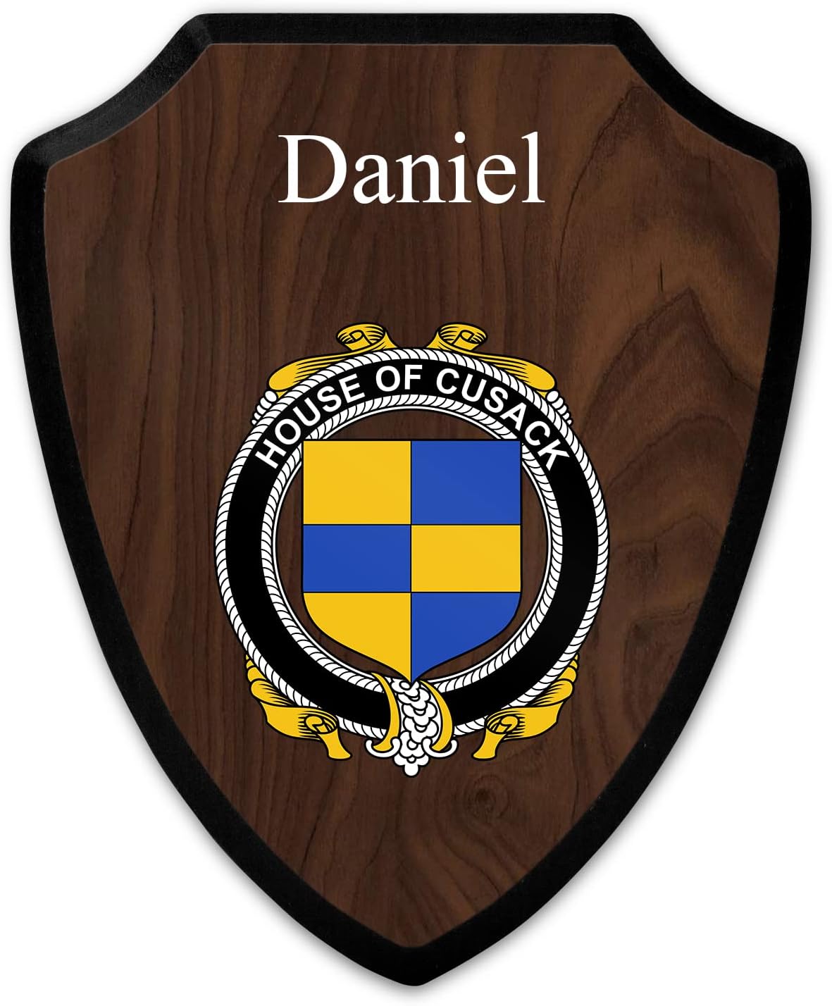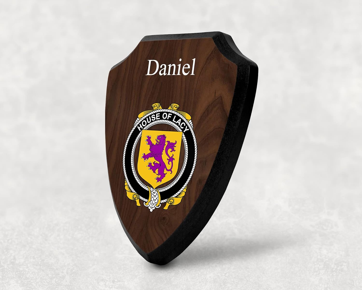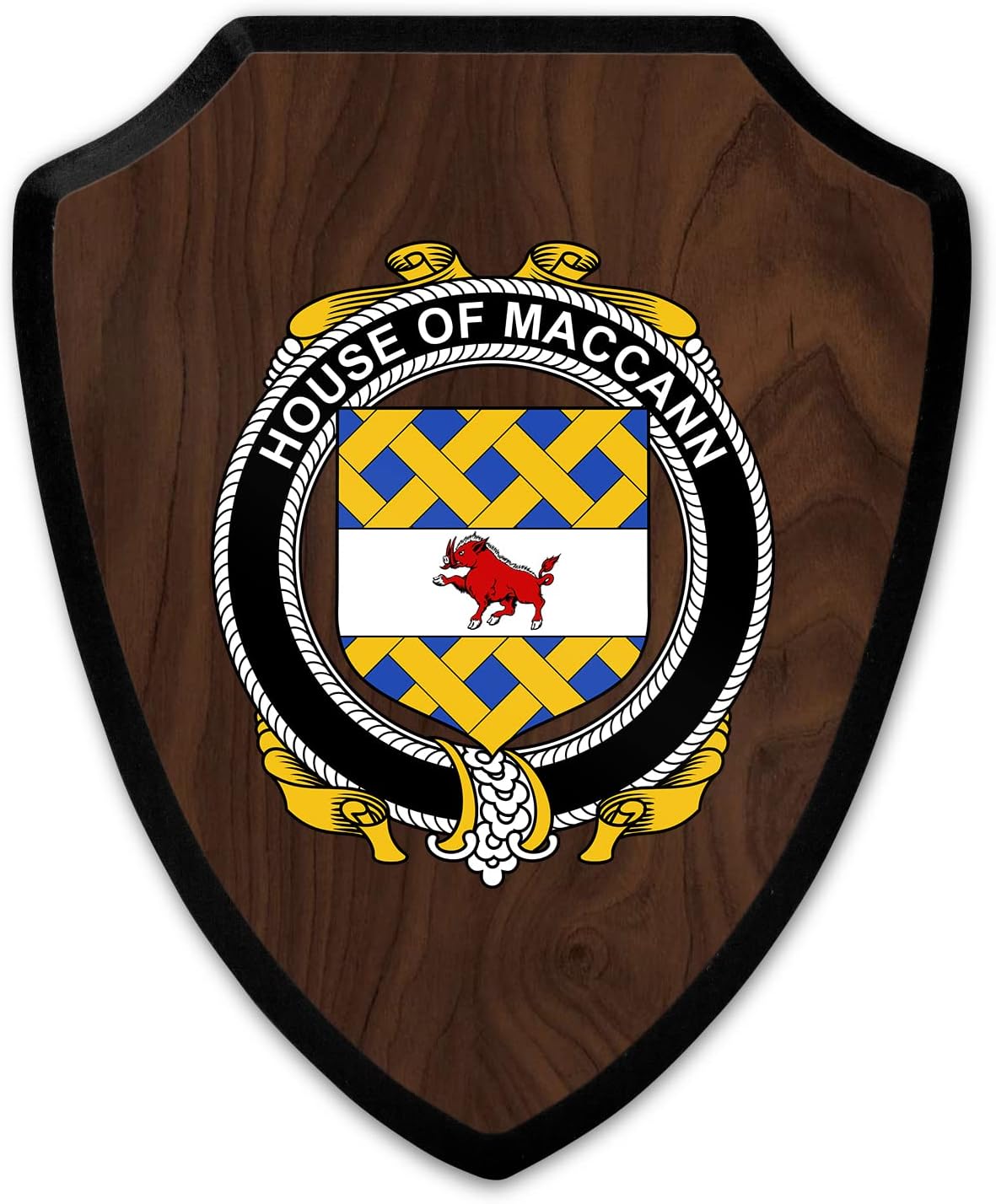 This beautifully crafted shield-shaped plaque is the perfect way to display your family crest. Measuring 7.75 inches wide by 9.125 inches tall, this plaque is the ideal size to be displayed on a wall, door or any other place of your choice. The plaque is sublimated, meaning the image of your family crest is infused into the surface of the plaque, ensuring the design will not fade or peel over time. This process also allows for vibrant and long-lasting colors that truly make your crest stand out. With its smooth edges and high-quality finish, this plaque is sure to be a treasured family heirloom for years to come. The back of the plaque has an inset hole which enables easy hanging, giving you flexibility in where to showcase it. Whether you choose to display it in your home, office, or give it as a gift, this sublimated shield-shaped plaque is a stunning way to celebrate your family heritage.