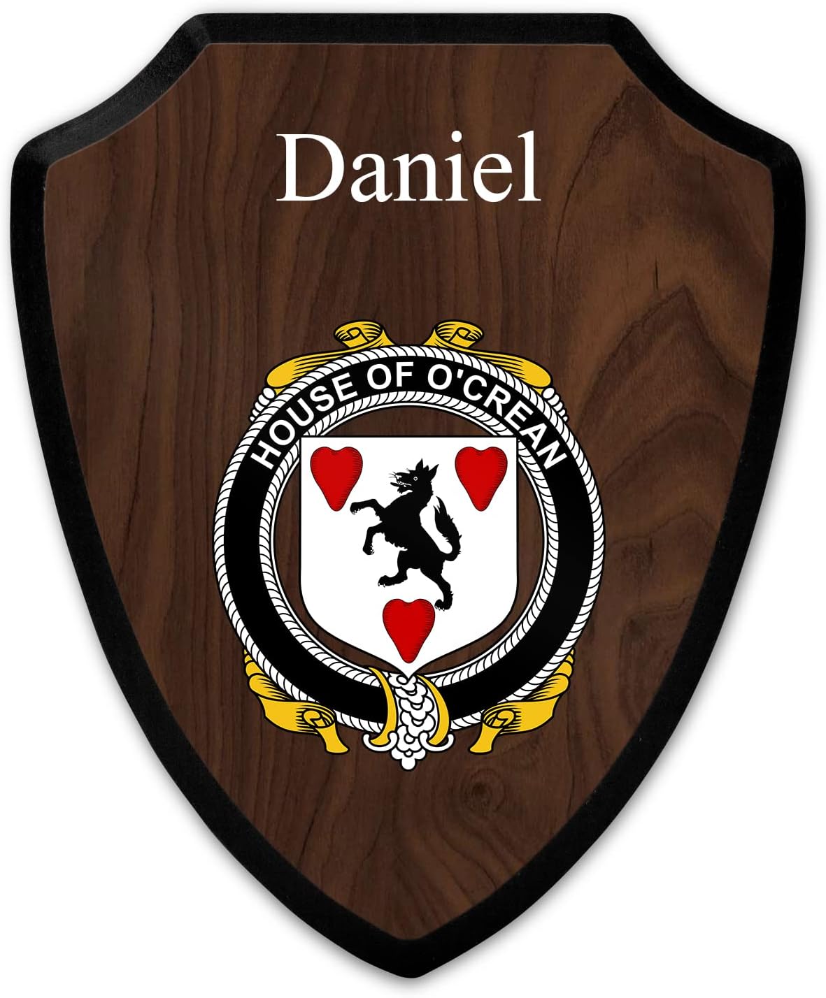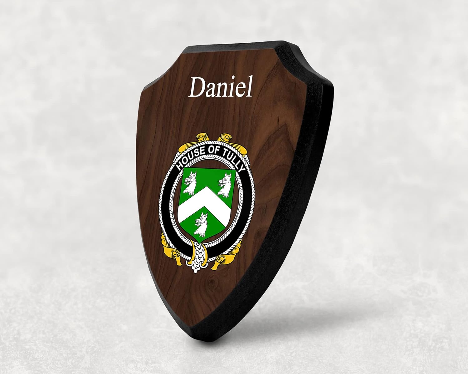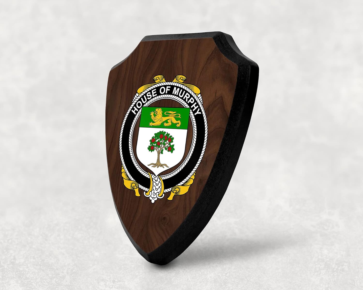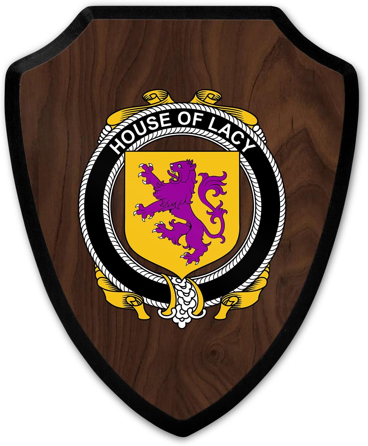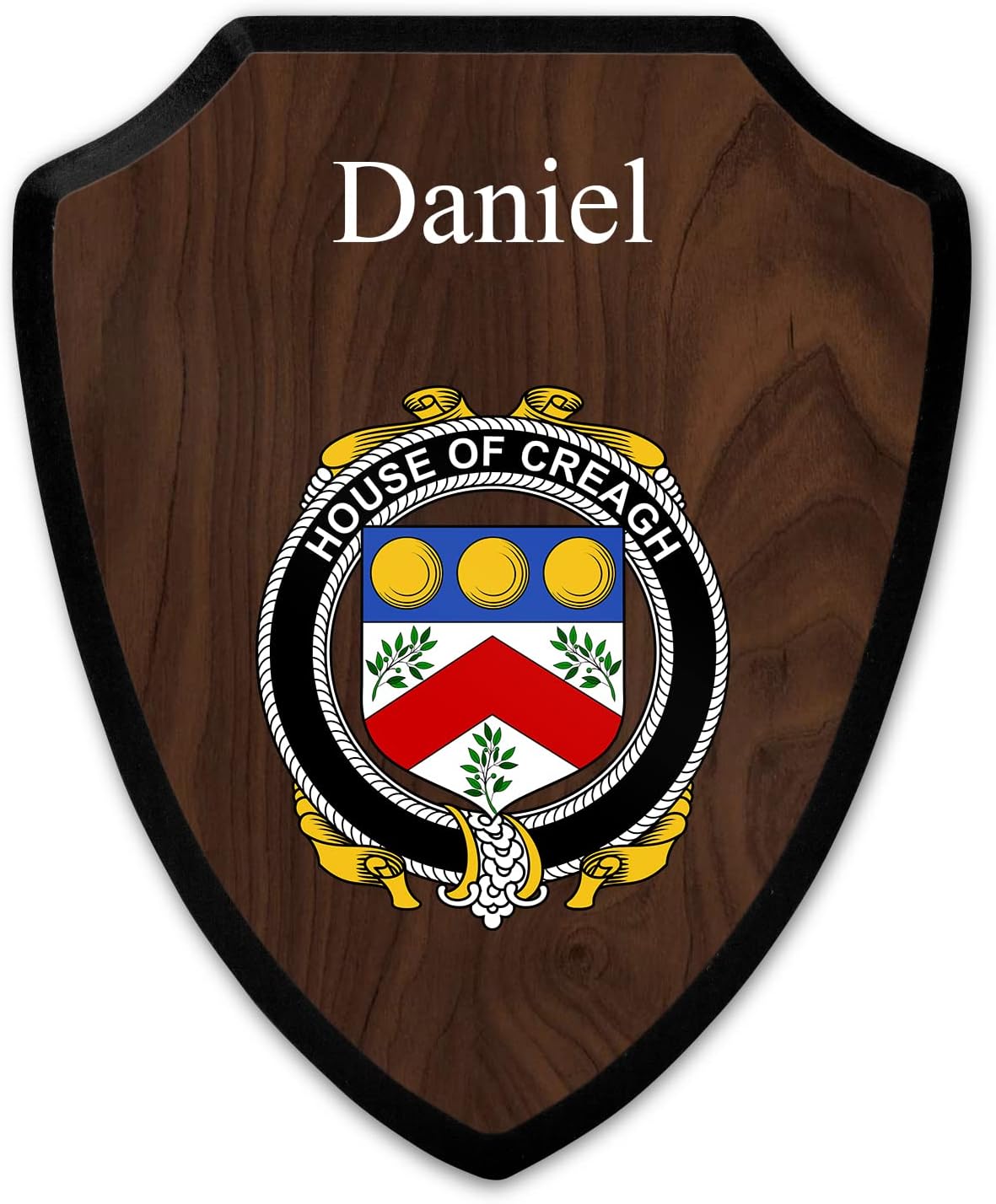 This beautifully crafted shield-shaped plaque is the perfect way to display your family crest. Measuring 7.75 inches wide by 9.125 inches tall, this plaque is the ideal size to be displayed on a wall, door or any other place of your choice. The plaque is sublimated, meaning the image of your family crest is infused into the surface of the plaque, ensuring the design will not fade or peel over time. This process also allows for vibrant and long-lasting colors that truly make your crest stand out. With its smooth edges and high-quality finish, this plaque is sure to be a treasured family heirloom for years to come. The back of the plaque has an inset hole which enables easy hanging, giving you flexibility in where to showcase it. Whether you choose to display it in your home, office, or give it as a gift, this sublimated shield-shaped plaque is a stunning way to celebrate your family heritage.
