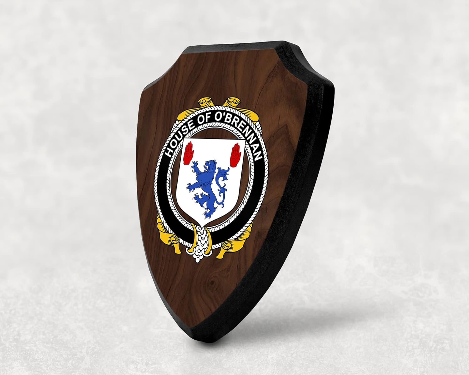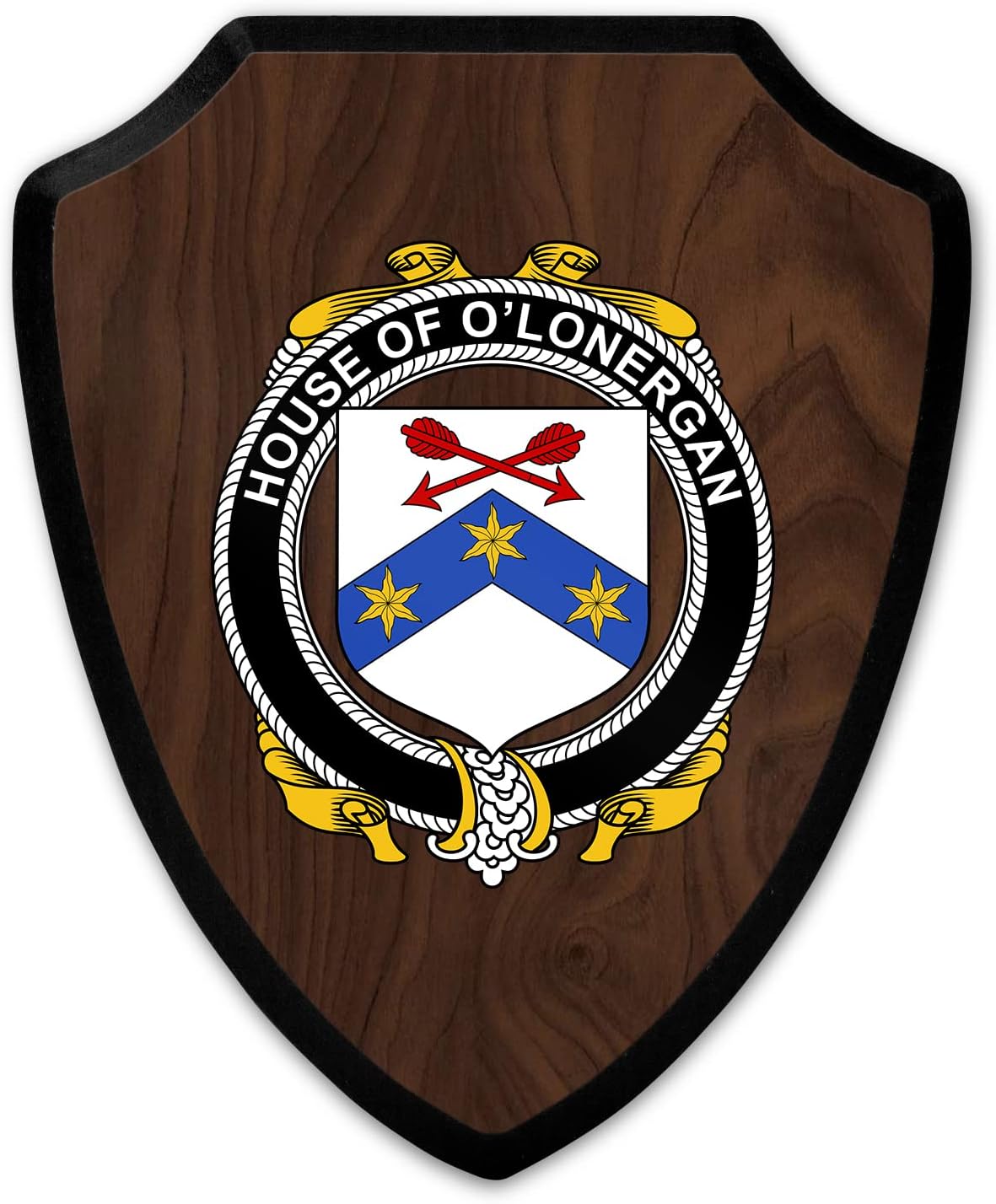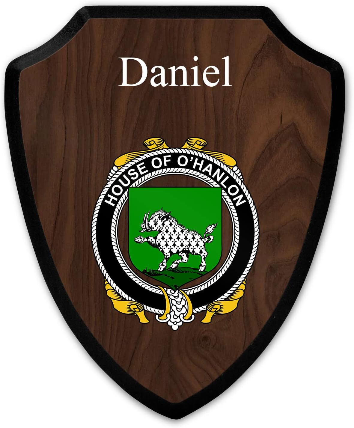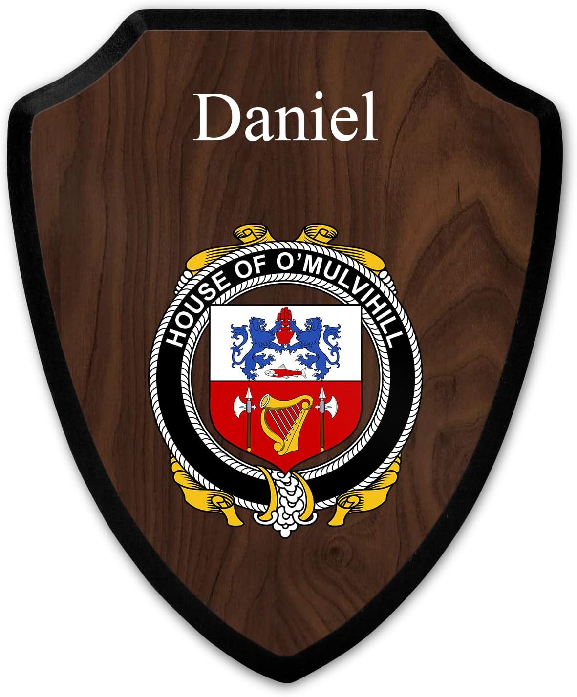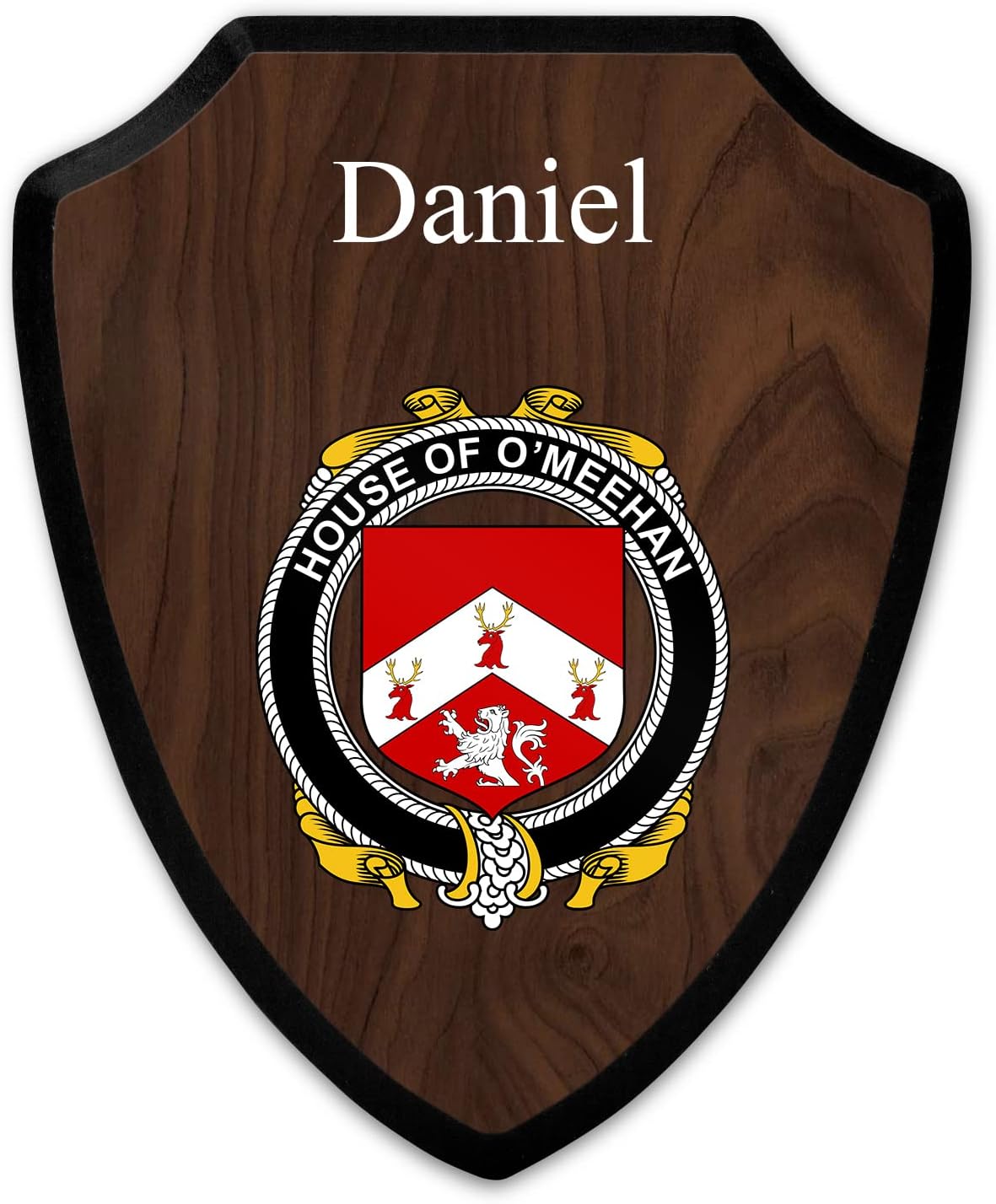 This beautifully crafted shield-shaped plaque is the perfect way to display your family crest. Measuring 7.75 inches wide by 9.125 inches tall, this plaque is the ideal size to be displayed on a wall, door or any other place of your choice. The plaque is sublimated, meaning the image of your family crest is infused into the surface of the plaque, ensuring the design will not fade or peel over time. This process also allows for vibrant and long-lasting colors that truly make your crest stand out. With its smooth edges and high-quality finish, this plaque is sure to be a treasured family heirloom for years to come. The back of the plaque has an inset hole which enables easy hanging, giving you flexibility in where to showcase it. Whether you choose to display it in your home, office, or give it as a gift, this sublimated shield-shaped plaque is a stunning way to celebrate your family heritage.
