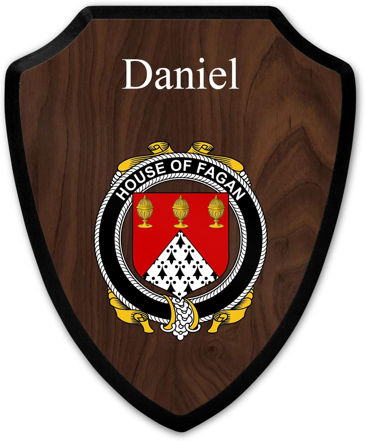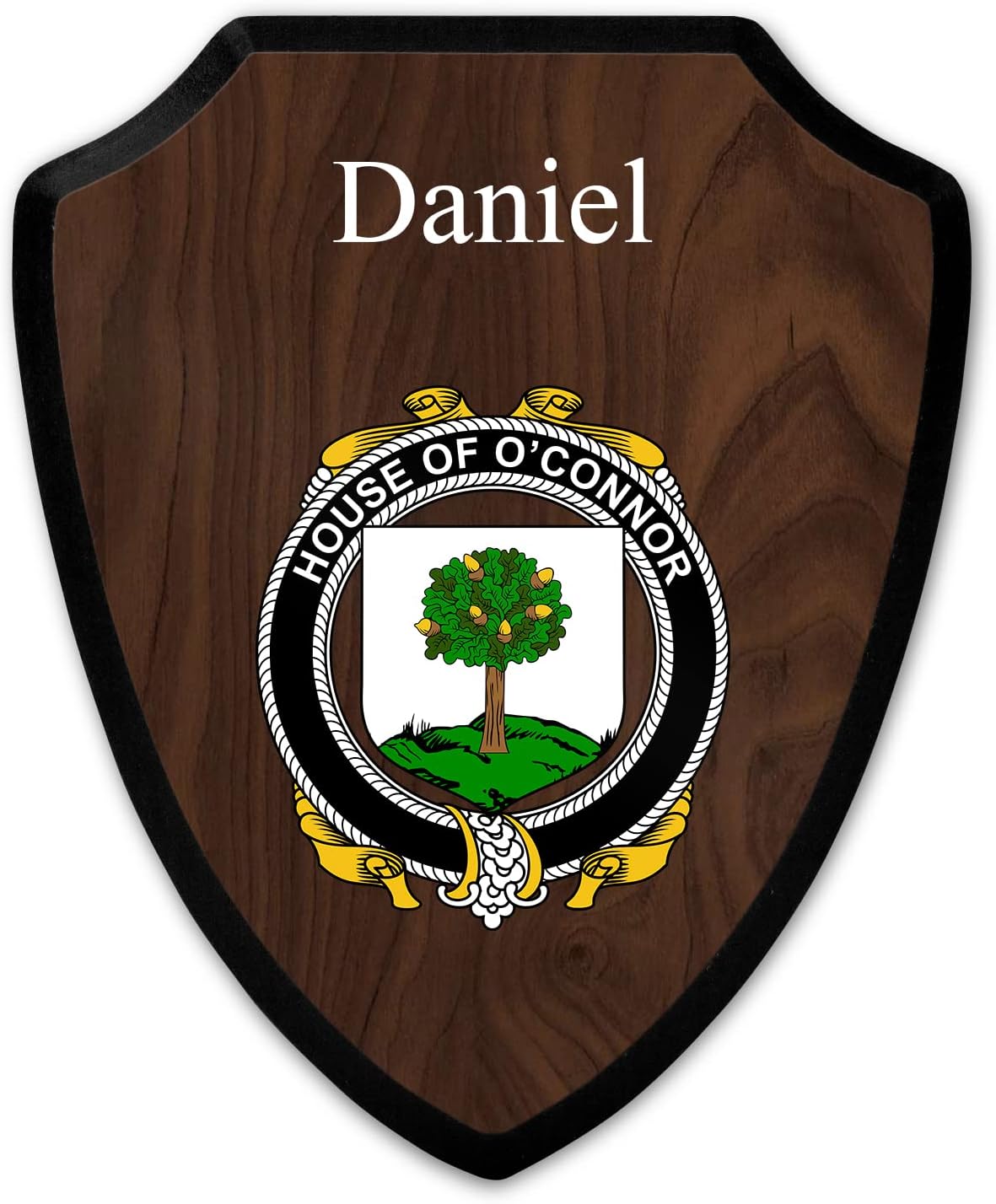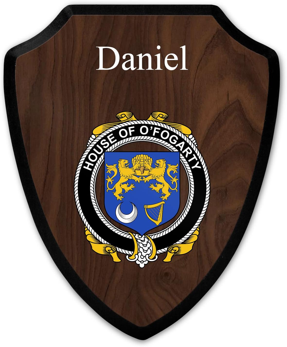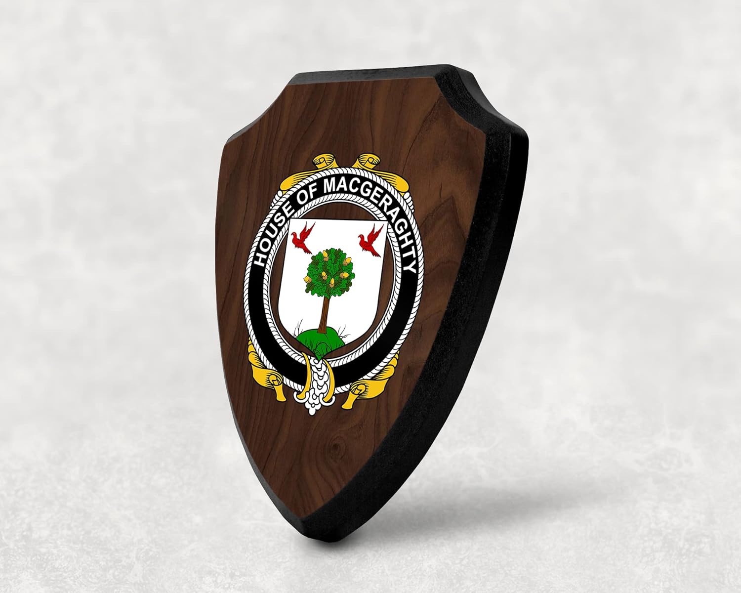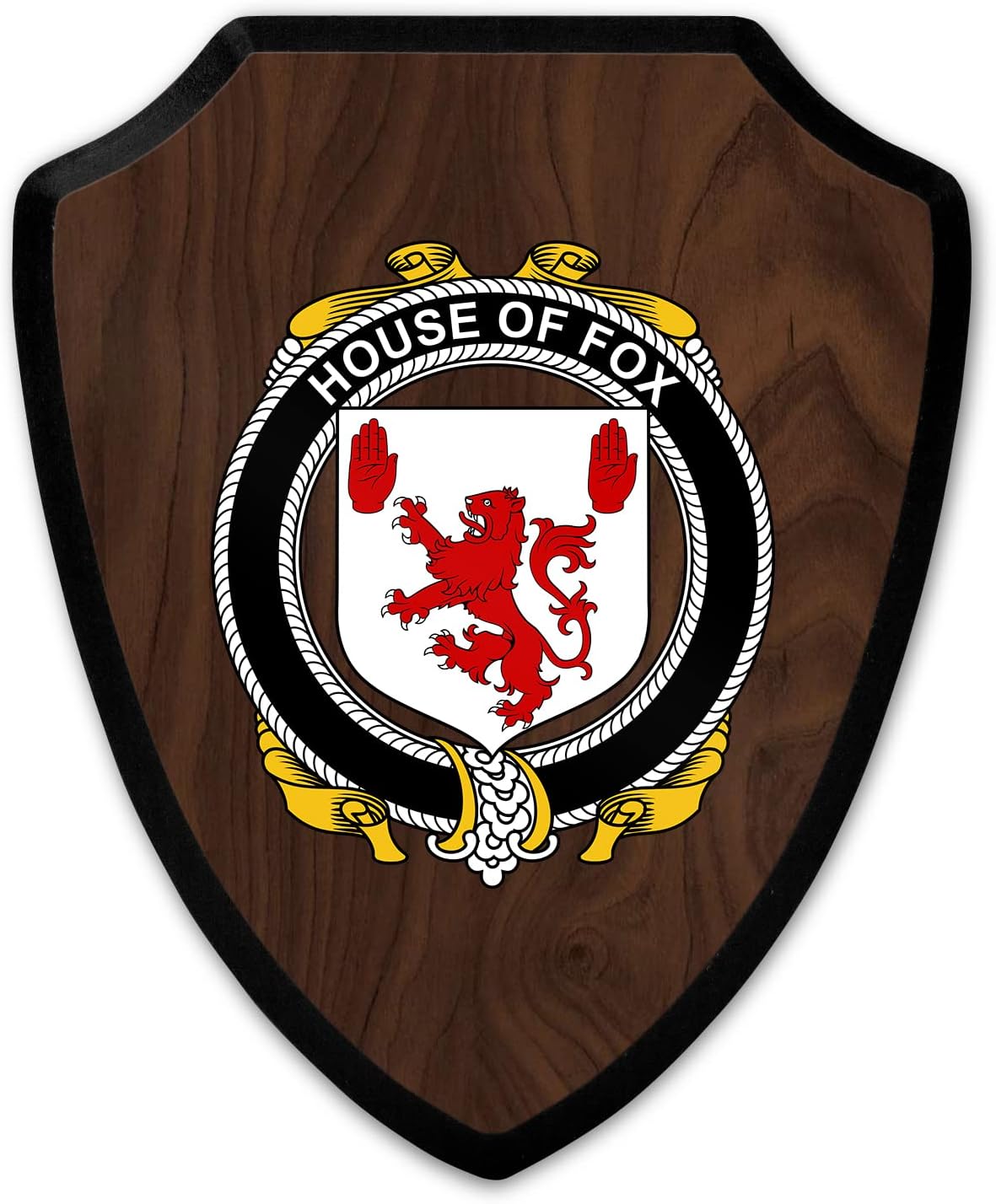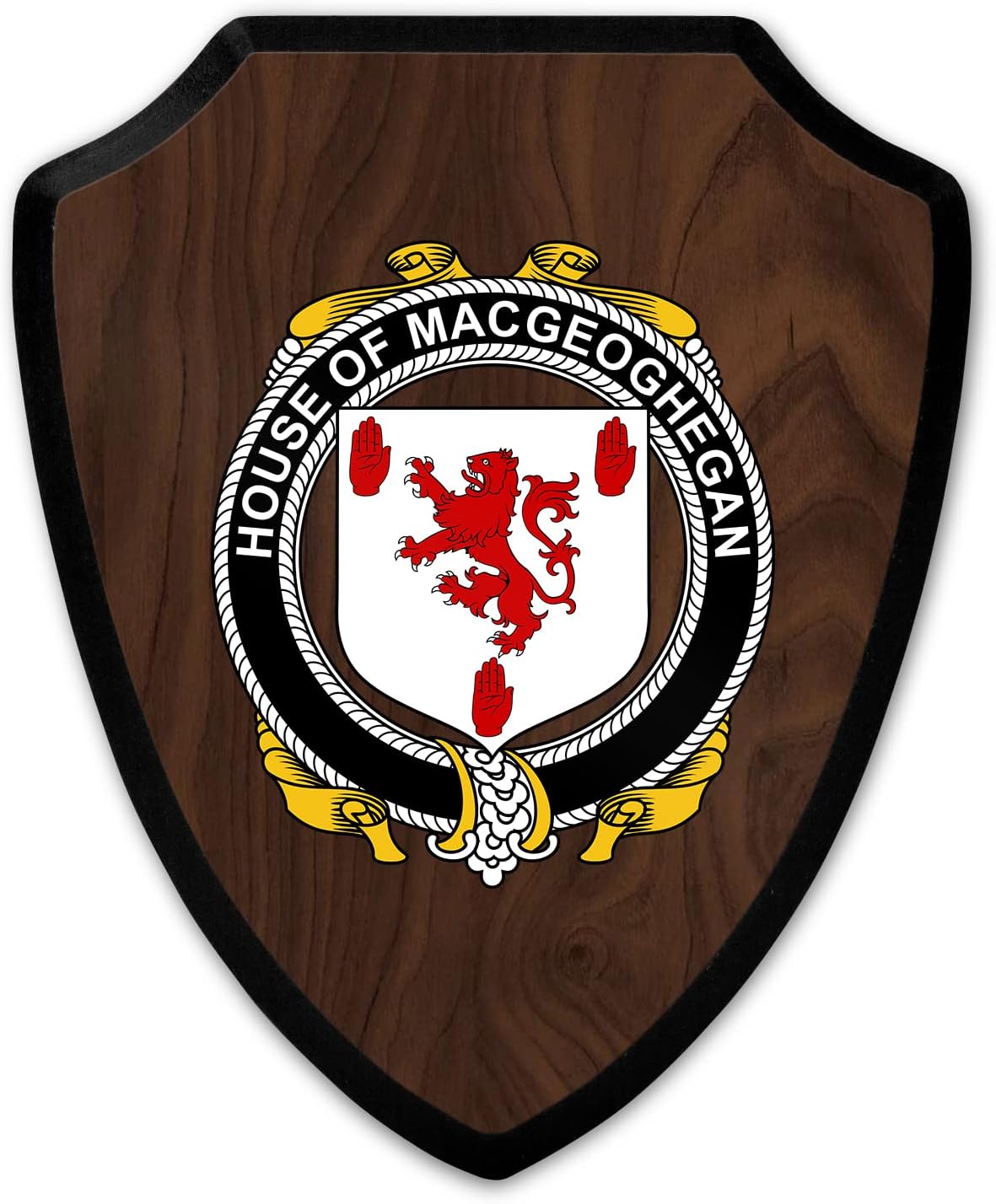This beautifully crafted shield-shaped plaque is the perfect way to display your family crest. Measuring 7.75 inches wide by 9.125 inches tall, this plaque is the ideal size to be displayed on a wall, door or any other place of your choice. The plaque is sublimated, meaning the image of your family crest is infused into the surface of the plaque, ensuring the design will not fade or peel over time. This process also allows for vibrant and long-lasting colors that truly make your crest stand out. With its smooth edges and high-quality finish, this plaque is sure to be a treasured family heirloom for years to come. The back of the plaque has an inset hole which enables easy hanging, giving you flexibility in where to showcase it. Whether you choose to display it in your home, office, or give it as a gift, this sublimated shield-shaped plaque is a stunning way to celebrate your family heritage.