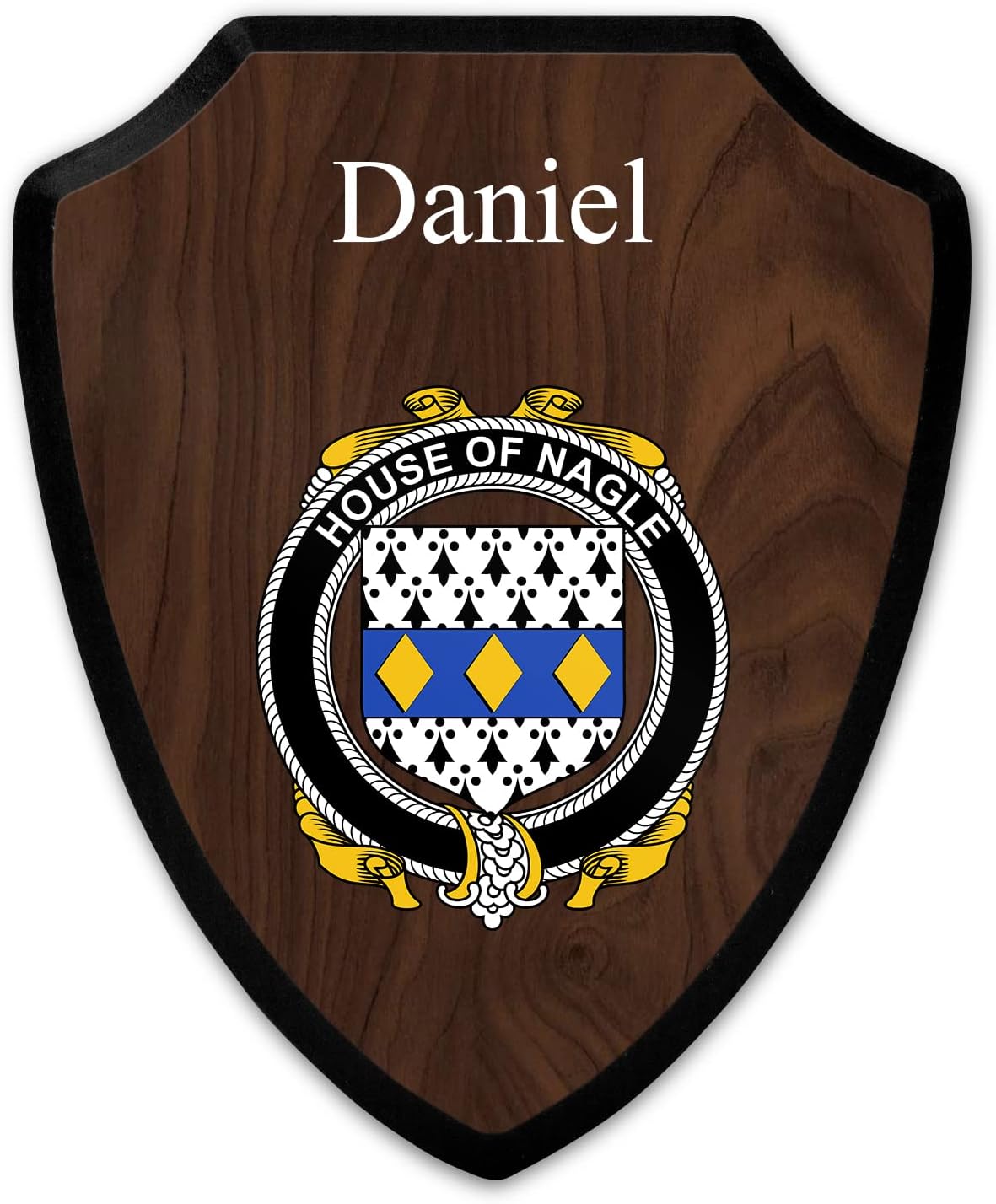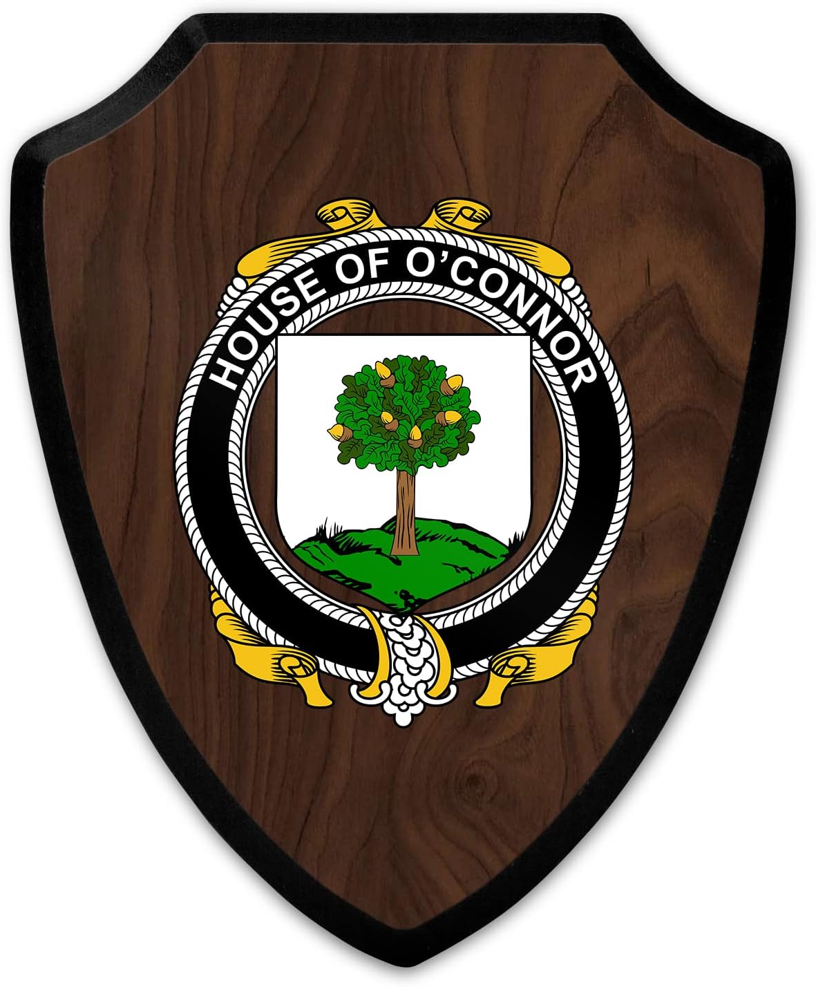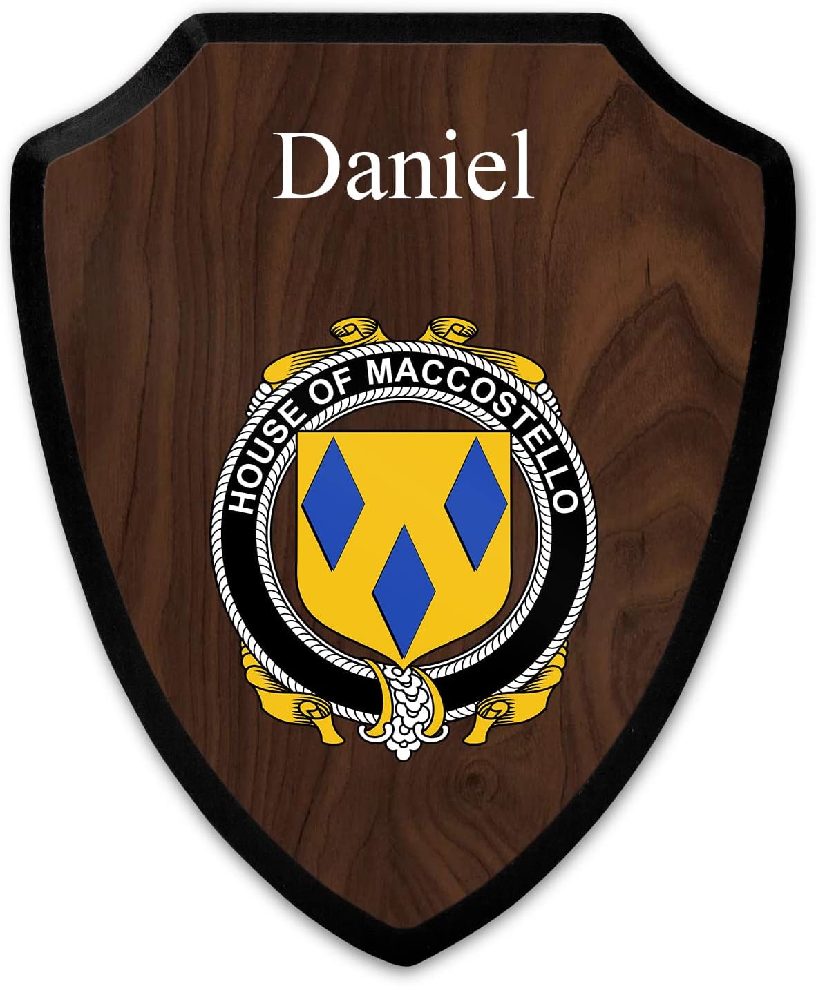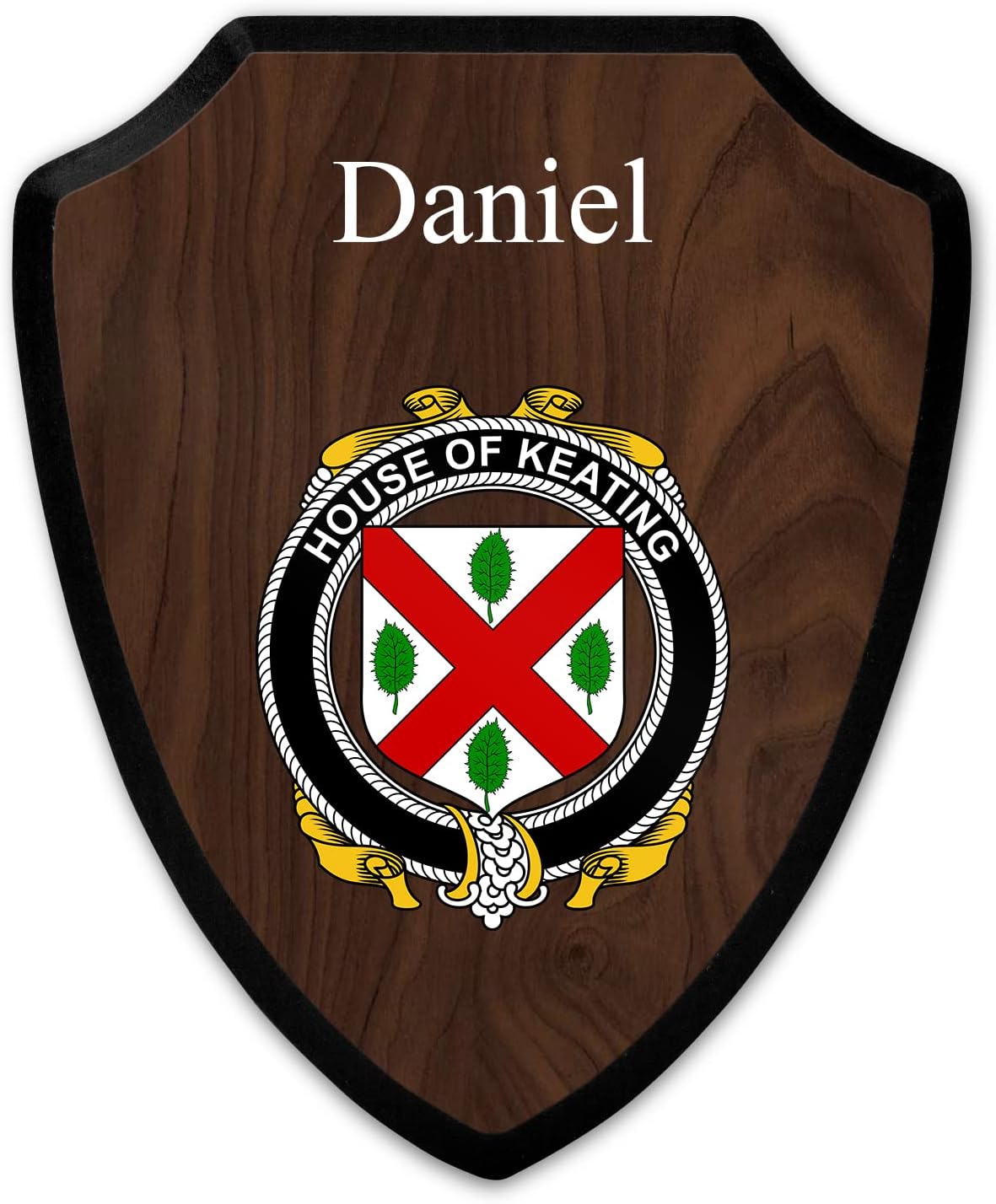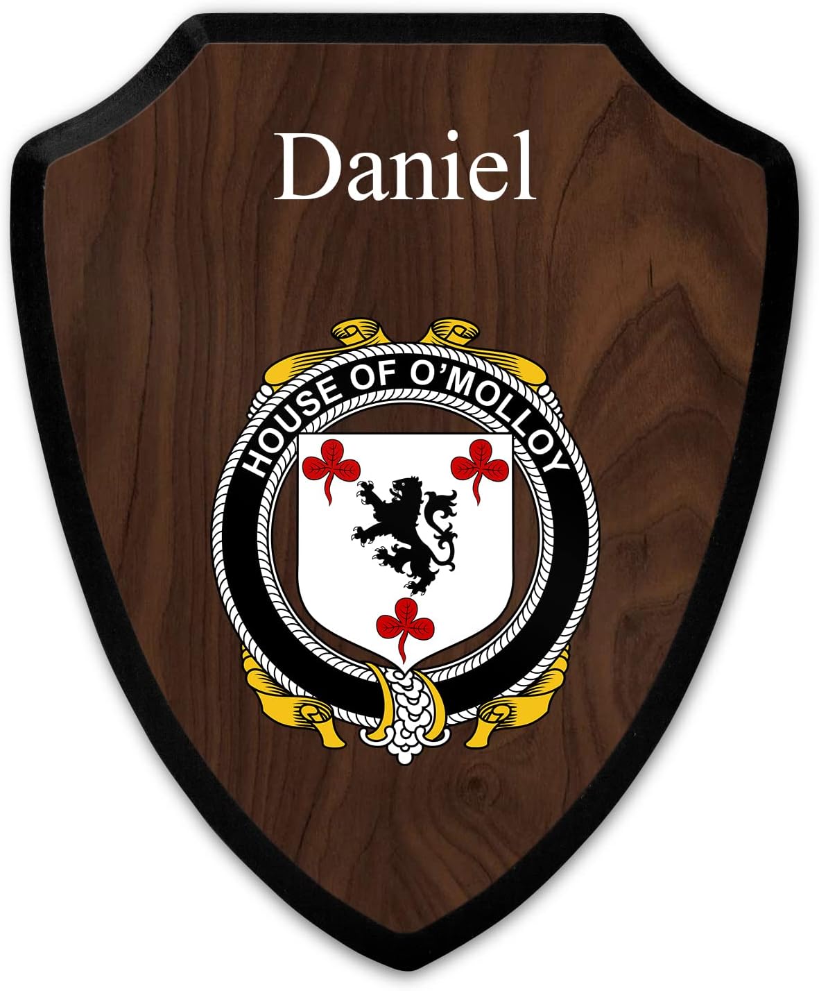 This beautifully crafted shield-shaped plaque is the perfect way to display your family crest. Measuring 7.75 inches wide by 9.125 inches tall, this plaque is the ideal size to be displayed on a wall, door or any other place of your choice. The plaque is sublimated, meaning the image of your family crest is infused into the surface of the plaque, ensuring the design will not fade or peel over time. This process also allows for vibrant and long-lasting colors that truly make your crest stand out. With its smooth edges and high-quality finish, this plaque is sure to be a treasured family heirloom for years to come. The back of the plaque has an inset hole which enables easy hanging, giving you flexibility in where to showcase it. Whether you choose to display it in your home, office, or give it as a gift, this sublimated shield-shaped plaque is a stunning way to celebrate your family heritage.