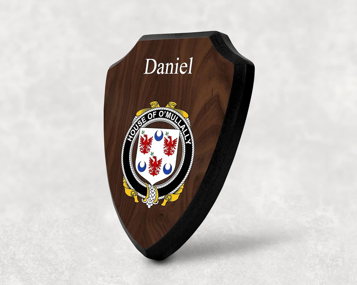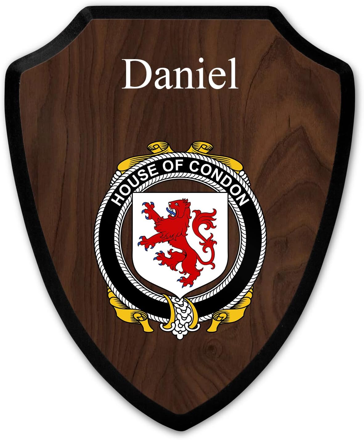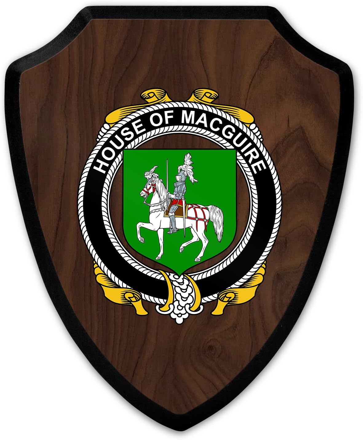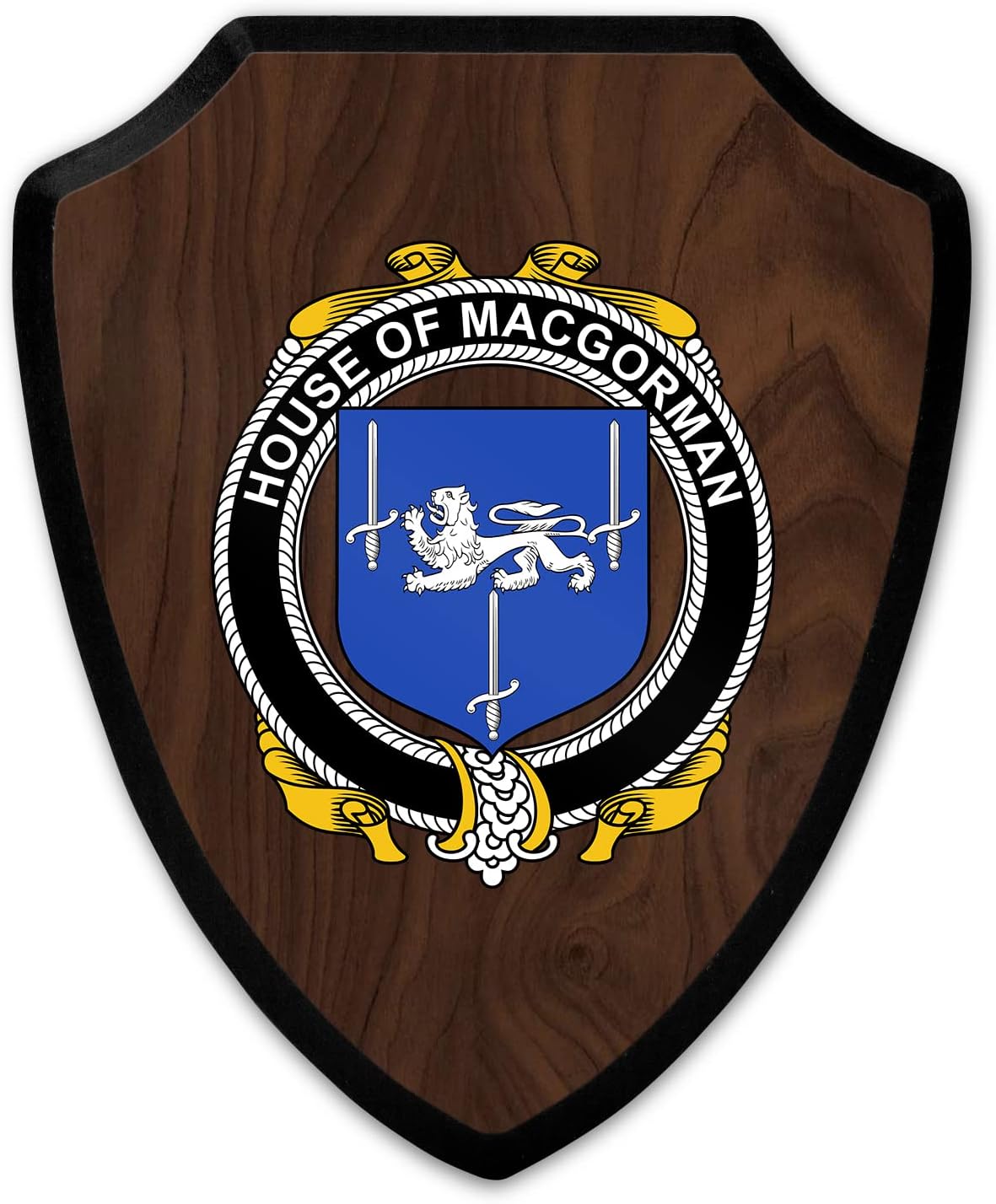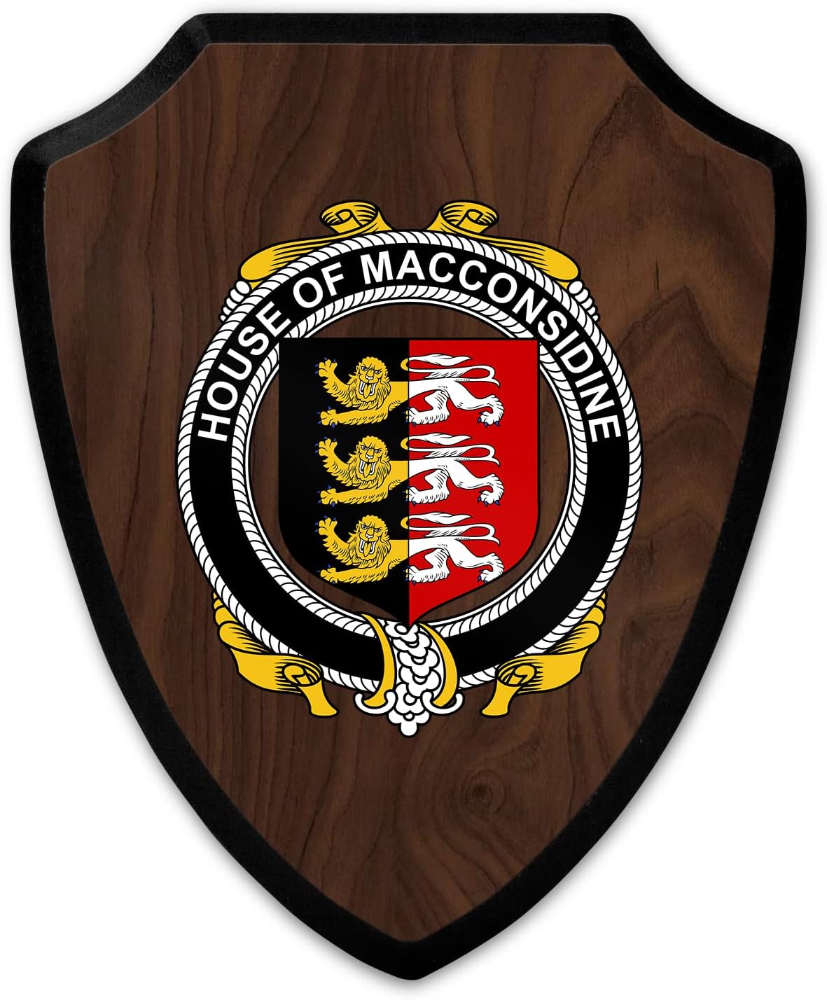 This beautifully crafted shield-shaped plaque is the perfect way to display your family crest. Measuring 7.75 inches wide by 9.125 inches tall, this plaque is the ideal size to be displayed on a wall, door or any other place of your choice. The plaque is sublimated, meaning the image of your family crest is infused into the surface of the plaque, ensuring the design will not fade or peel over time. This process also allows for vibrant and long-lasting colors that truly make your crest stand out. With its smooth edges and high-quality finish, this plaque is sure to be a treasured family heirloom for years to come. The back of the plaque has an inset hole which enables easy hanging, giving you flexibility in where to showcase it. Whether you choose to display it in your home, office, or give it as a gift, this sublimated shield-shaped plaque is a stunning way to celebrate your family heritage.