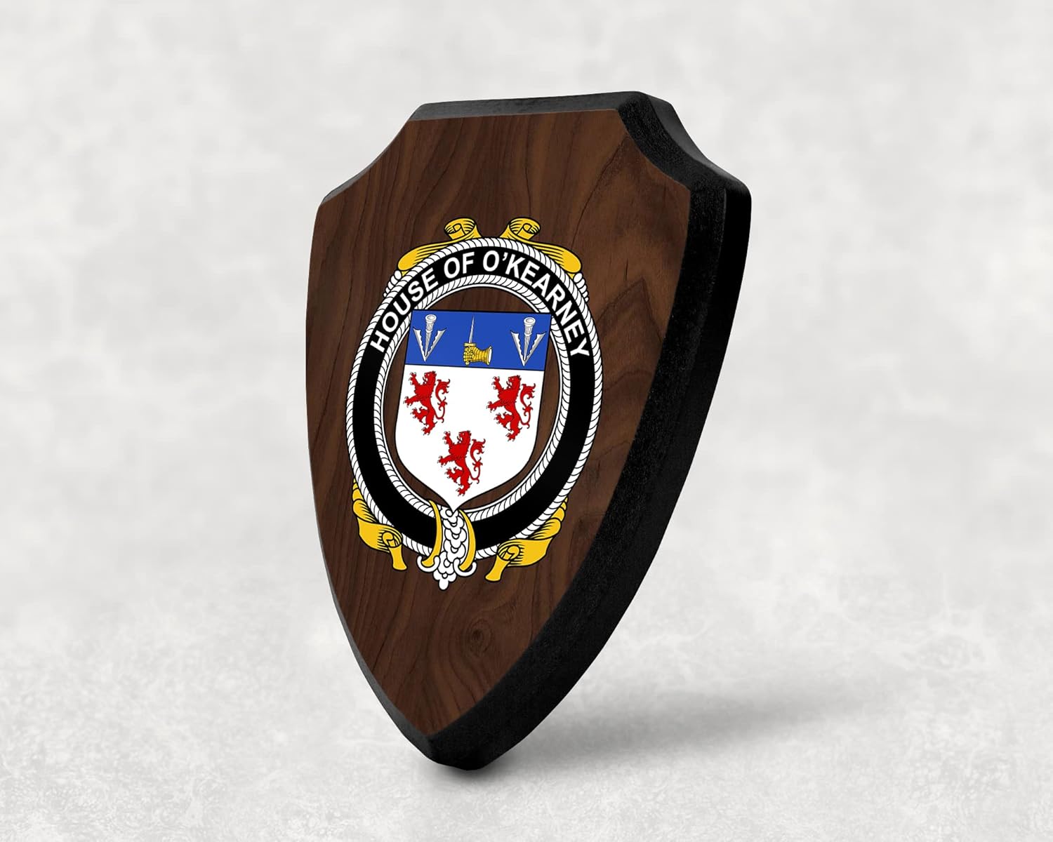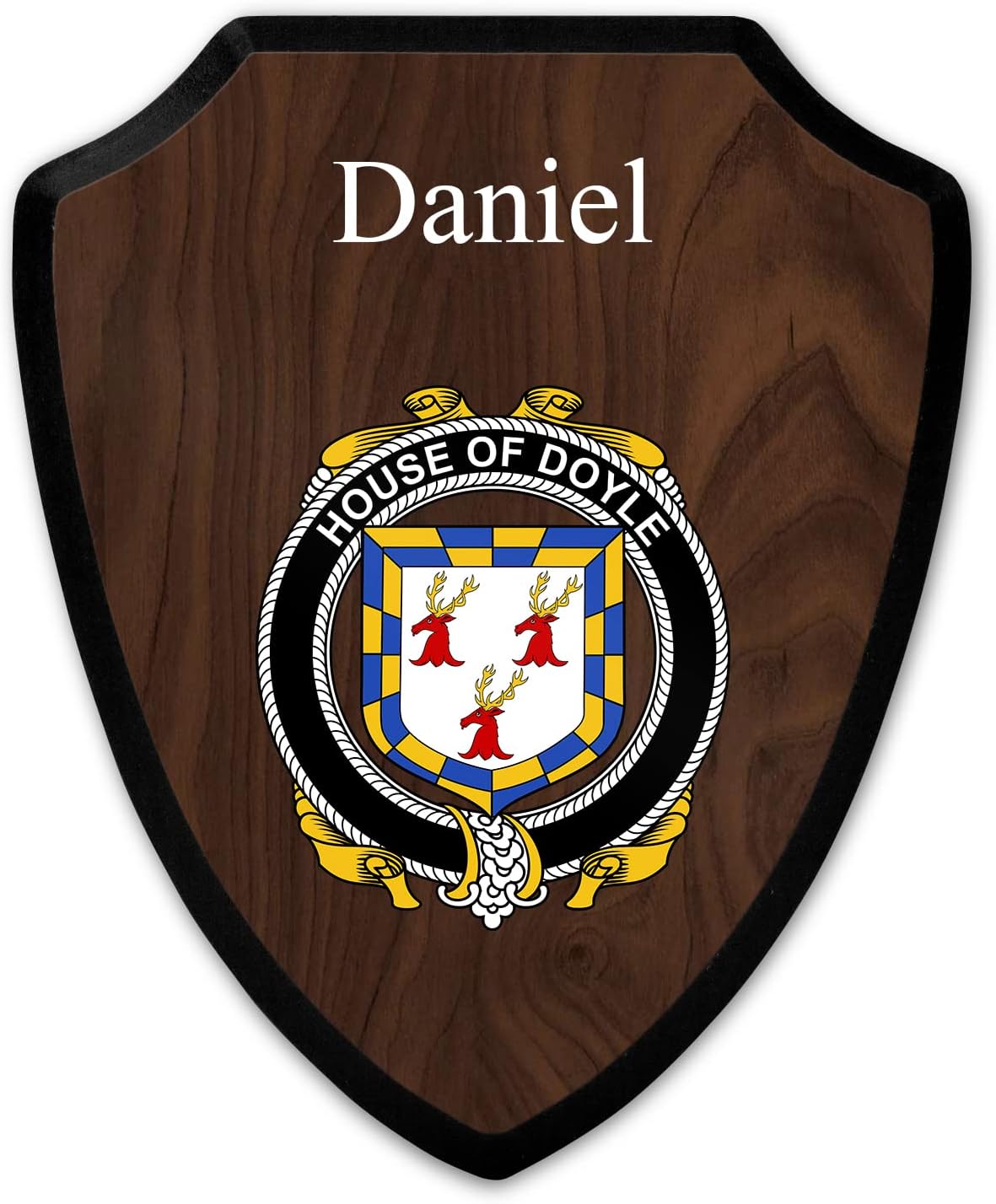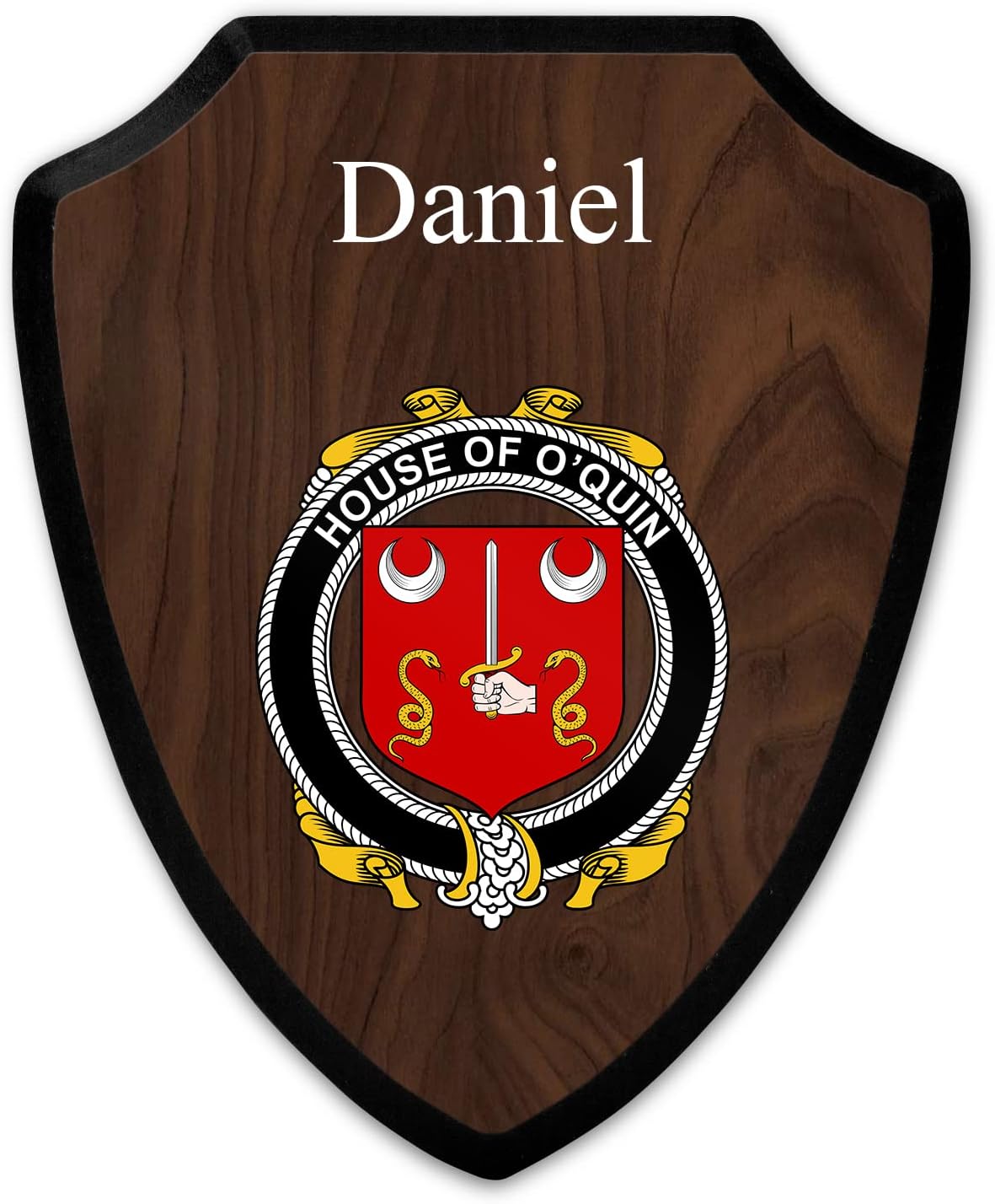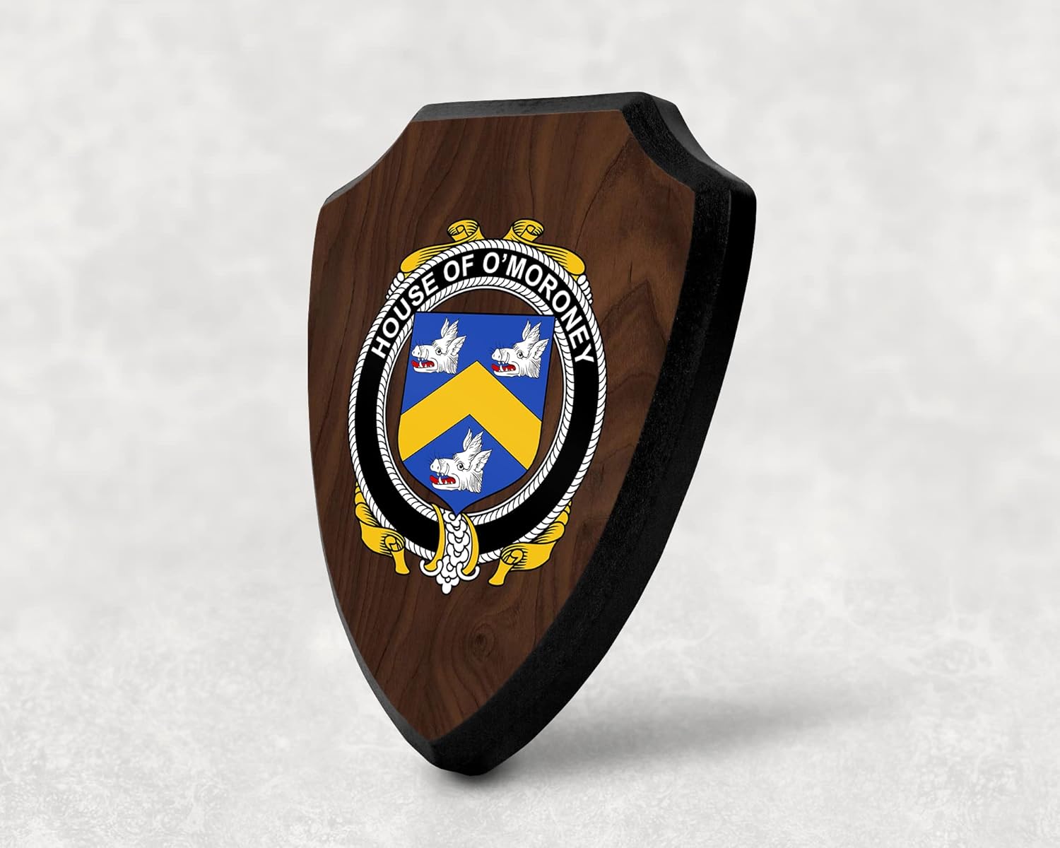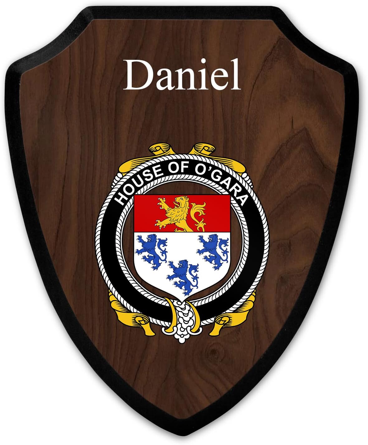 This beautifully crafted shield-shaped plaque is the perfect way to display your family crest. Measuring 7.75 inches wide by 9.125 inches tall, this plaque is the ideal size to be displayed on a wall, door or any other place of your choice. The plaque is sublimated, meaning the image of your family crest is infused into the surface of the plaque, ensuring the design will not fade or peel over time. This process also allows for vibrant and long-lasting colors that truly make your crest stand out. With its smooth edges and high-quality finish, this plaque is sure to be a treasured family heirloom for years to come. The back of the plaque has an inset hole which enables easy hanging, giving you flexibility in where to showcase it. Whether you choose to display it in your home, office, or give it as a gift, this sublimated shield-shaped plaque is a stunning way to celebrate your family heritage.