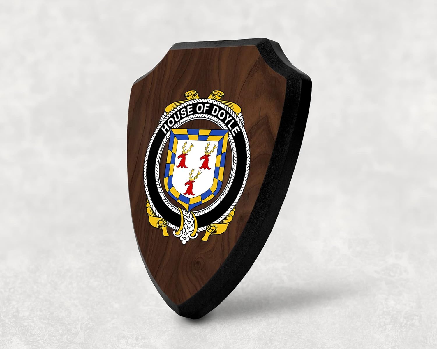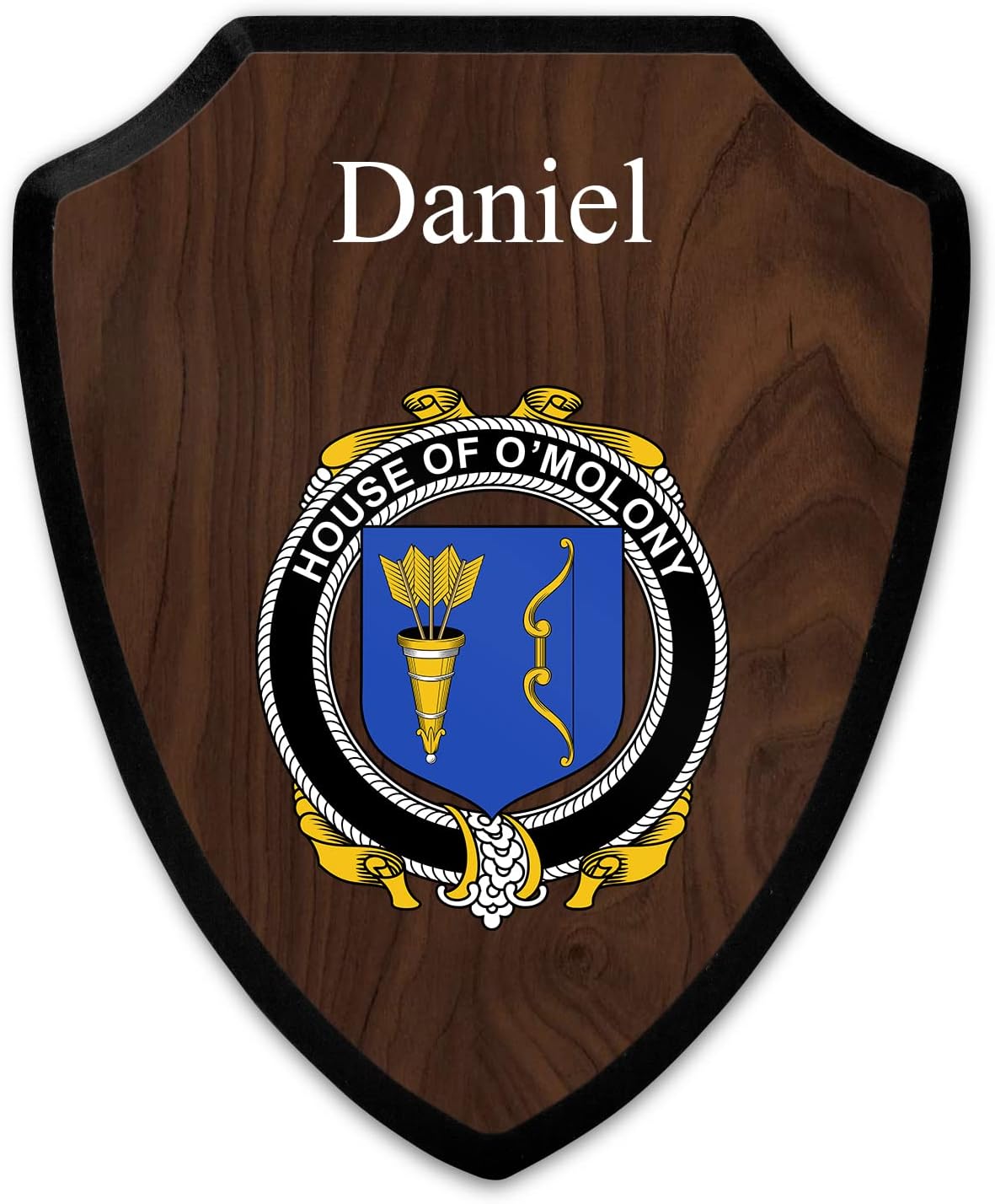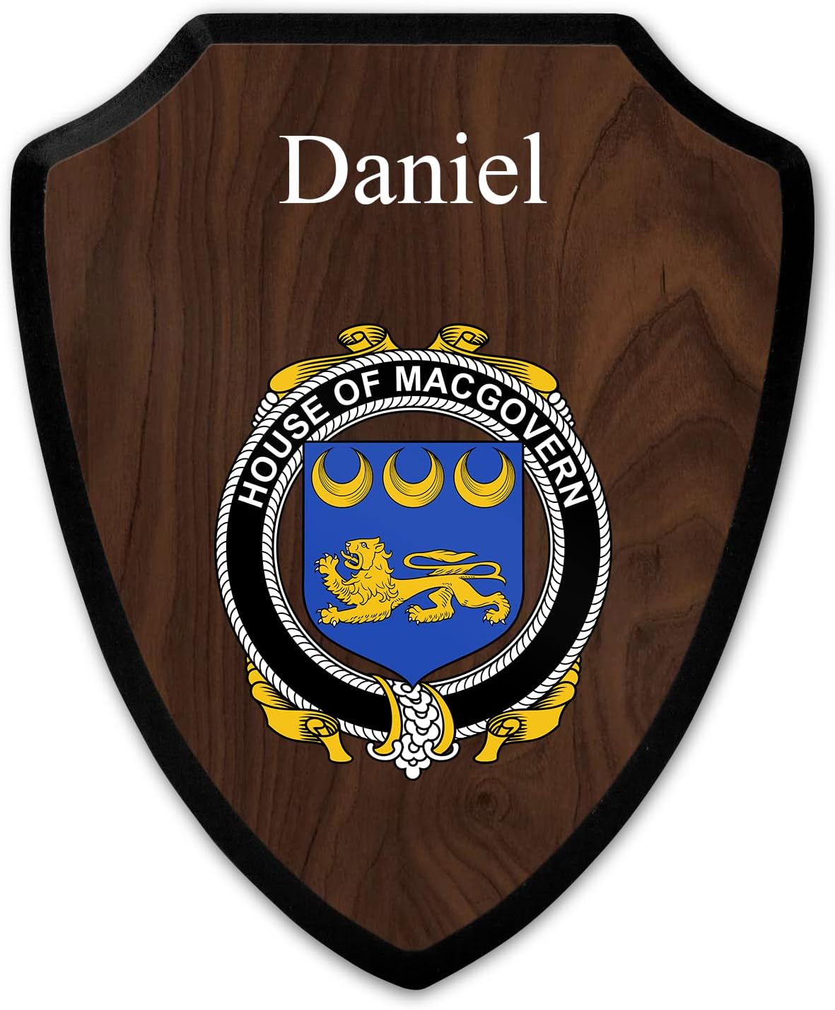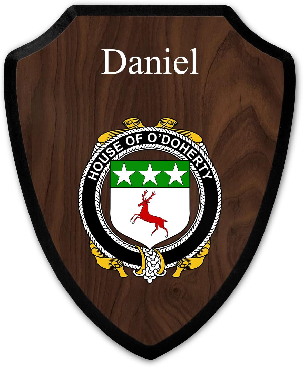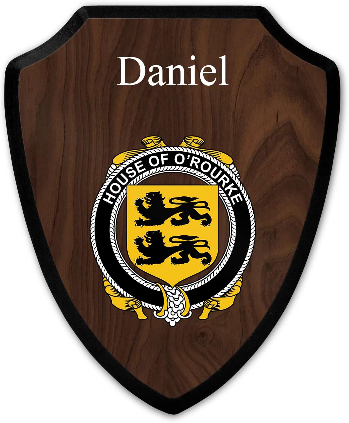 This beautifully crafted shield-shaped plaque is the perfect way to display your family crest. Measuring 7.75 inches wide by 9.125 inches tall, this plaque is the ideal size to be displayed on a wall, door or any other place of your choice. The plaque is sublimated, meaning the image of your family crest is infused into the surface of the plaque, ensuring the design will not fade or peel over time. This process also allows for vibrant and long-lasting colors that truly make your crest stand out. With its smooth edges and high-quality finish, this plaque is sure to be a treasured family heirloom for years to come. The back of the plaque has an inset hole which enables easy hanging, giving you flexibility in where to showcase it. Whether you choose to display it in your home, office, or give it as a gift, this sublimated shield-shaped plaque is a stunning way to celebrate your family heritage.