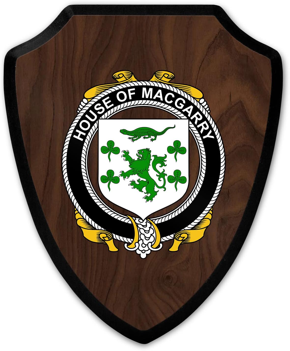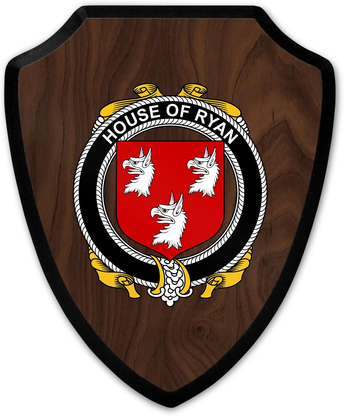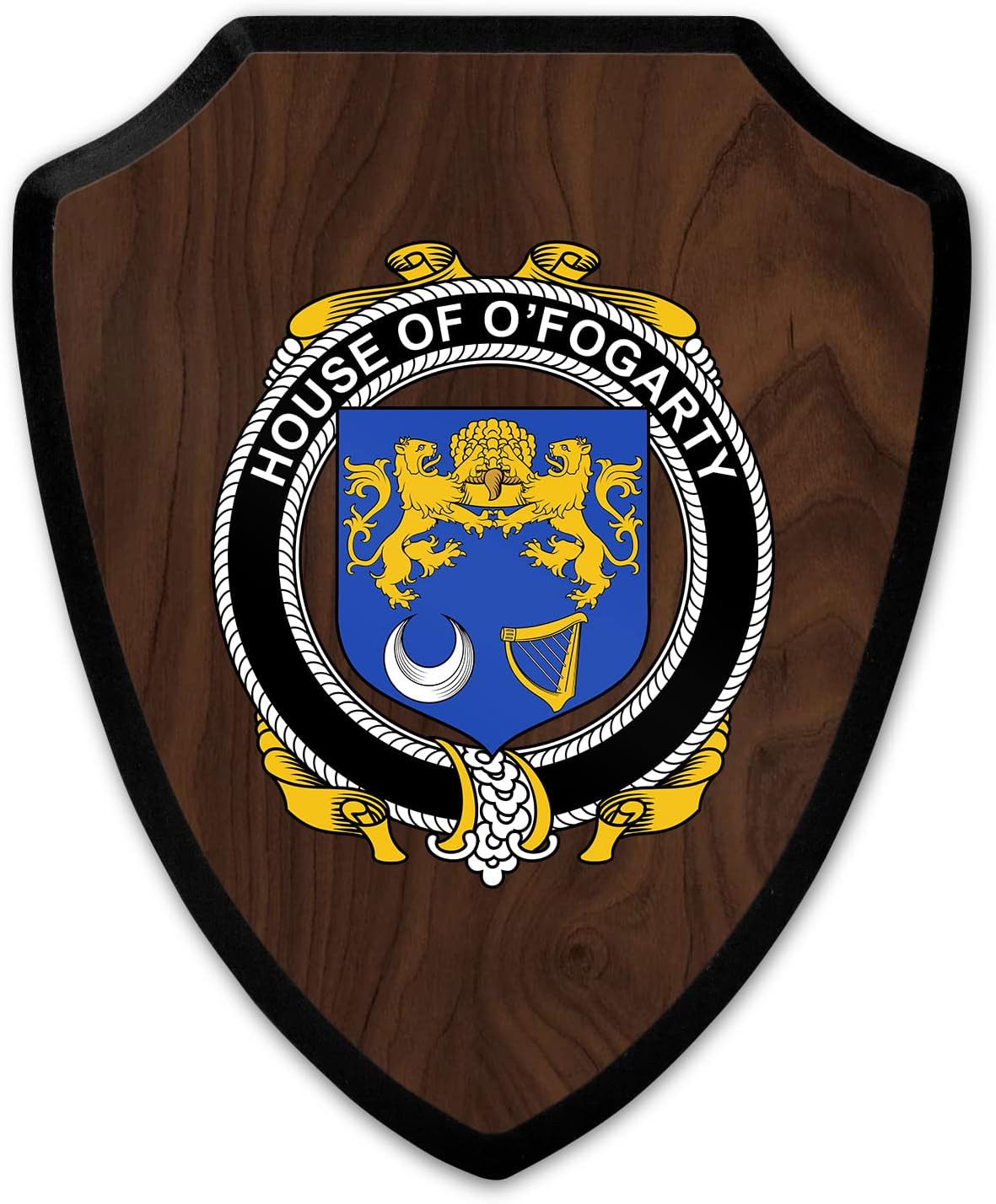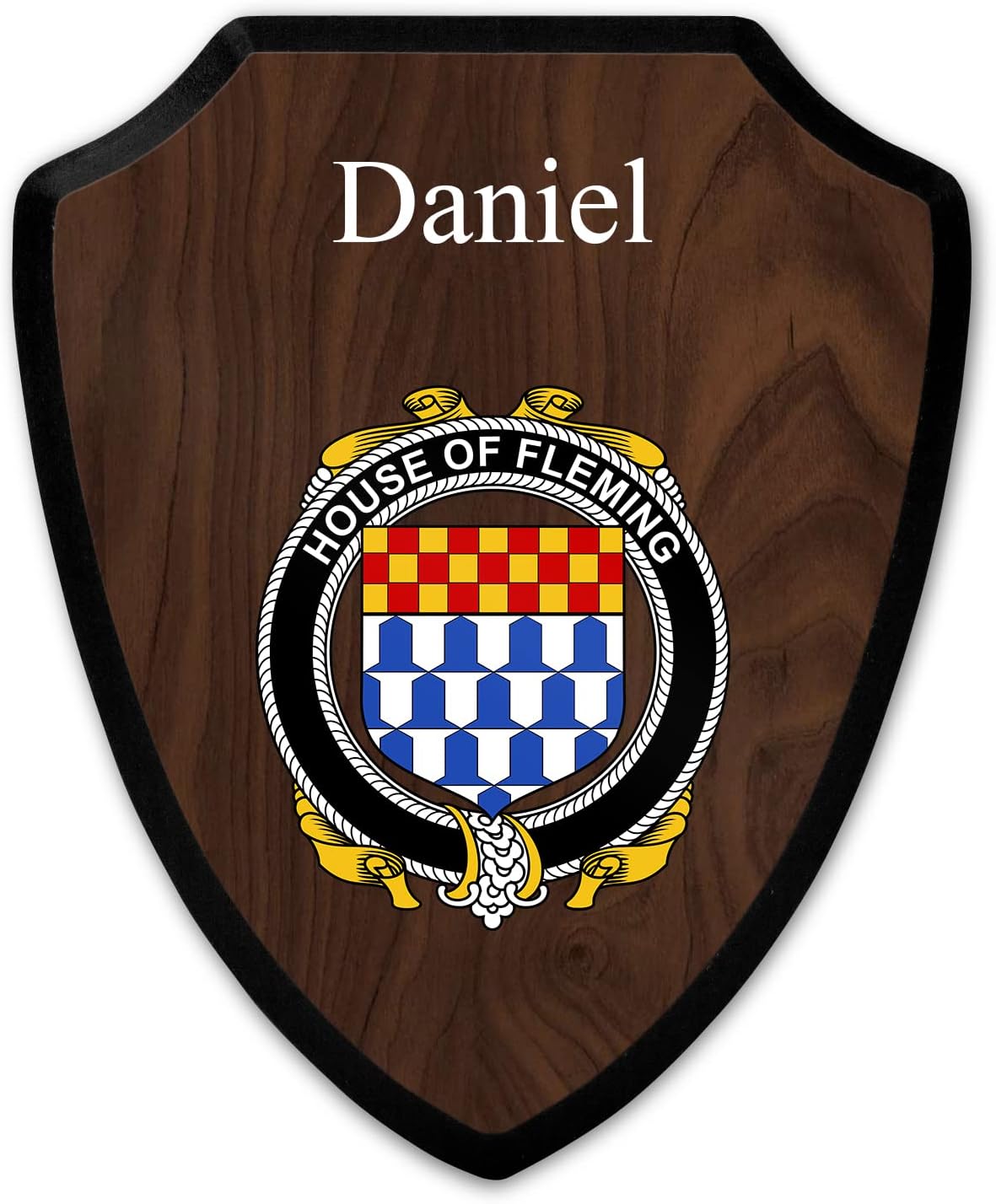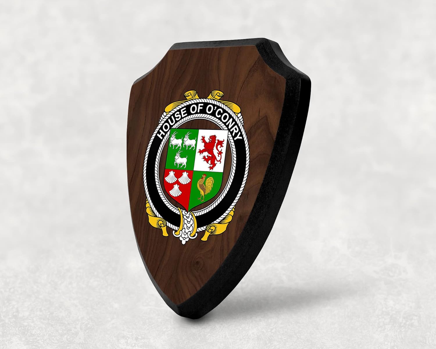 This beautifully crafted shield-shaped plaque is the perfect way to display your family crest. Measuring 7.75 inches wide by 9.125 inches tall, this plaque is the ideal size to be displayed on a wall, door or any other place of your choice. The plaque is sublimated, meaning the image of your family crest is infused into the surface of the plaque, ensuring the design will not fade or peel over time. This process also allows for vibrant and long-lasting colors that truly make your crest stand out. With its smooth edges and high-quality finish, this plaque is sure to be a treasured family heirloom for years to come. The back of the plaque has an inset hole which enables easy hanging, giving you flexibility in where to showcase it. Whether you choose to display it in your home, office, or give it as a gift, this sublimated shield-shaped plaque is a stunning way to celebrate your family heritage.