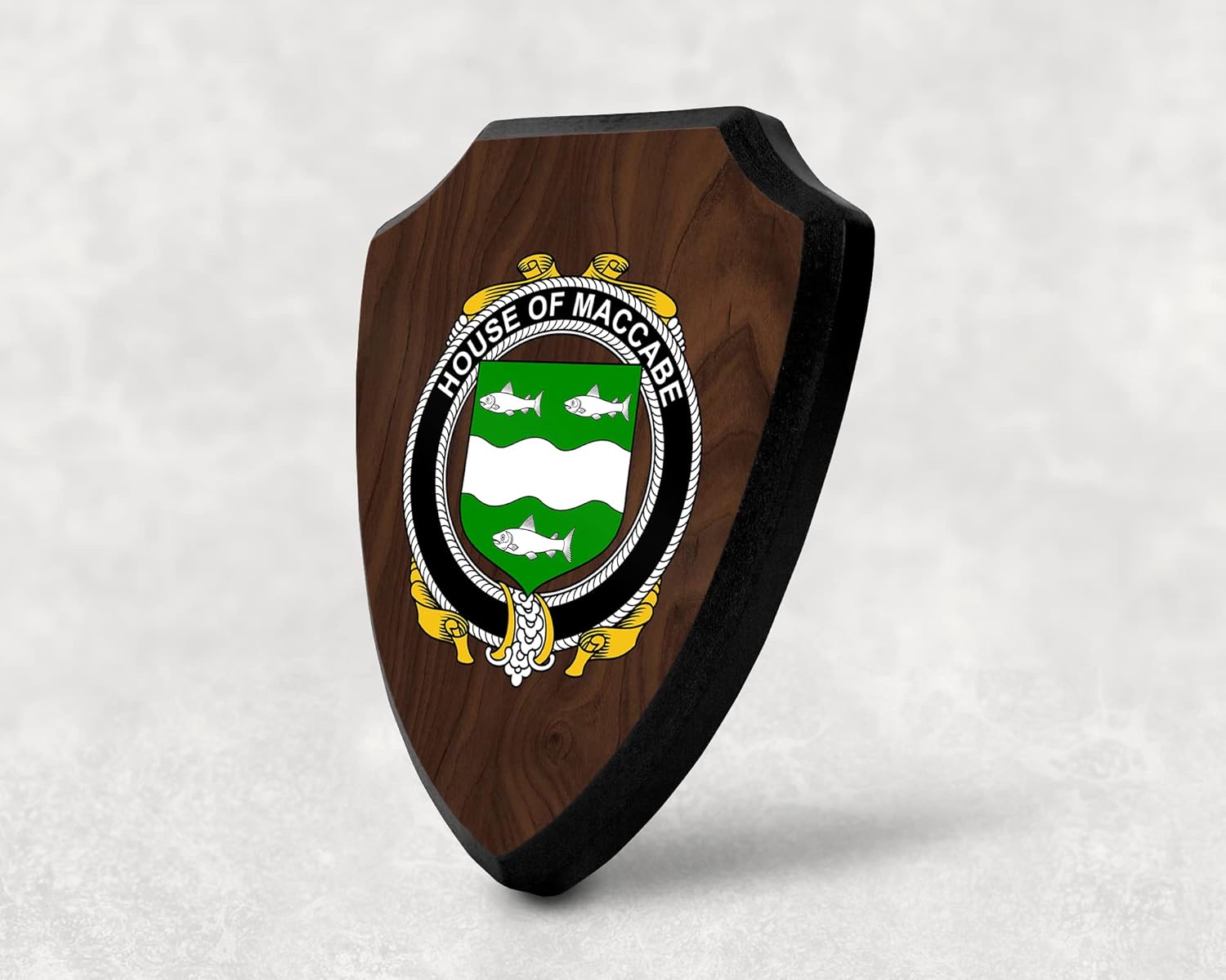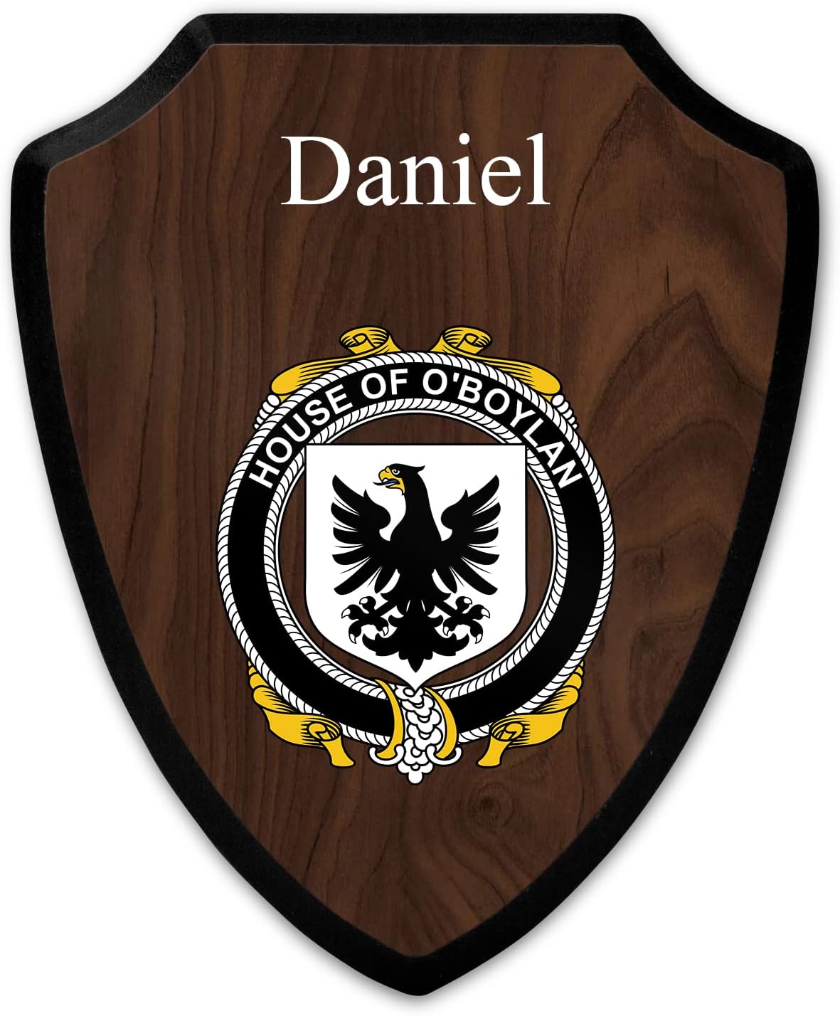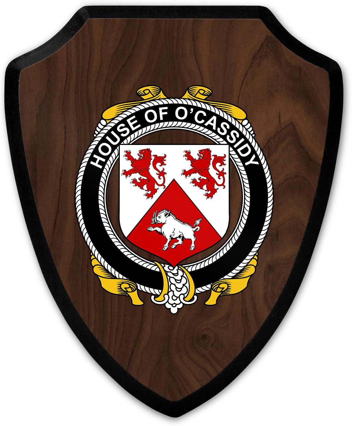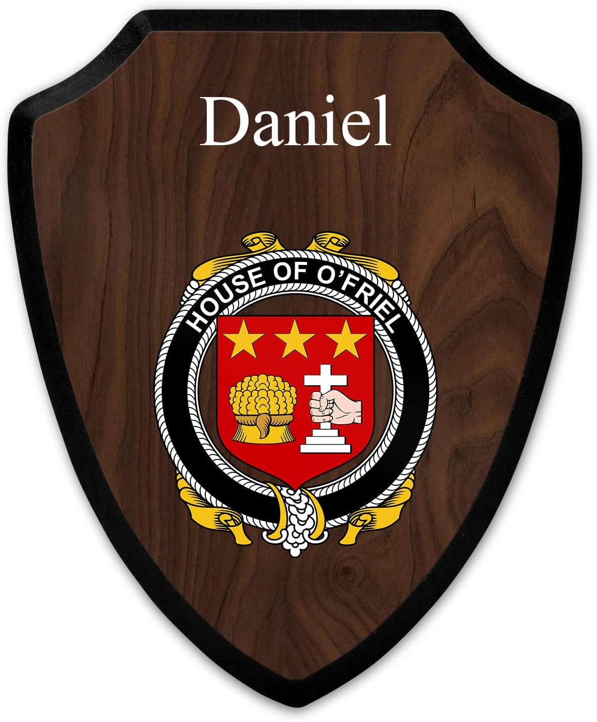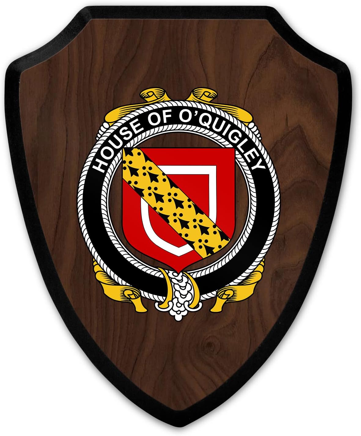 This beautifully crafted shield-shaped plaque is the perfect way to display your family crest. Measuring 7.75 inches wide by 9.125 inches tall, this plaque is the ideal size to be displayed on a wall, door or any other place of your choice. The plaque is sublimated, meaning the image of your family crest is infused into the surface of the plaque, ensuring the design will not fade or peel over time. This process also allows for vibrant and long-lasting colors that truly make your crest stand out. With its smooth edges and high-quality finish, this plaque is sure to be a treasured family heirloom for years to come. The back of the plaque has an inset hole which enables easy hanging, giving you flexibility in where to showcase it. Whether you choose to display it in your home, office, or give it as a gift, this sublimated shield-shaped plaque is a stunning way to celebrate your family heritage.