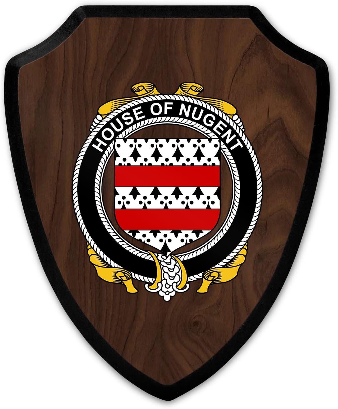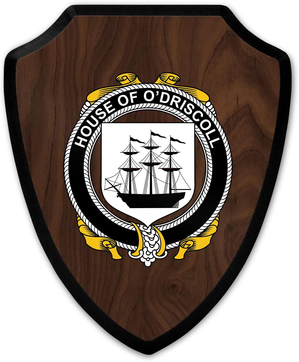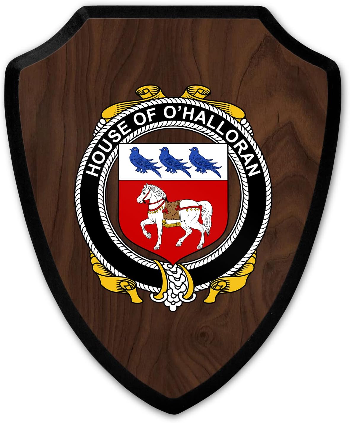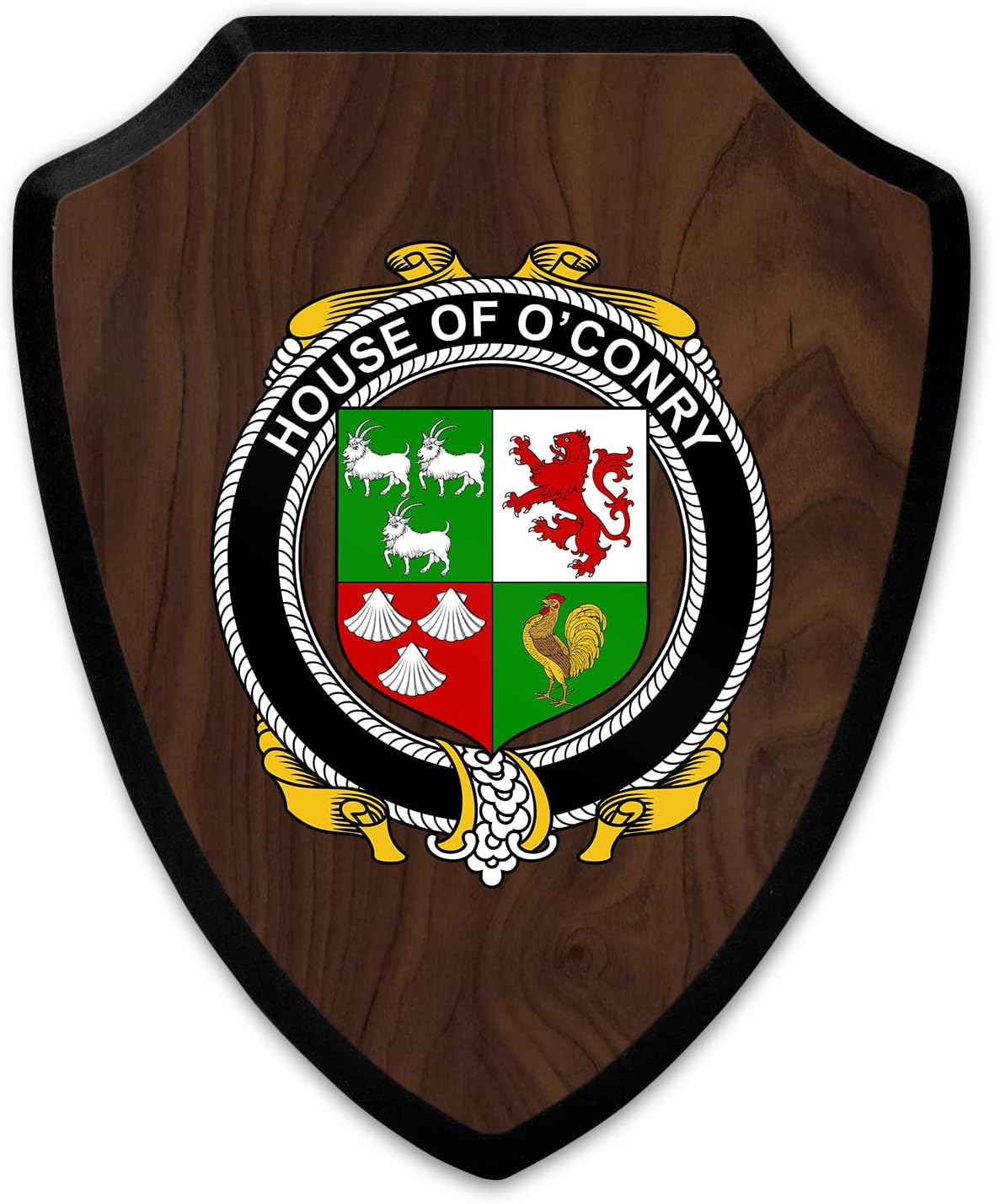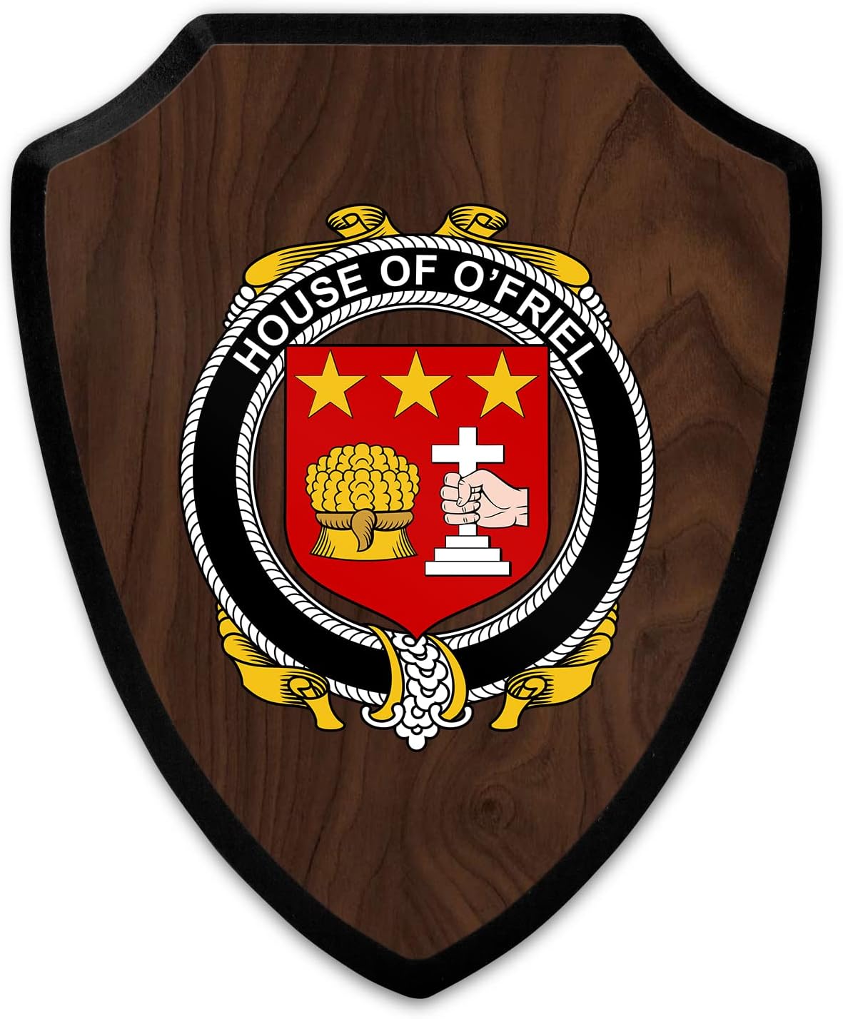 This beautifully crafted shield-shaped plaque is the perfect way to display your family crest. Measuring 7.75 inches wide by 9.125 inches tall, this plaque is the ideal size to be displayed on a wall, door or any other place of your choice. The plaque is sublimated, meaning the image of your family crest is infused into the surface of the plaque, ensuring the design will not fade or peel over time. This process also allows for vibrant and long-lasting colors that truly make your crest stand out. With its smooth edges and high-quality finish, this plaque is sure to be a treasured family heirloom for years to come. The back of the plaque has an inset hole which enables easy hanging, giving you flexibility in where to showcase it. Whether you choose to display it in your home, office, or give it as a gift, this sublimated shield-shaped plaque is a stunning way to celebrate your family heritage.