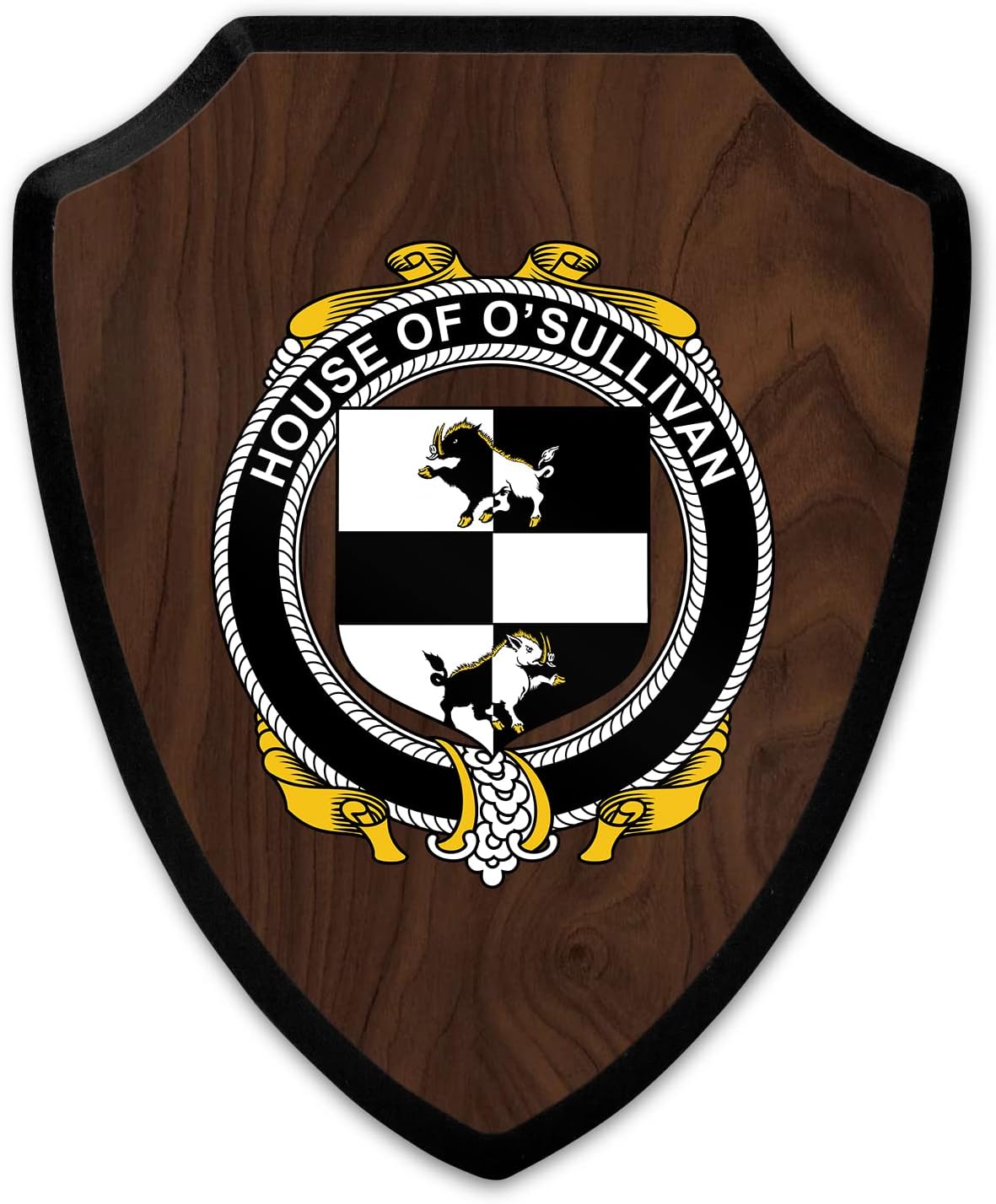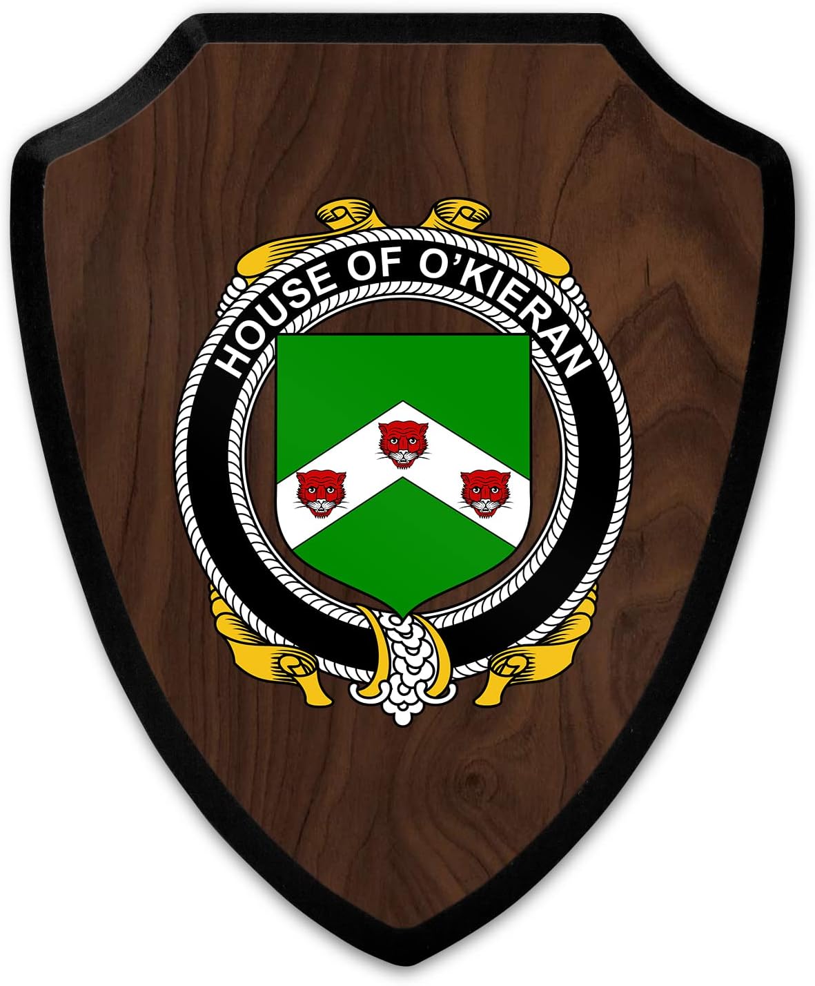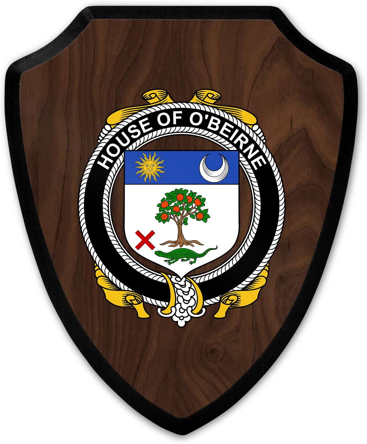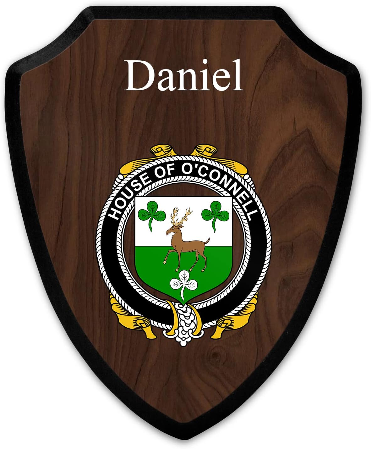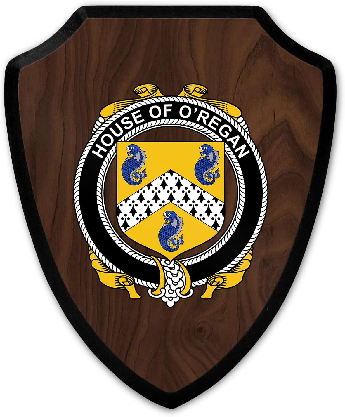 This beautifully crafted shield-shaped plaque is the perfect way to display your family crest. Measuring 7.75 inches wide by 9.125 inches tall, this plaque is the ideal size to be displayed on a wall, door or any other place of your choice. The plaque is sublimated, meaning the image of your family crest is infused into the surface of the plaque, ensuring the design will not fade or peel over time. This process also allows for vibrant and long-lasting colors that truly make your crest stand out. With its smooth edges and high-quality finish, this plaque is sure to be a treasured family heirloom for years to come. The back of the plaque has an inset hole which enables easy hanging, giving you flexibility in where to showcase it. Whether you choose to display it in your home, office, or give it as a gift, this sublimated shield-shaped plaque is a stunning way to celebrate your family heritage.