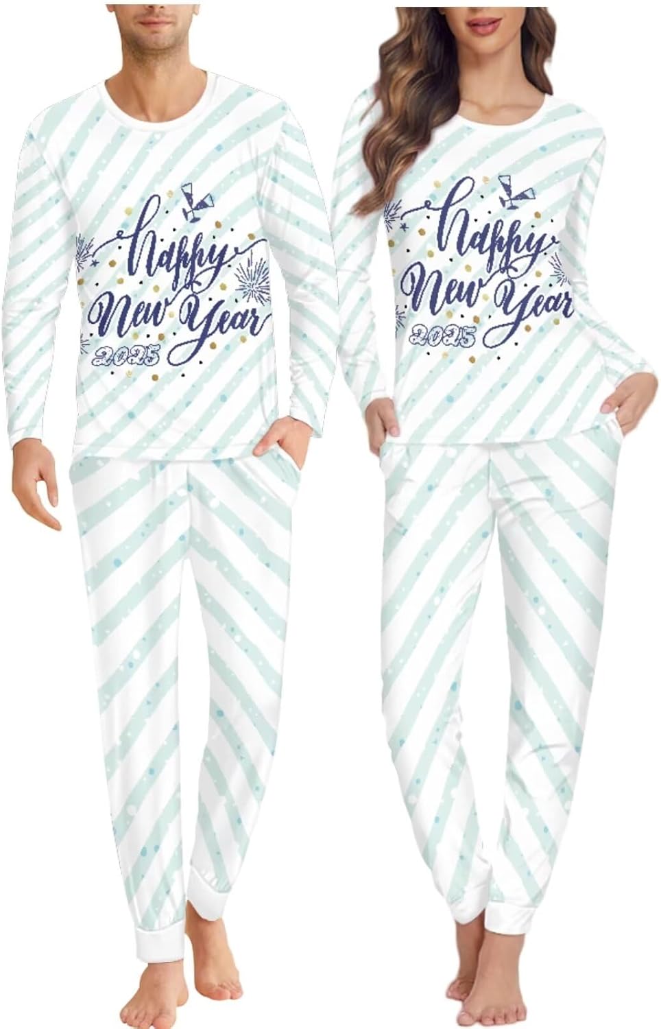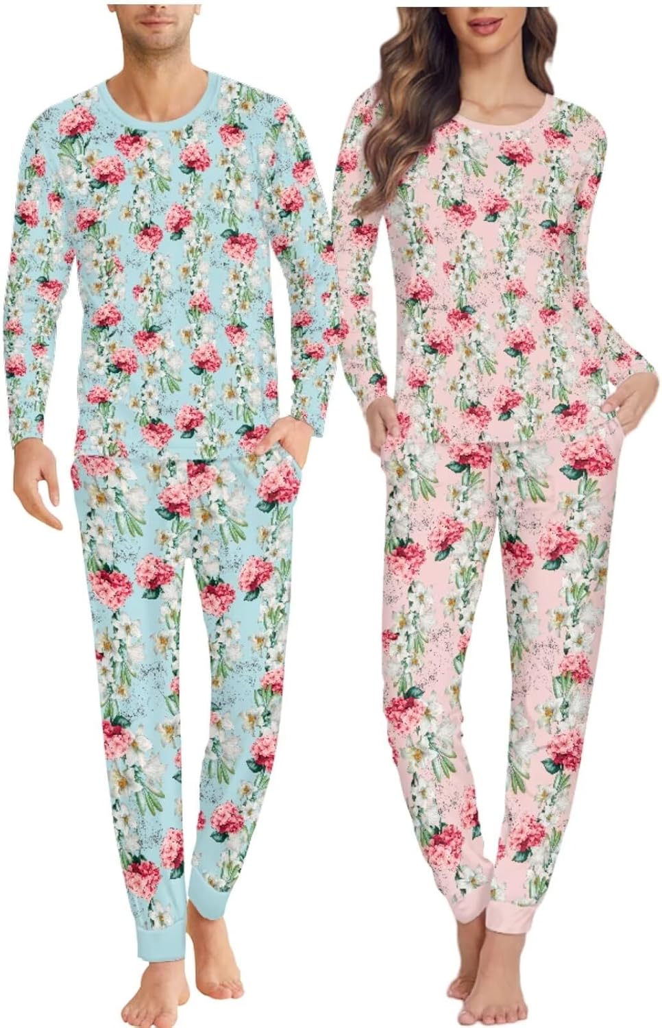 Nxidvxne Couple Matching Pajama Set Long Sleeve Women's and Men's Sleepwear Set 2Pcs Soft and Skin-Friendly Lounge Wear PREFERRED MATERIAL: Our product is made of polyester material, soft and skin-friendly, light and sweat-wicking and non-sticky.Keeps you comfortable and at ease while you sleep, allowing you to fall into a deeper sleep more quickly. UNIQUE STYLE: This pajama two-piece set includes a cozy round neck long sleeve top and a pair of long pants. Both are simple patterns and basic designs, they will never go out of style. COMFORTABLE AND SOFT : The soft and cozy fabric makes this pajama set comfortable for you. Enjoy soft pajamas that are comfortable to wear with superior quality and style. PERFECT GIFT: This pajama set is made of soft fabric and classic style, it is a perfect gift for yourself, wife, mother, daughter or friend. You can also wear it as casual wear, loungewear, pajamas, going out, yoga, vacation or beachwear. Applicable Scene:Suitable for both at home and as casual homewear, suitable for spring, fall and winter. WASHING INSTRUCTIONS: hand washable or machine washable, do not soak for a long time, do not bleach, the temperature of the washing liquid should not exceed 45ºC.