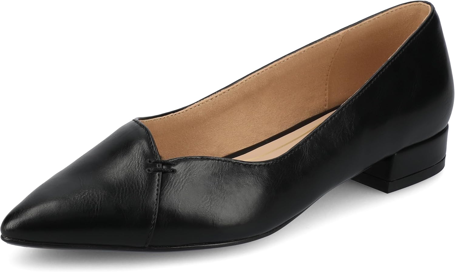 The Carmin women's dress flat from Journee features a sleek, slip-on design with a pointed-toe for a modern look. Its 1-inch block heel offers just the right amount of height for comfortable all-day wear, while the cushioned footbed ensures all-day support. This versatile heel effortlessly blends style and comfort for all-day wear.
