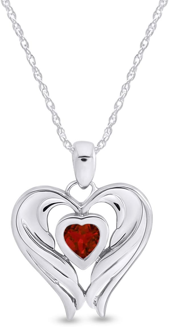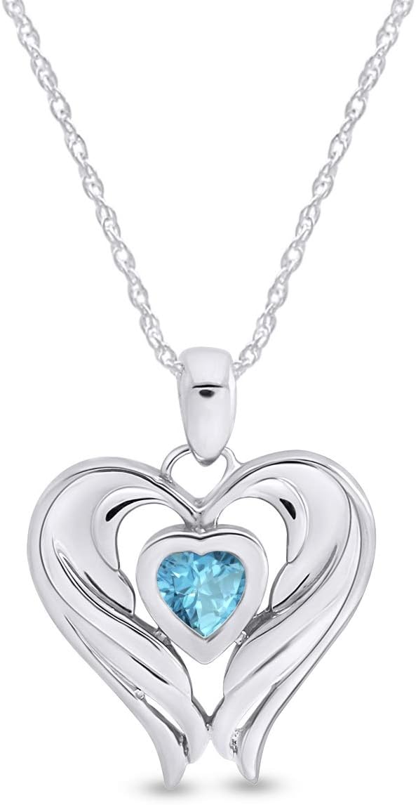 Jewelry has the power to be this one little thing that can make you feel Unique, You’re going to love this Fabulous Simulated Birthstones Angel Wing Heart Pendant Necklace In 14k White Gold Over Sterling Silver . Absolutely a great gift to express your love for your mother, girlfriend, fiancee, wife, valentine, family or just a friend,etc. Great gifts on Mother 's Day, Wedding, Anniversary day, Valentine's Day or Christmas Day