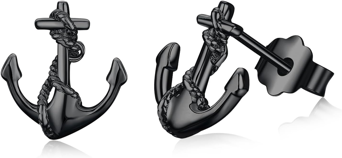 ⚓ For the sailor at heart Anchor Earrings - Nautical Charm in Four Stunning Finishes Showcase your love for the sea with these premium sterling silver anchor stud earrings, available in four elegant plating options: Platinum, Rose Gold, Yellow Gold, and Black Gold. Each pair is meticulously crafted with a polished finish that captures the timeless symbol of strength and stability. Designed for sensitive ears, these hypoallergenic earrings feature a secure butterfly clasp for all-day comfort. The small minimalist size (10mm) makes them perfect for daily wear or as a meaningful gift for ocean lovers. 🎁 Gift-ready packaging----Each purchase includes: 1 pair of anchor earrings (choose your finish) Elegant gift box - ready for gifting Premium polishing cloth to maintain shine Perfect for birthdays, Christmas, anniversaries, or just because. For the woman who keeps you anchored.