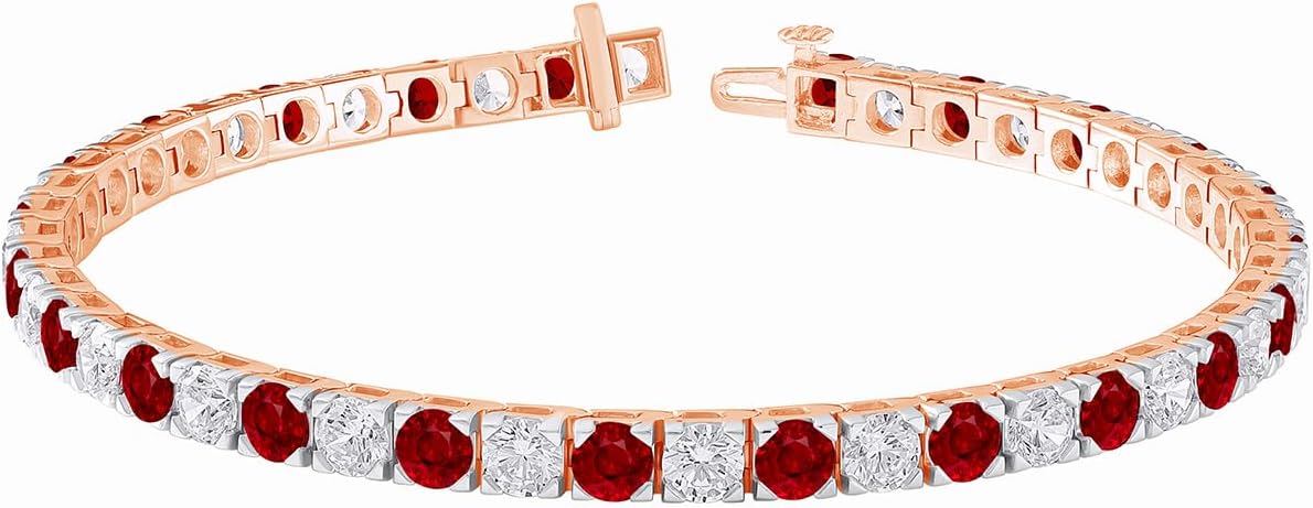 Elevate her style with the exquisite DEWBERRY 4.70 Cttw Round Cut IGI Certified Lab Grown Diamond & Gemstone Tennis Bracelet. Crafted meticulously in 10K Real White, Rose, or Yellow Gold, this 7" inch masterpiece exudes sophistication. Each diamond and gemstone, with its mesmerizing F-G color and VS clarity, adds a touch of timeless allure. A perfect gift for her, it symbolizes elegance and luxury, capturing hearts with its undeniable charm and brilliance.