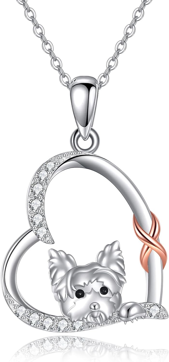 Dog Necklace Gifts Sterling Silver Dog Heart Pendant Necklace Dog Jewelry for Women and Dog Lovers