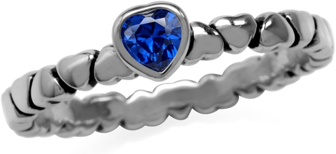 Silvershake 4MM Gemstone Oxidized or Yellow Gold Plated 925 Sterling Silver Stackable Eternity Heart Solitaire Ring Jewelry for Women