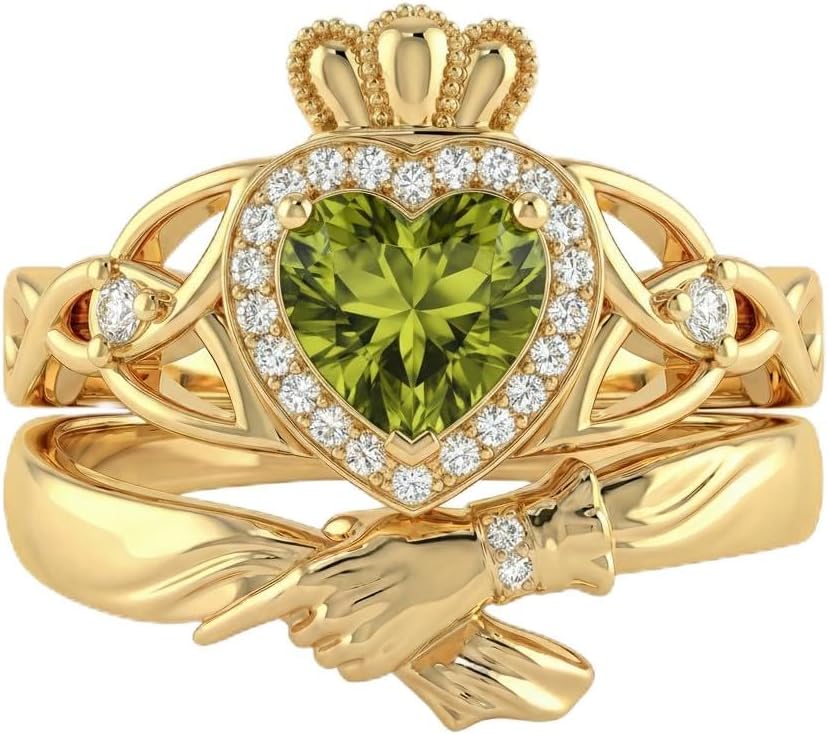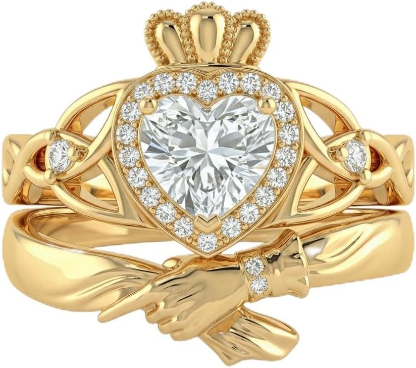 【Delivery Includes】1 x Gold Heart gemstone Ring Set1 x Elegant Gift Box 1 x Jewelry Cleaning Cloth 【Care Instructions】 1. Please wipe your ring gently with a soft, dry cloth after wearing to maintain its shine. 2. Store the ring in the provided gift box or a sealed pouch away from direct sunlight for prolonged brilliance. 3. Avoid exposing the ring to harsh chemicals, perfumes, and cosmetics to preserve the finish and gemstone color. 4. Remove the ring before swimming, showering, or engaging in strenuous activities to prevent physical or chemical damage.