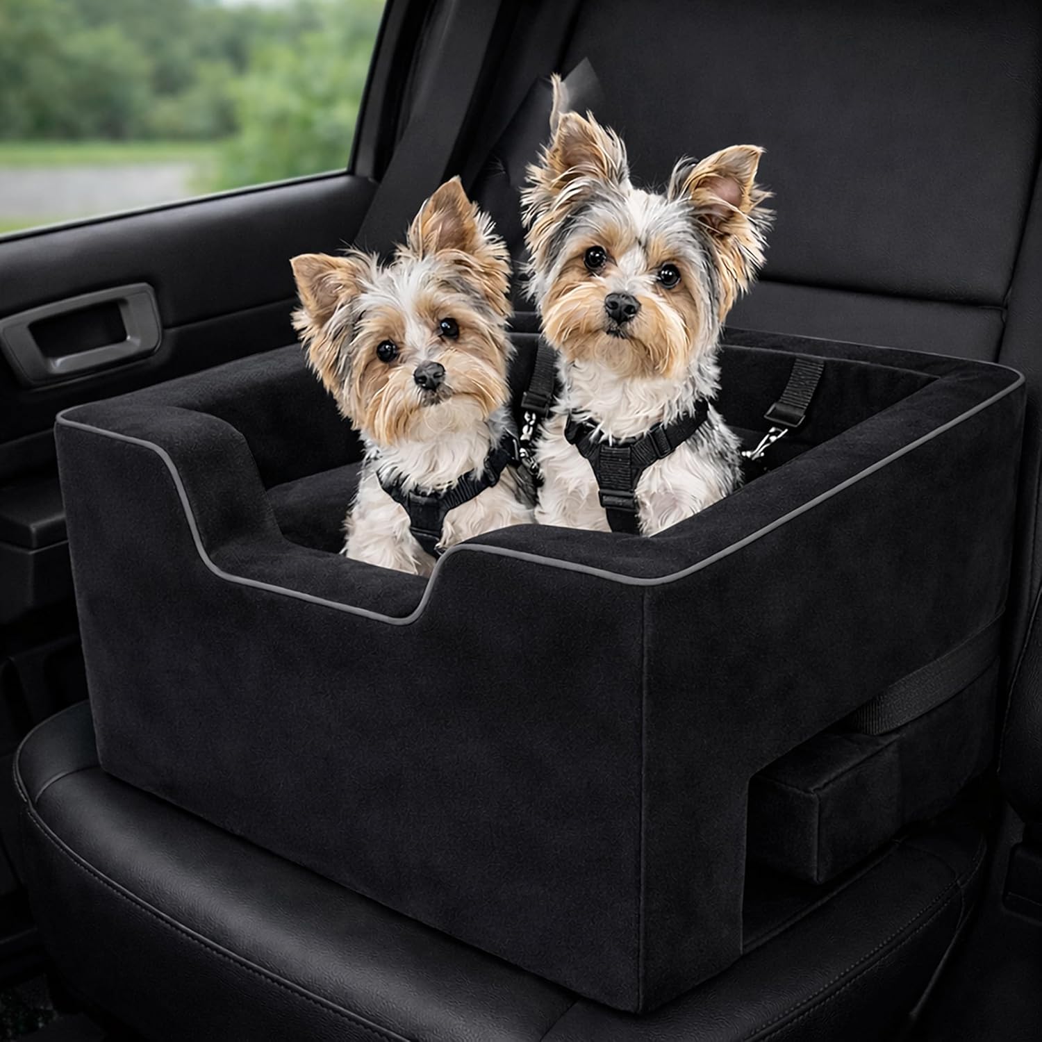 Pet Gear’s Car Seat and Pet Bed offers your pet the ability to stay comfortable and secure without impairing driving abilities. This sturdy yet cozy booster seat utilizes your cars seat belt system to secure the seat in place (no tools required). Disconnect the seat belt and the booster seat can be used as an indoor pet bed. The cover is removable and washable and a safety tether is included.