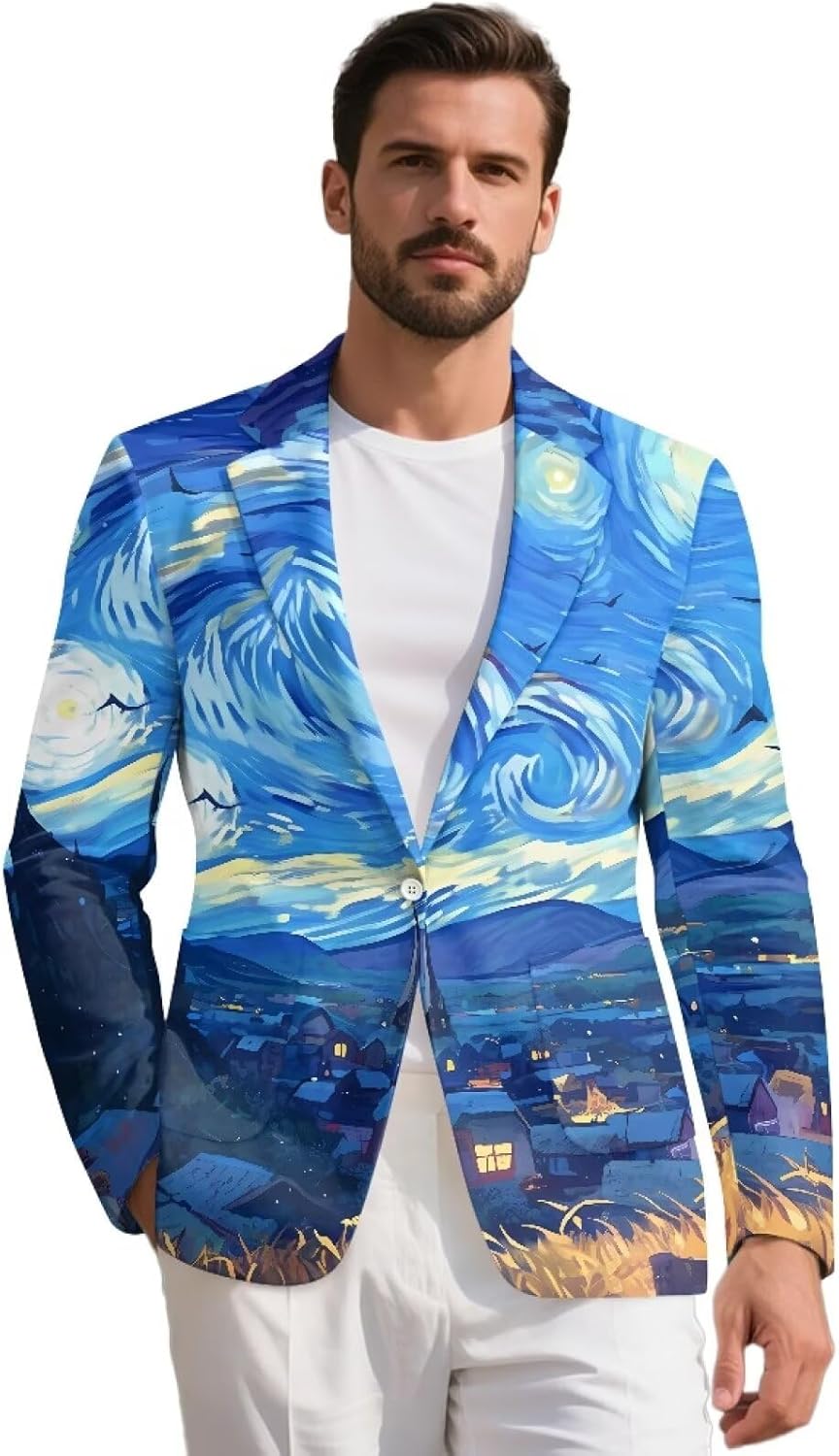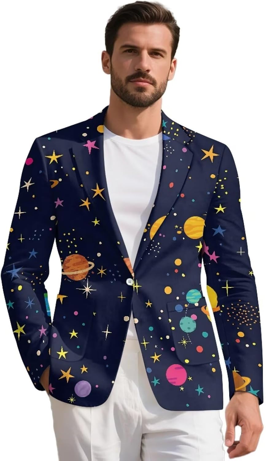 Hechitok Men Casual Blazer Suit Material: Made of high quality polyester,the texture is soft and comfortable.Elastic breathable.No pilling, no fading, no shrinkage, no cracking. This product is fashionable and versatile, and can be customized. It is a good gift for friends, lovers, relatives and elders. It is practical and thoughtful. Suitable for sports, fitness, any type of sports or daily travel. A variety of fashion prints are available to make you stand out from the crowd. Due to different measurement methods, errors within 1-2cm are normal. Our products cover a wide range of shoes, clothing,bags, backpacks,Auto parts,home décor products and so on, we are constantly developing new products, and will often list new products on our Amazon store, welcome to add us to your list, if you like our products or design.