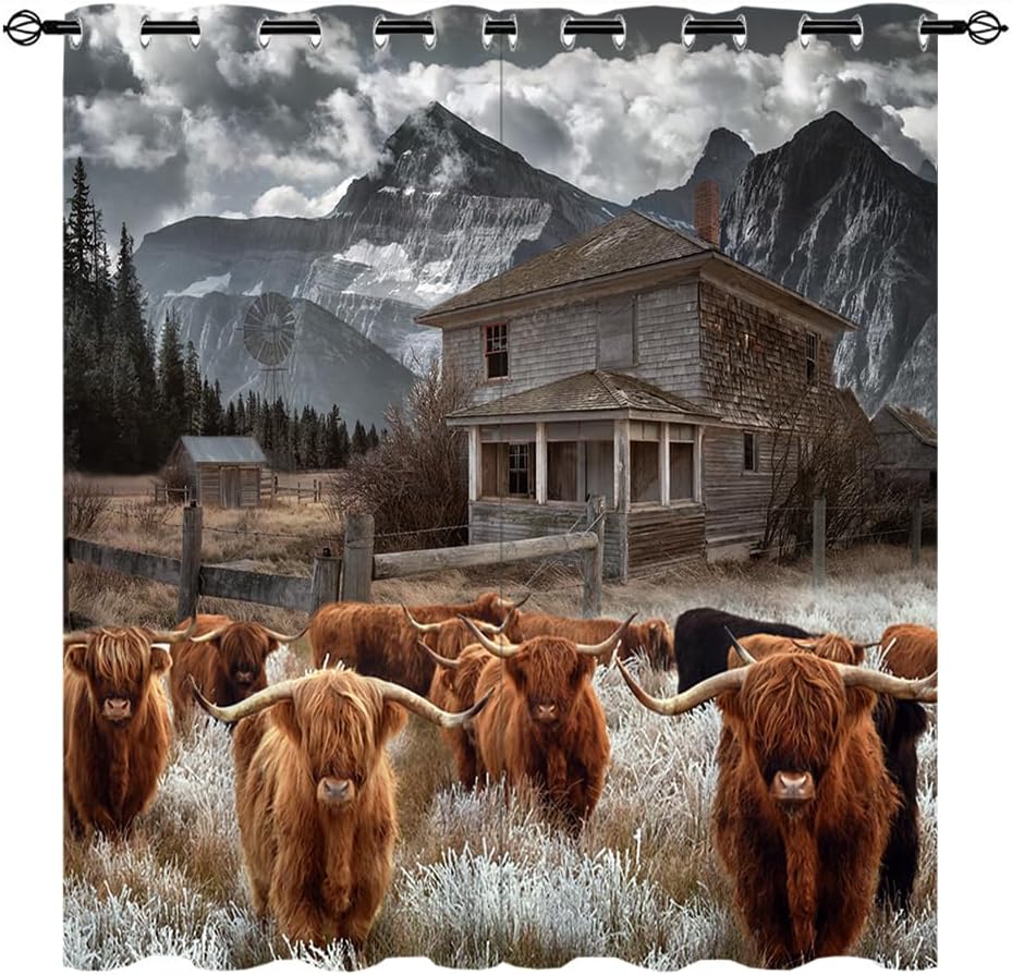 1:Kazynee Rustic Misty Forest Highland Cow These blackout insulated window treatments are designed to provide maximum privacy and light control while enhancing the overall aesthetic of any room.2 Size Description: 2 panels per package,each panel measures 21x45in(53.5x114cm),total size:42x45in(107x114cm) 2 panels per package,each panel measures 21x54in(53.5x137cm),total size:42x54in(107x137cm) 2 panels per package,each panel measures 21x63in(53.5x160cm),total size:42x63in(107x160cm) 2 panels per package,each panel measures 27.5x63in(70x160cm),total size:55x63in(140x160cm) 2 panels per package,each panel measures 31.5x63in(80x160cm),total size:63x63in(160x160cm) 2 panels per package,each panel measures 31.5x72in(80x183cm),total size:63x72in(160x183cm) 2 panels per package,each panel measures 36x63in(91.5x160cm),total size:72x63in(183x160cm) 2 panels per package,each panel measures 42x84in(107x214cm),total size:84x84in(214x214cm)3:Ideal for bedrooms,living rooms,kitchens,or any space that needs a little extra glamor,these curtains offer a versatile solution for all of your window treatments needs. The perforated design allows just the right amount of natural light to pass through the curtains while maintaining privacy and creating a cozy and welcoming atmosphere.4:Perforated curtains can enhance the ambiance of your home. These blackout thermal curtains combine practicality, style and versatility for an unrivaled experience. Transform your living space into a serene sanctuary. Upgrade your window coverings in time for Halloween, Christmas, Thanksgiving, Father's Day and Mother's Day and enjoy the benefits of these perforated blackout curtains.