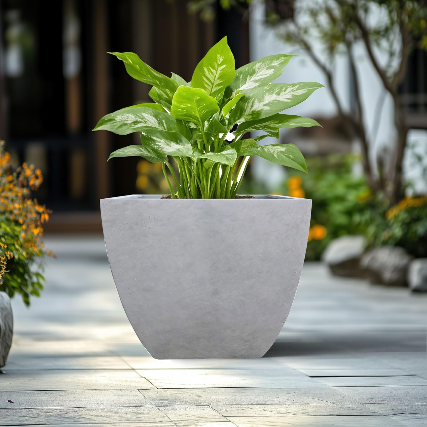 These elegant modern plant pots with an authentic natural concrete finish with visible pores will add an elegant touch to your décor and it is ideal for endless succulent designs.The smooth lines and square shape of these planters will help you maintain a sleek look throughout your space, while holding a good amount of plants without looking crowded .There is a drainage hole create a healthy living environment for your plants. Planters were handmade of lightweight concrete through an ecofriendly manufacturing process. The result is an exceptionally durable, weather and damage resistance, strong UV resistant ability,well-designed planter that will stand the test of wind, rain, hot and cold season.The simple, clean look of the exterior makes it easy to fit these containers in any home,patio or throughout your garden .You can use it indoors and outdoors freely due to its lighter weight.