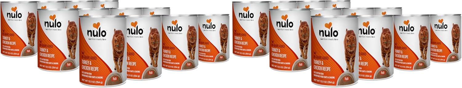 Nulo's Freestyle Turkey & Chicken Recipe Grain-Free Canned Cat & Kitten Food is crafted with real turkey as the very first ingredient, followed by chicken, turkey liver and tuna for the high-quality protein your pet needs to fuel her muscles. Cats love the texture of tender meat and the irresistible taste of the lip-smacking gravy. And while you won’t find any grains, corn, wheat or anything artificial in this palatable pate, you will find superfoods like cranberries, kelp and pumpkin, vitamins, minerals, healthy omegas, and taurine that help support your cat’s overall health. Complementary protein combo features turkey and chicken as top ingredients Packed with nutrients like vitamins, minerals, omegas and essential taurine for overall well-being Complete and balanced diet for adult cats and kittens, with zero grains, carrageenan, meat by-products, corn, wheat, soy or artificial preservatives, colors or flavoring Keeps your kitty hydrated with plenty of moisture and an irresistible texture cats love Made in the USA and comes in conveniently portioned, easy-open cans to make mealtime easy and hassle-free
