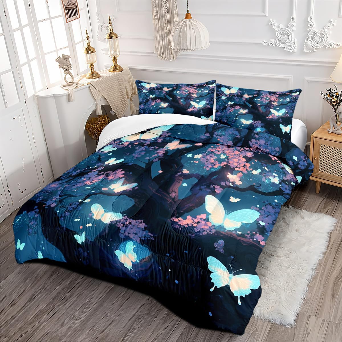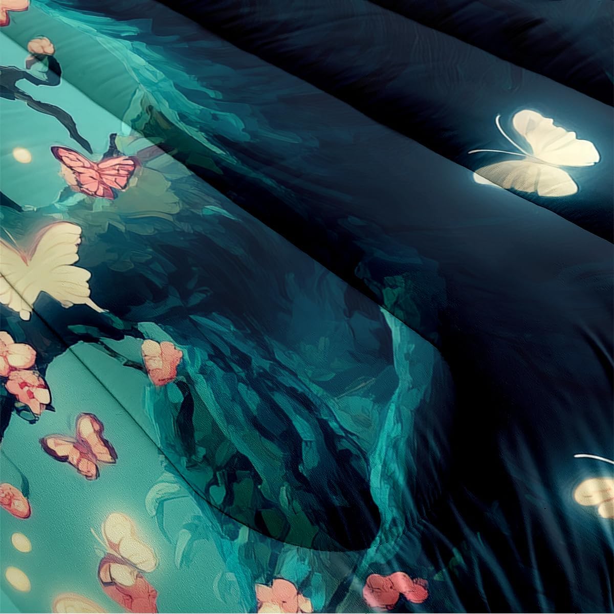Material: This teal comforter set twin size is made of ultra-fine fiber. Continuous softening after each wash. This romantic floral butterfly bedding set is very lightweight, without shrinking, anti pilling, anti wrinkle, durable and long-lasting. This teal comforter does not use chemical to harm your and your family's health. Size Information: 1 Twin size teal comforter set 68"X 86" (173cm*218cm) & 1 pillow case 20"X 30" (50cm*75cm). Pillow and sheet are NOT included. Unique Design: Our romantic floral butterfly comforter pattern is using 3D technology, with clear pattern and anti fading. The U-shape stitching ensures the microfiber filler is sewn tightly to prevent clumping or shifting. Due to our use of vacuum packaging, please gently pat this teal bedding sets after receiving the goods to make them fluffy again. The unique design of this comforter perfectly matches other interior decoration. Usage: The best choice for Valentine's Day, Birthday, Wedding Anniversary, Christmas and other holiday. The romantic floral butterfly bedding set for bedroom, dorm room, hotel, guest room, outing, RVs, camping and other place. Present for family, parents, children, friends, boys, girls, adult, women, men. Tips: The teal comforter set & pillow shams are printed on the front side, the back is white. Due to monitor differences, there are some color differences between the image and the actual product. Due to manual measurement issues, please allow an error of 2-3 centimeters. Machine wash in cold water and tumble dry at low temperature. Service: We are committed to providing comfortable bedding, so that we provide you with 365 days of high-quality sleep. Welcome to our store to purchase more products. If you have any questions, please contact us and we will process your request as soon as possible within 24 hours.