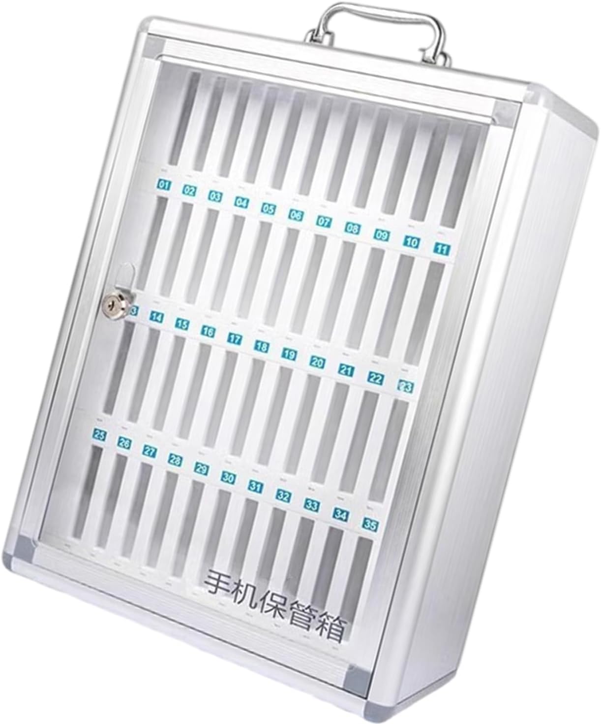 Multipurpose Phone Locker with Comfort Handle, Portable Aluminum Alloy Box Secure for Individual Device StorageFeatures:This secure phone storage box features a double design to unauthorized access, ensuring efficient protections for smartphones and valuables with its robust security mechanisms.Crafted from portable aluminum alloy with a comfortable handle, this portable storage box easy transport and handling, combining durability with user friendly portability for everyday use.Ideal for students, employees, and meeting attendees who need a safe, organized to store their mobile devices during classes, work projects, or group gatherings.Perfect for environments such as schools, offices, and conference rooms, this organizers helps manage and secure devices, maintaining a tidy, distraction release space efficiently.With its wear aluminum shell and individualized compartments, this sturdy storage safeguards privacy and withstands daily wear, ensuring long time reliability in any setting.Specifications:Component:Aluminum Alloy, Middle Density Fiberboard12 Slots Size:Approx.21x19x26.5cm/8.29x7.48x10.43inches24 Slots Size:Approx.26.5x19x27.5cm/10.43x7.48x10.83inches36 Slots Size:Approx.29x19x48cm/11.42x7.48x18.90inches48 Slots Size:Approx.37x19x48cm/14.57x7.48x18.90inches60 Slots Size:Approx.37x19x59.5cm/14.57x7.48x23.43inchesPackage Includes:1Pc Portable Lockable Storage BoxNote:1.Please allow 1-2cm errors due to manual measurement, making sure that you will not mind before order. 2.Due to the differences between different monitors, the picture may not reflect the actual color.