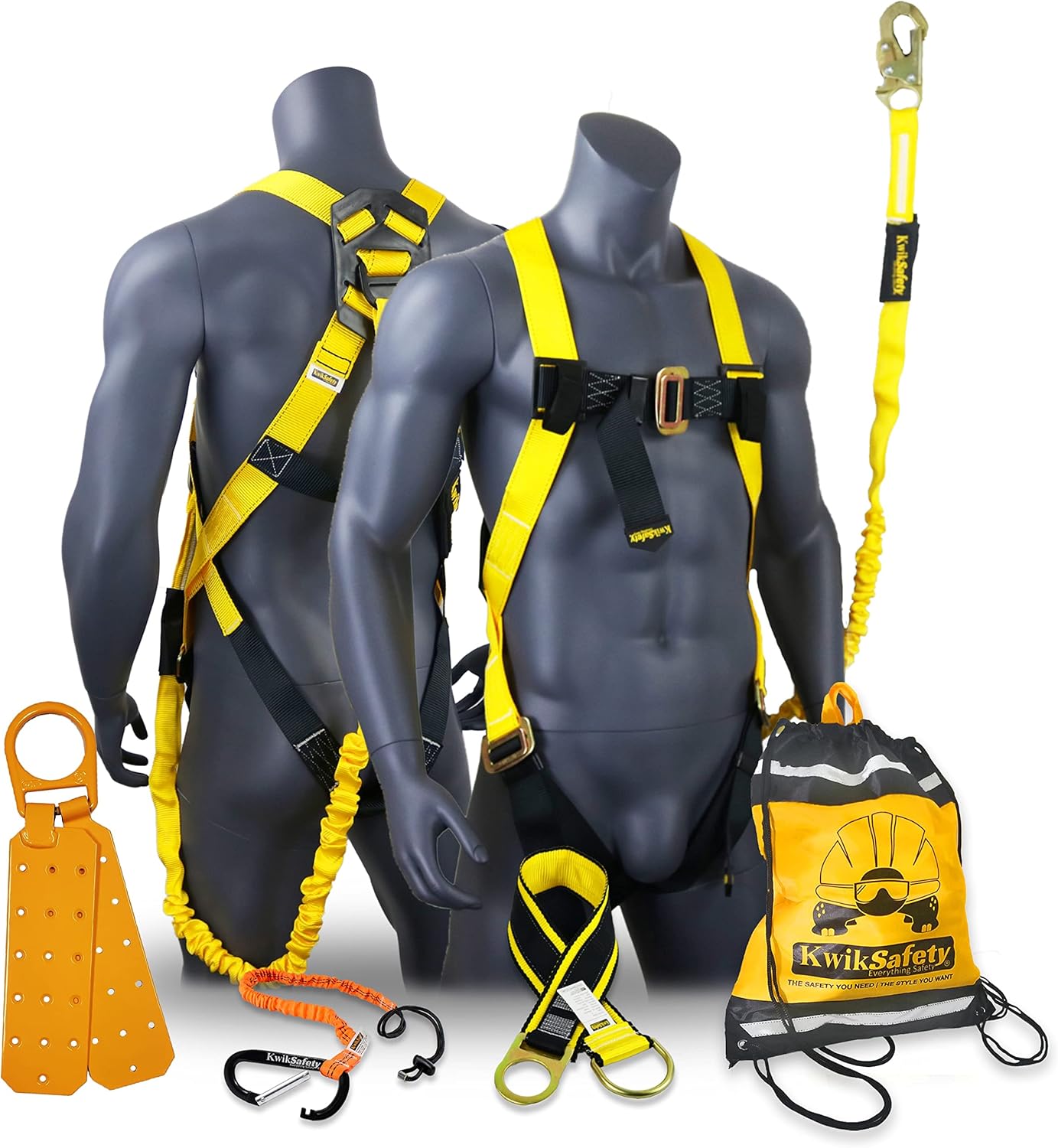 Get "The Safety You Need, The Style You Want" with KwikSafety’s wide variety of ANSI-tested & OSHA-compliant fall arrest safety harnesses and personal protective equipment & safety gear. These deluxe, sleek construction harness and fall protection harness designs deliver a more modern & professional look while meeting the highest standards of fall protection. Each safety harness is crafted with durable polyester synthetic material and equipped with heavy-duty anodized D-rings, adjustable straps, and buckles. This fall harness for men provides full-body coverage and ensures that you and your crew stay safe on the job. KwikSafety’s roof safety harness kit features make it the perfect safety harness for construction, roofing, aerial lifts, scaffolding, tower work, and general industrial jobs. This is the ideal harness for men construction, and also functions as a reliable roof harness, roof harness safety kit, or lift harness depending on the worksite requirements. Perfect for multiple trades and tasks, whether you're looking for a hunting safety harness for men, a construction harness, or a durable safety harness fall protection kit, the SCORPION is built to perform. Combine it with a safety harness lanyard fall protection setup for added security and compliance. KwikSafety offers various sizing options like fall protection harness XL and safety harness fall protection extra large, making it easy to find the right fit. For professionals demanding comfort, durability, and safety, this is the go-to choice in fall harness for men gear.