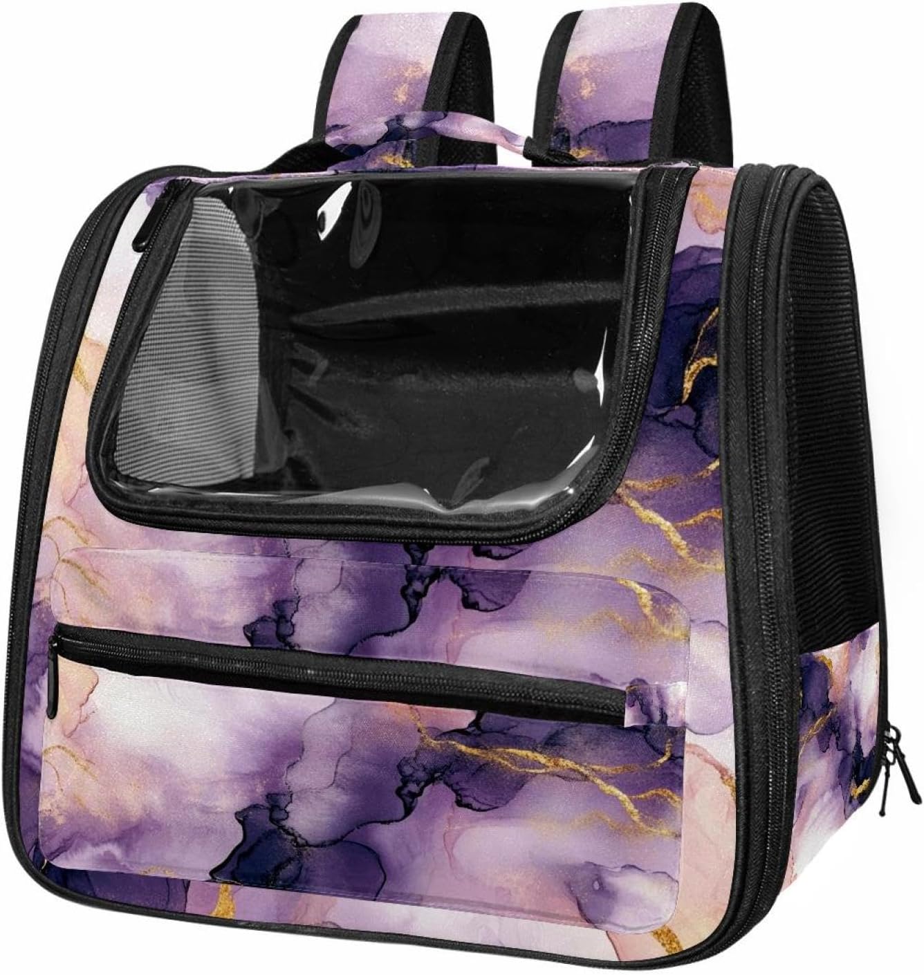 Well made: Cat Backpack Carrier is made from 900D oxford fabric, pp webbing, velvet, nylon, which is very sturdy, environmentally friendly and breathable. Not easily scratched by pet’s claws, pet backpack carrier is SAFETY & ANTI-SCRATCH. The back padding will give you a comfortable and breathable experience. Ventilated Backpack: With a breathable window in the front, this pet backpack allows cats to enjoy the sun without feeling stuffy. There are two side pockets and one big front pocket, and you can take foods or toy for your kitten pet. It is big enough for cat to turn around, and there are side pockets and hook holes, you will enjoy the greatest convenience when taking your cat out. Perfect size: Cat carrier is 15.75x9.84x13.78in/40x25x35cm. Fits most small/medium sized cat, dog, and pet. Quality fleece bed provide a comfortable place for your pet. Lightweight and easy to carry to all places. Built-in harnesses keep your naughty friends from escaping. Removable cosy mat for easier cleaning and let your pet enjoy it inside. Easy to carry: The adjustable shoulder strap of pet carrier bag help you hands-free carrying and makes it the most safe and convenient pet carrier bag for your travel. Seat belt design provide pets with safety protection throughout the trip. Pad protection keep your pets comfortable during travel. Unique Design: Innovative inside graphic design gives you a stereoscopic 3D visual experience. You also send us the photos you interest to make your unique dog or cat carrier. Pet bag is also a amazing gift for pet lover.