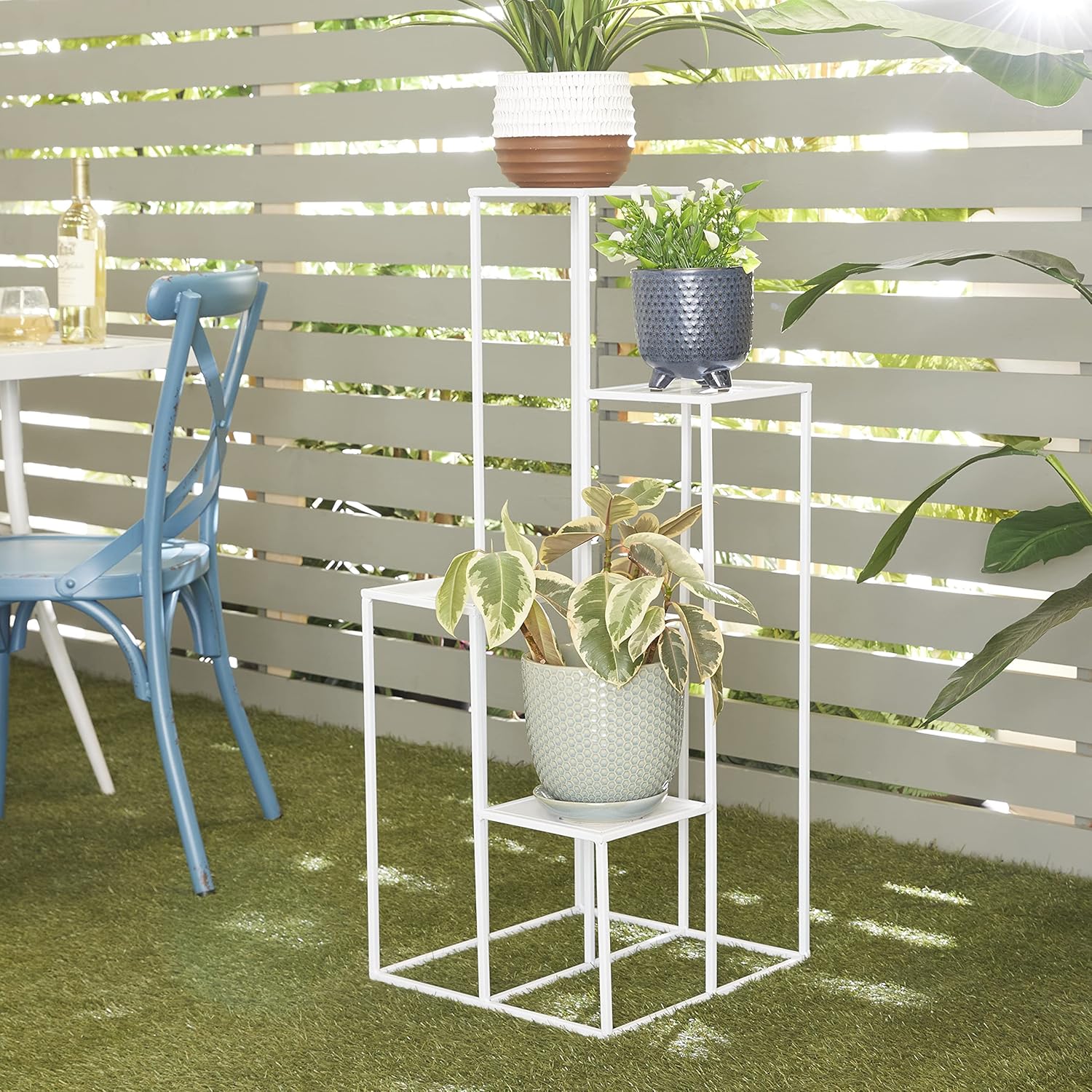 Each tier of the modern plant rack is meticulously crafted from matte white marble, securely mounted on the sturdy iron welded base for stability. The round shape of each tier adds an interesting geometric element to this matte white plant pot stand. Wipe clean with a dry cloth. Perfect for adding depth and saving floor space in your living room or office, this white plant shelf can be easily incorporated into various design schemes. This item ships in 1 carton. Suitable for indoor use only. This item ships fully assembled in one piece. Marble is a product of nature and no two pieces are exactly alike. It is prone to variations in color and/or patterns in the material that add to the beauty and charm of the piece.. Maximum weight limit is 40 lbs. This is a single white colored plant holder. Modern style.