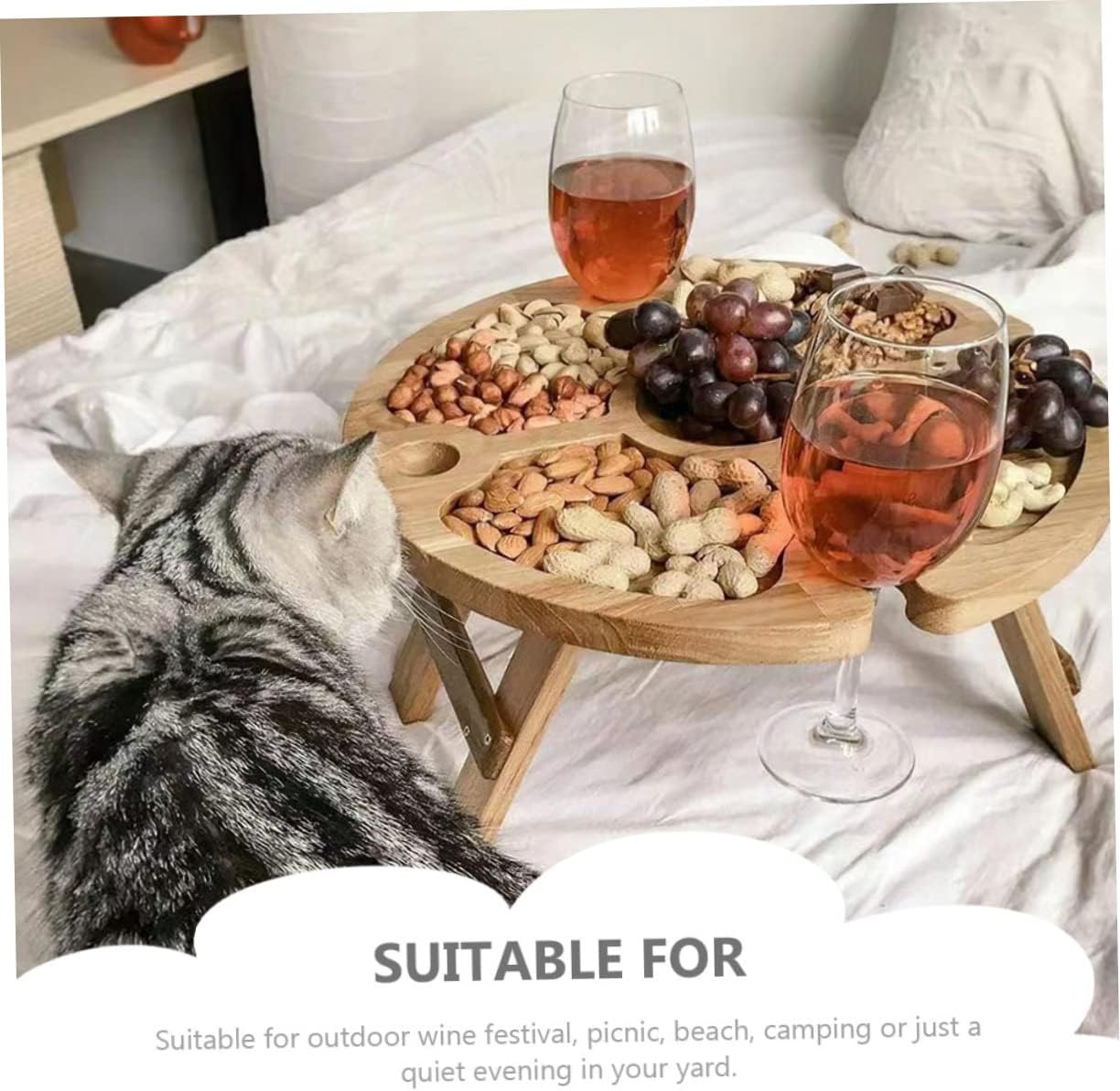 Package List 1 x Camping Folding Table Characteristics -Color: Light Brown low beach table -Material: Wood personal folding table -Size: 30.00X30.00X15.70cm/11.79X11.79X6.17in camping low table -The table will ideally take its place both at the dining table and on a cozy carpet near the and even on a picnic outdoor table. -This table is made of premium wood material for durable and use folding table. -The table is compact and portable, allowing you to take it to anywhere Picnic Folding Desk. -Perfect for picnic, camping, pool, beach, and indoor party. for picnic lover Outdoor Folding Desk. folding tables -This convenient wine table is indispensable for all wine lovers beach table.Goods Informationcamping dining table And also sit with friends and drink another glass.beach is suitable for all those who like to enjoy a glass of wine with delicious cheese or fruit.portable camping table like drink wine at outdoors? If yes, then this picnic wood table is a for you