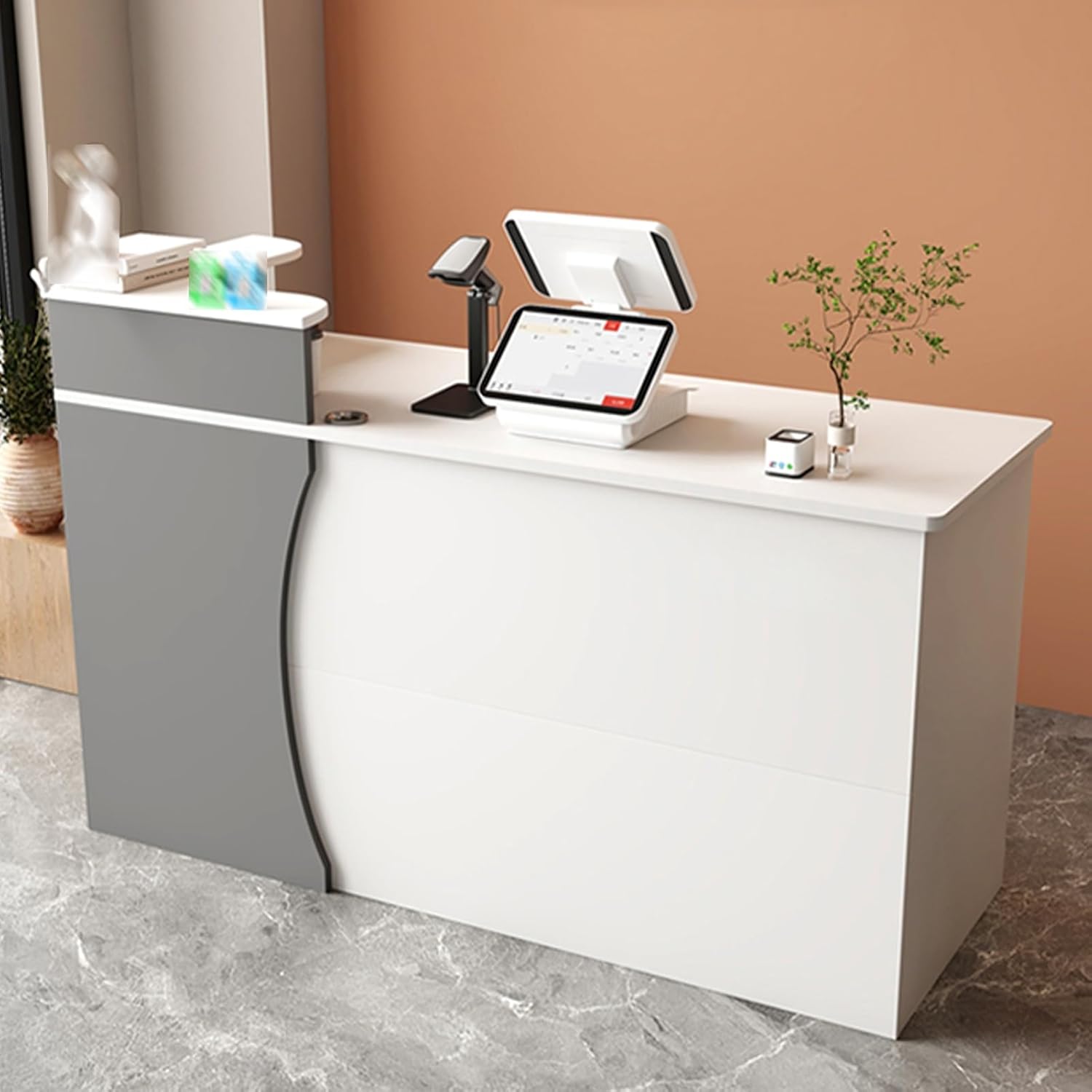 This Retail Counter Comes With A Lockable Drawer And High Side Panels, Providing A Private And Secure Space For Files And Essentials, Enhancing Property Security, Office Reception Desk.Ideal for lobbies, receptions, home offices, retail stores, coffee shops, salons, bars, tattoo parlors and more!Product name: Cashier, Reception Desk, Front Desk, Front Counter, Counter Desk, Reception Counter, Retail CounterProduct style: simpleProduct color: multiple colors availableProduct material: Artificial boardApplicable scenarios: clothing stores, beauty salons, etc.Product Size:L: 80cm/31.4in, 100cm/39.3in, 120cm/47.2inW: 41cm/16.1inH: 100cm/39.3inNotice:1. Note: Due to the particularity of the furniture, there will be slight errors in the finished product, which is normal. The data is for reference only and must be based on the actual product. We hope for your understanding!