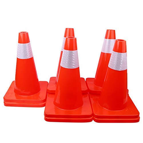 10 Pack 18" Traffic Cones PVC Safety Road Parking Cones Weighted Hazard Cones Construction Cones for Traffic Fluorescent Orange w/4" Reflective Strips Collar Traffic Safety Cones Material: PVC