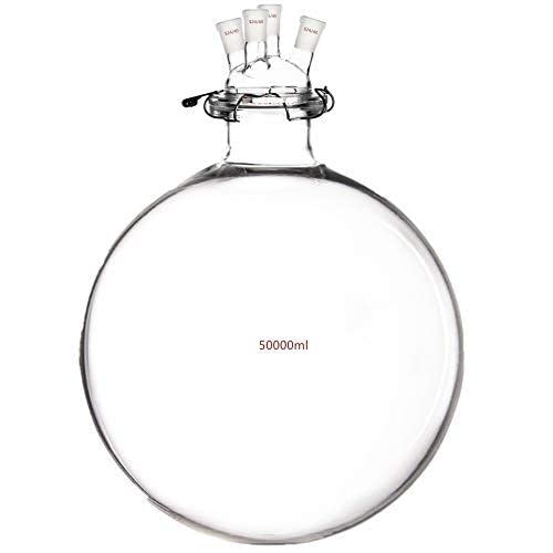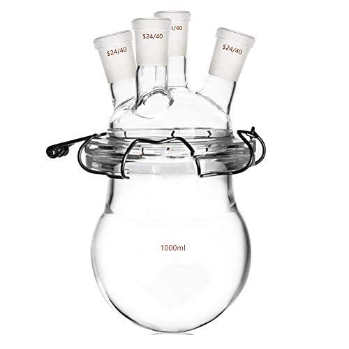 Dinglab 24/40 Glass Reactor Four Necks Round Bottom Lab Reaction Flask Vessel with 4-Neck Lid and Clamp Made From Borosilicate Glass 3.3. 24/40 Glass Ground Joint Capacity 250ml 500ml 1000ml 2000ml 3000ml 5000ml 10000ml 20000ml 50000ml Available Round Bottom Stainless Steel Clamp Outer DIameter of The Flange is 150mm