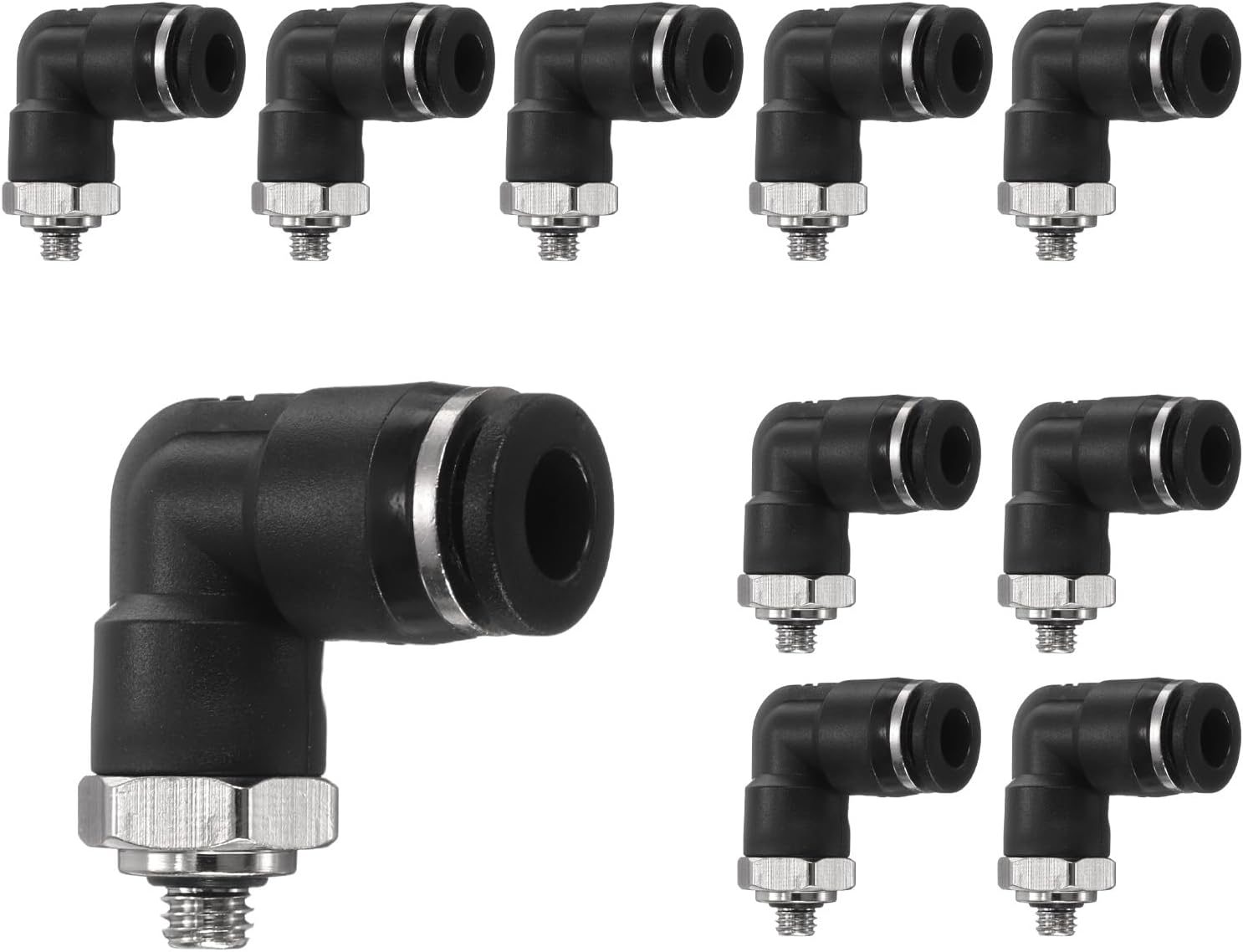 HARFINGTON Push to Connect Fittings Male Elbow 6mm Tube OD x 10-32 UNF Thread Plastic Quick Connect Air Hose Pneumatic Fitting Kit Push Lock Connector PL6-U, Black