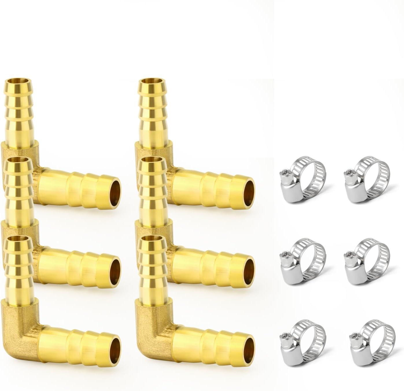 12PCS Brass Hose Barb Tee, 5/16" Hose Barb, 3-Way Tee Hose Fitting for Fuel/Airl/Water/Gas/Oil