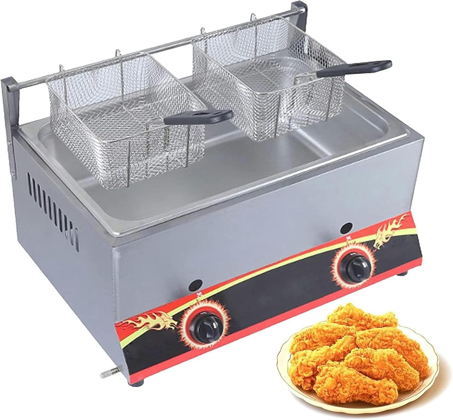 Colour:Liquefied Petroleumgas LpgItem Weight:8.69 KilogramsMaterial:Stainless SteelProduct Description: Our stainless steel deep fryer, with a removable oil container and non-stick pan, makes the fryer fast and easy to clean, easy to hold, and has a cool touch handle to make the fryer safer. suitable for home and commercial use, suitable for French fries, fish, chicken nuggets, etcNote:★ Keep away from children. When connecting this product to a power outlet, do not leave it unattended.★ To avoid sudden power failure, it is recommended to plug the fryer into a wall socket instead of a terminal block socket, and it is not allowed to insert two plugs into the same socket board.★ When receiving the package, if the metal cover is dented or the cover is damaged, it may be caused by a collision during transportation. Please contact us in time, we will solve the problem for you quickly. Thank you for your understanding