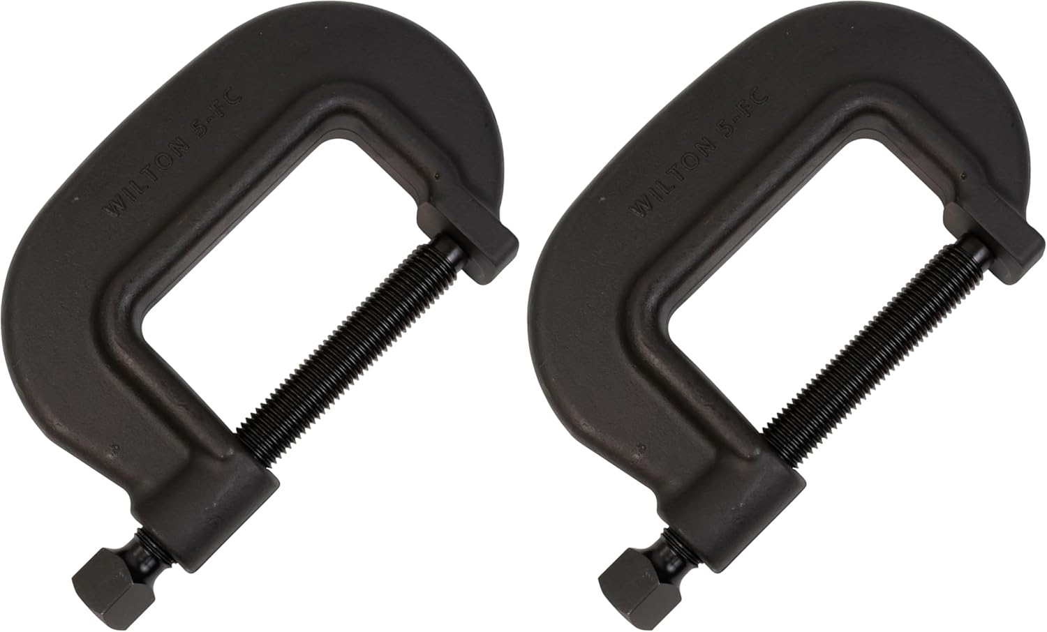 Wilton Brute Force Bridge C-Clamps are ideal for heavy construction and fabrication. Brute Force C-Clamps boast a drop forged frame, black oxide coating, and clamping force ranging up to 40,000 lbs. Spindles are full length, machined from a single piece of square, cold drawn steel tempered and hardened. Square spindle heads stand up to heavy wrench tightening.