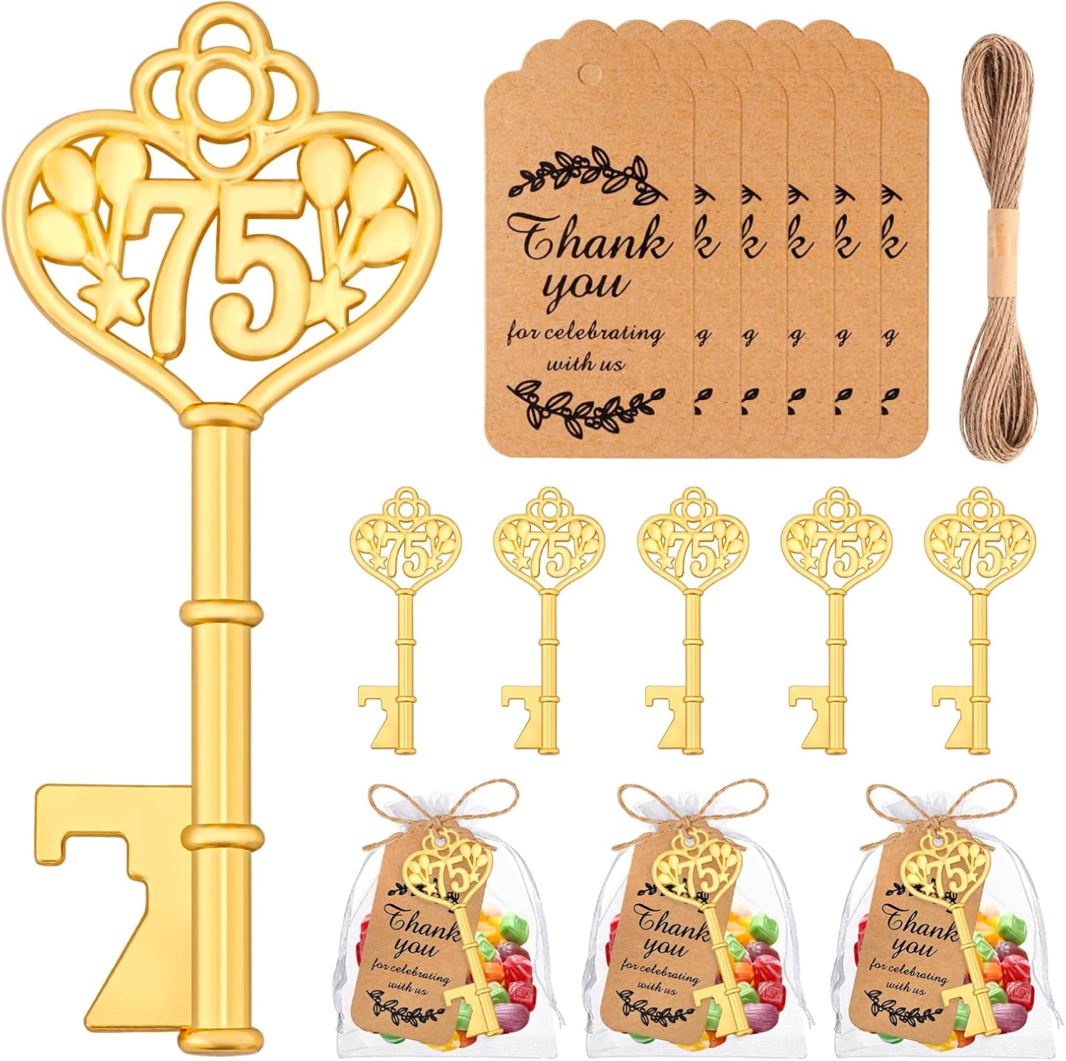 • 50Pcs 50th Gold Key Bottle Opener: Celebrate your 50th birthday or wedding anniversary in style with this elegant and eye-catching gold key bottle opener.