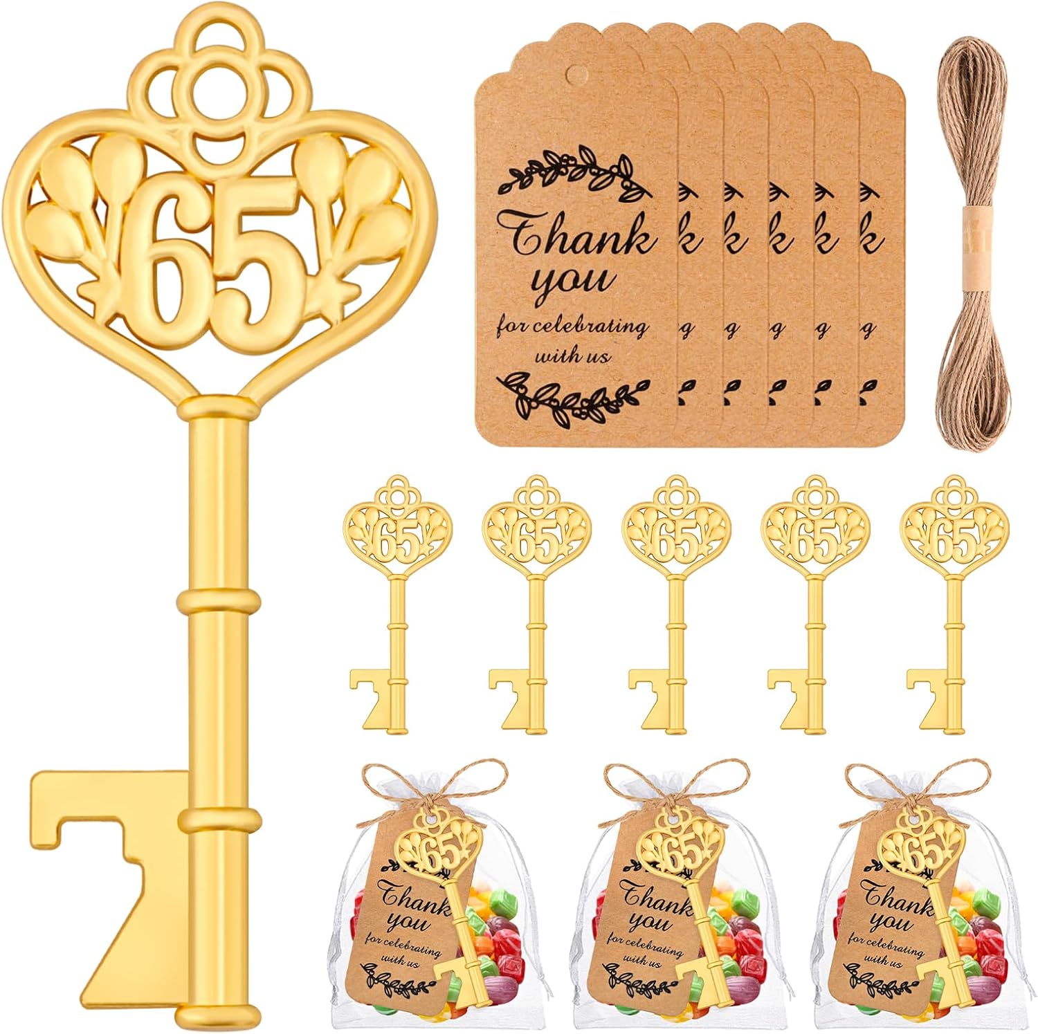 Package Including:50 bottle openers ,55+Thank you cards,55+gift bags