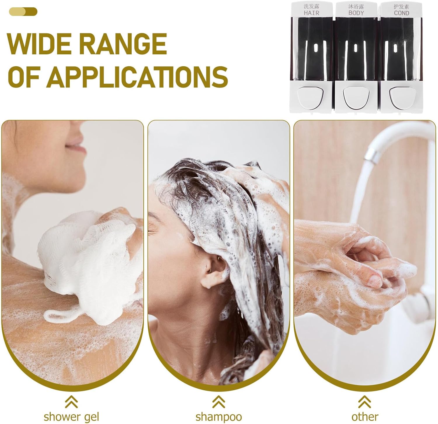 • Convenient use: three-head design for family use wall-mounted design of this shampoo dispenser saves space,bathroom soap and lotion dispenser,plastic soap dispenser