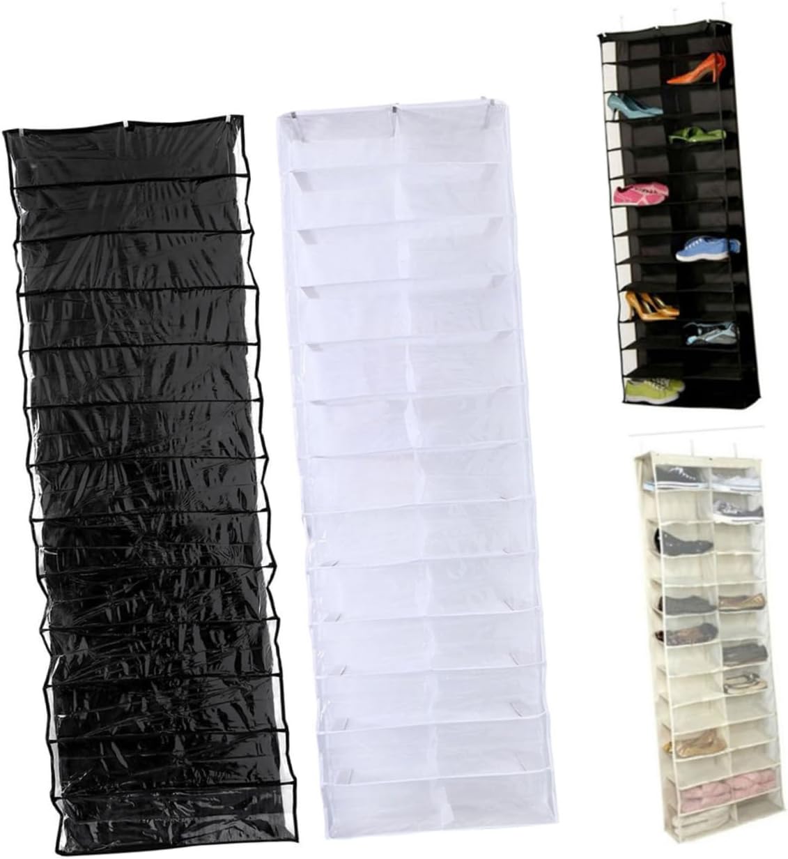 Package Include 2 x Hanger Shoes Organizer Features -Product Info:Storage hanging bag - Size: 55x16x5cm sock organizer. - Color: Black shoe rack hanging. - Material: PVC, nonwoven fabric, metal shoe holder for door. - mounting, quick and easy to assemble, no extra required closet organizer. - It will save large space for your home. Reasonably utilizes the unused storage space to the maximum degree shoe organizer hanging. - Includes a convenient hook to position the organizer over the door, closet or cabinet shoe and purse organizer. - Great large capacity, 26 divided shelves offer enough storage for pairs of shoes, slippers, belts, scarves and other small items shoe organizer. - Can keep your shoe collection neatly organized for a bedroom, closet, dorm room, , and other tight living spaces shoes organizer.Goods Informationshoes bin storage Still confused with the messy shoes on the floor or the limited space of the shoe shelf for storage? Well, let's bid farewell to these trouble with these over the door hanger shoes organizers.closet hanging shelves Each has 26 large pocket which can hold up to 26 pairs of shoes and some other small items.shoe organizer hanging You can quickly and easily it over a closet or bedroom door for neat and orderly storage.shoe organization Idea for space saving in your home