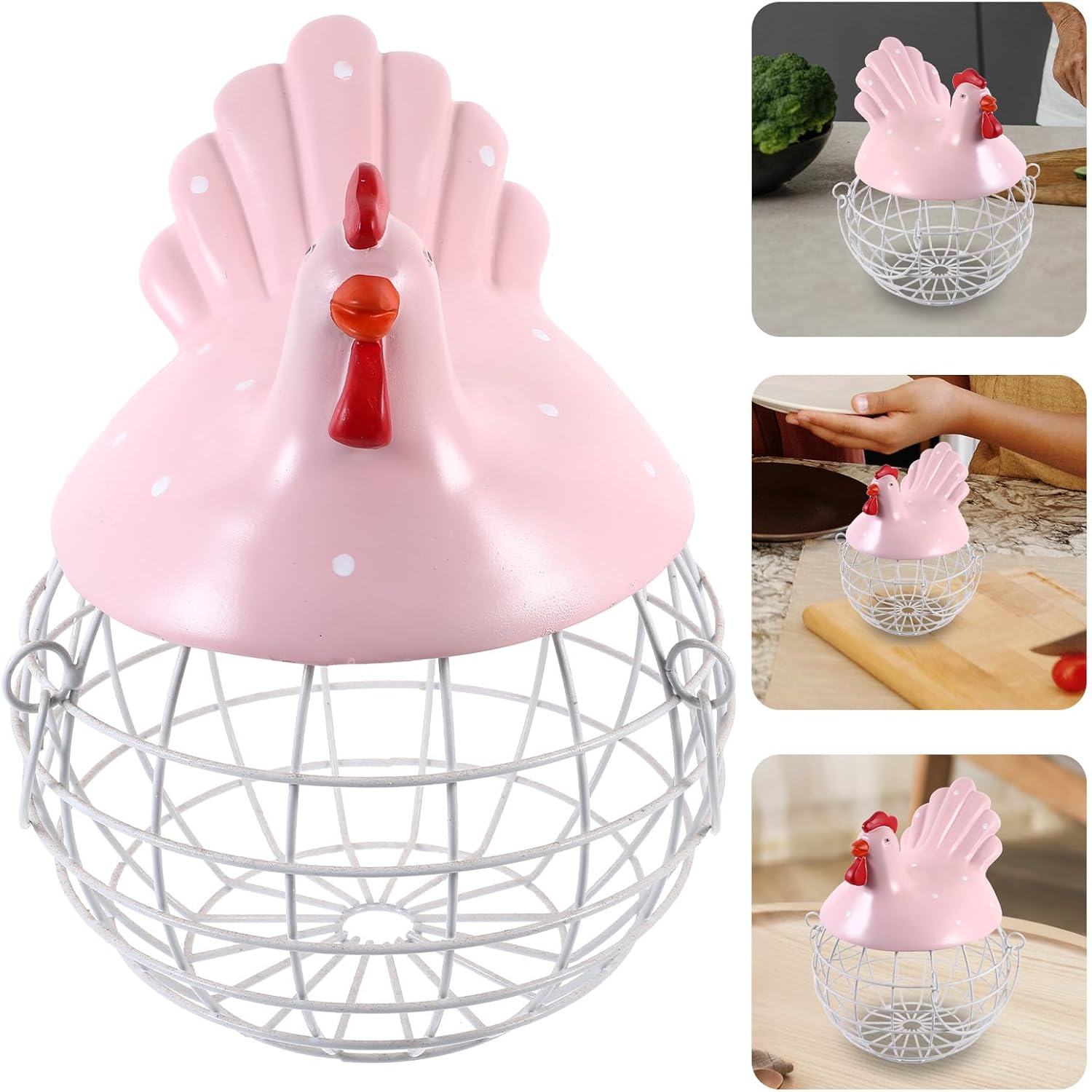 Package List 1 x chicken shape storage organizer Characteristics -Color: Random Color -Size: 31x30x24cm. -Material: Resin, iron. -Product Info:Wrought iron decorative basket - Multi-function, fits into many rooms of the house for organizing all types of items eggs storage basket. - Good for storage eggs, fruit, other foods, an essential good helper at kitchen fresh egg holder. - With its open lid design, you can also keep your eggs at the same room temperature and from an irritating food in your refrigerator egg collector. - Special chicken-shaped egg tray with fine workmanship, never run out of eggs again egg collection basket. - You can put all the eggs in a basket, it protects them from cracks eggs basket.Goods Informationeggs basket The special chicken-shaped basket is made of iron and resin, a fine storage basket for collecting eggs.egg container You even can storage vegetables and fruits in the basket also.kitchen multi-purpose basket A wonderful addition to kitchen or living room, fits into many rooms of the house for organizing all types of items