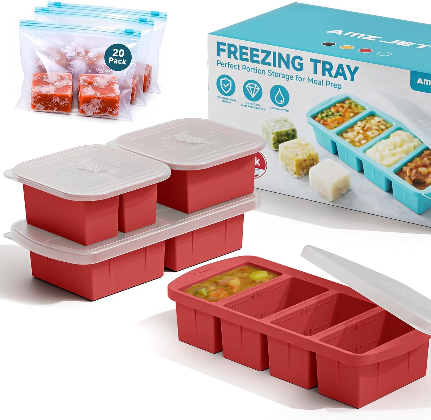 | Included Components | 4Pack Freezer Trays with Lid, Reusable food storage bags*20 |