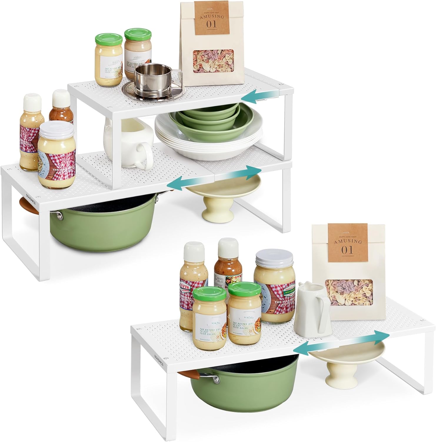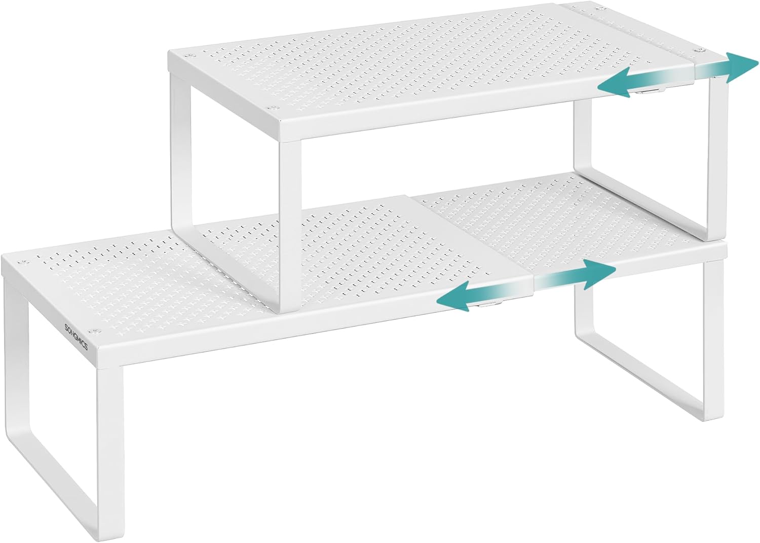 | Item Type Name | Set of 4 Expandable Kitchen Countertop Shelves, Small Cupboard Organizers, Metal, Space-Saving Tabletop Shelves, Matte White UKCS404WC01 |