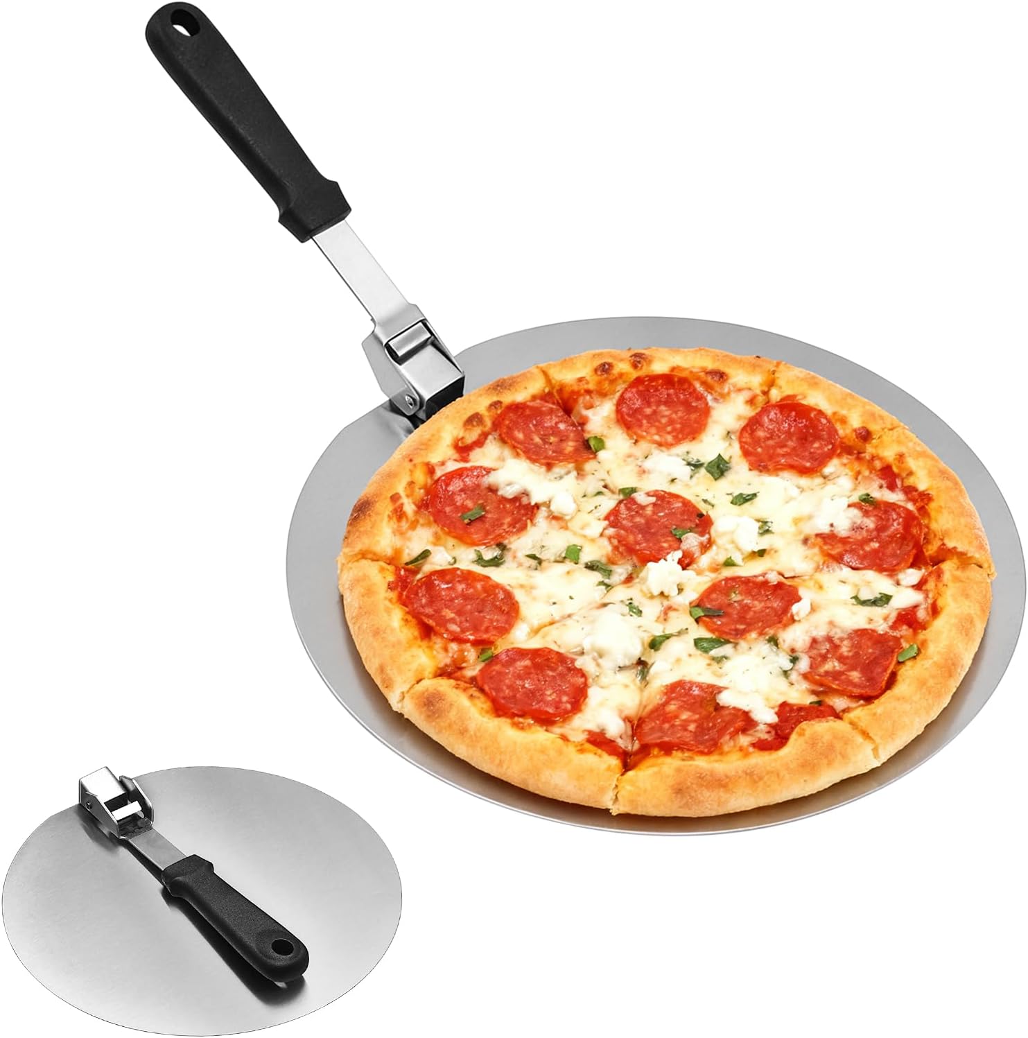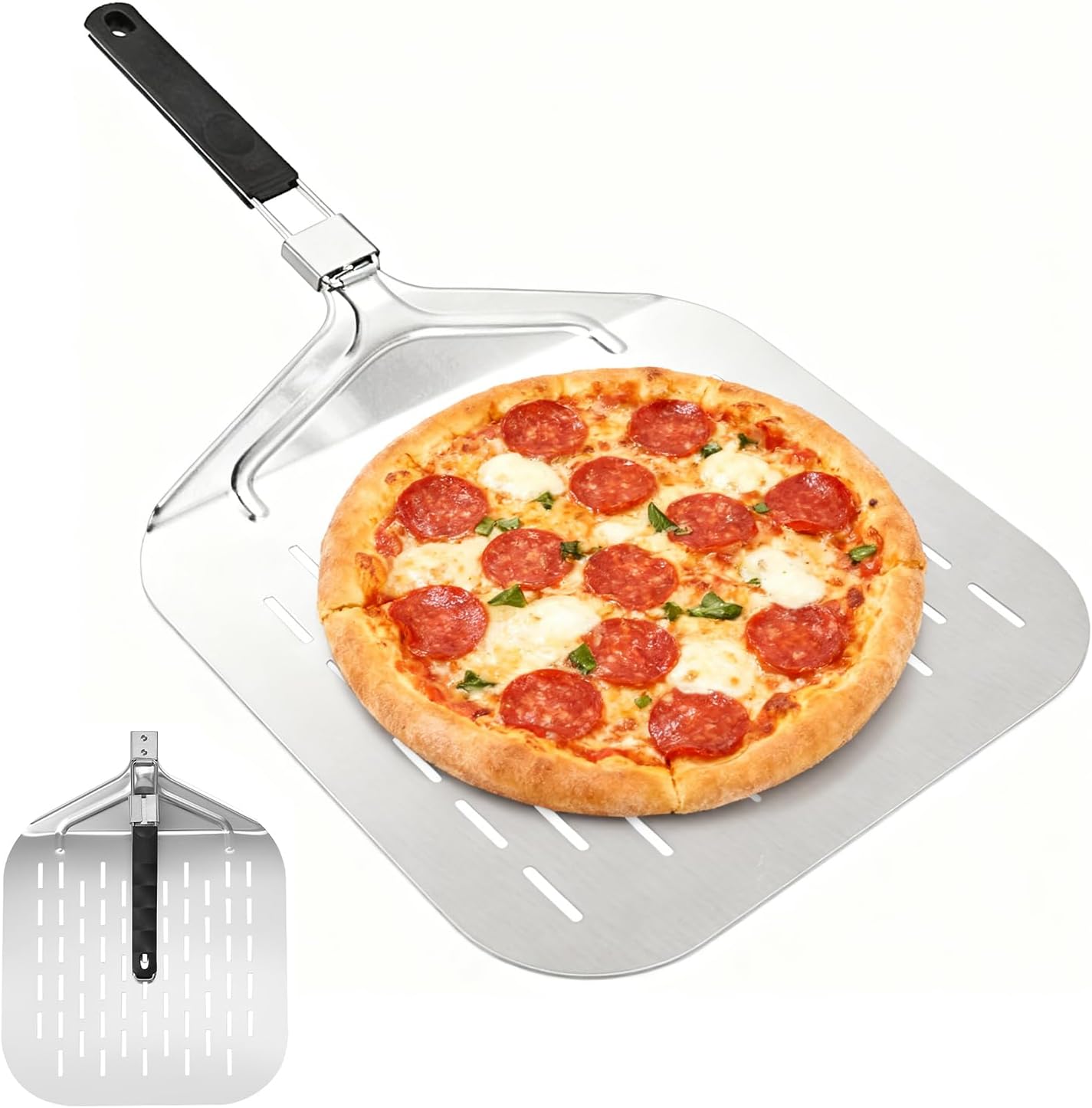 Upgrade Pizza Peels with Foldable Handle,Stainless steel metal Pizza peels paddle for oven ,Essential Kitchen Accessories Tools for Making 10 12 13 inches Pizza