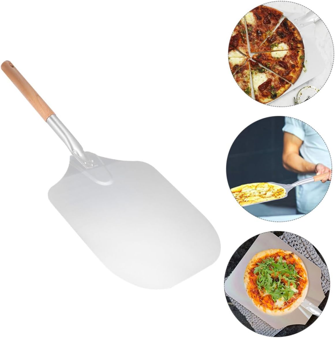 Package Include 1 x pizza shovel 1 x cutter Features -Material: Aluminum, wood and stainless steel kitchen supplies. -Size: About 65.00X30.50X2.50cm / 25.55X11.99X0.98inch pizza transfer shovel. -Color: Assorted color cake transfer shovel. -Detachable spiral wooden handle, convenient and easy to use baking tools. -Easy to clean and maintain, they will never get rusty cake cutter and shovel. -The aluminium pizza shovel is light and easy to operate pizza transfer tools. -This wide shovel can easily transfer any kinds of pies pizza cutter and shovel. -A set of useful and essential kitchen tools that you deserve baking accessories.Goods Informationbaking props Are you looking for professional and convenient pizza transfer tools? If yes, then you can not miss these items! This wide shovel can easily transfer all kinds of large food.cake cutter and shovel The cutter can be used to cut cakes, pizza, pies and more