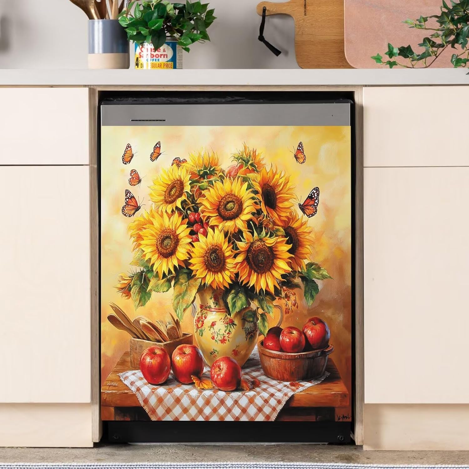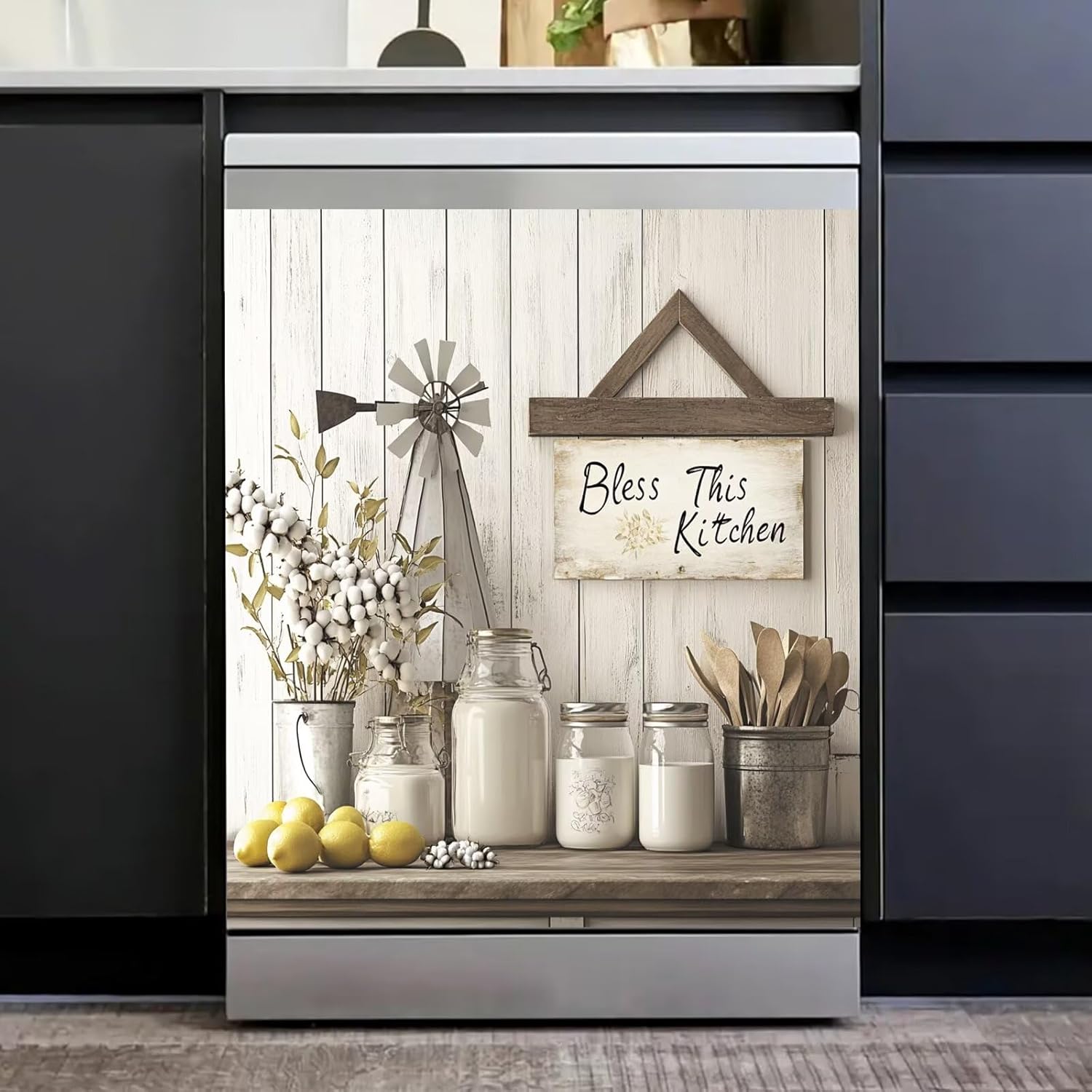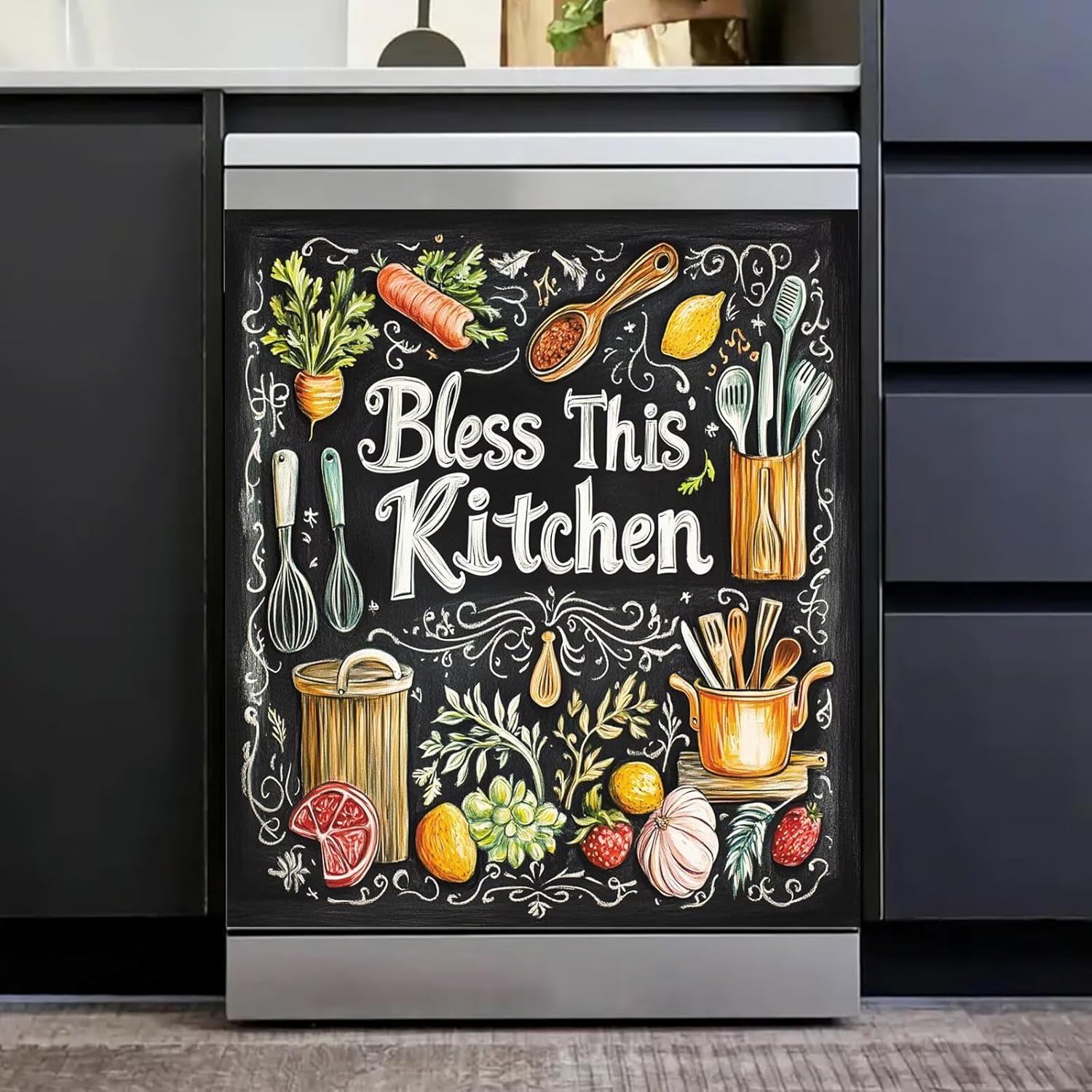 Product Highlights.ENHANCE KITCHEN DECORATION: This stylish magnetic dishwasher cover can update the look of any kitchen, giving it a modern and stylish appearance.VERSATILE USE: The magnetic dishwasher cover is easy to install and remove, convenient to switch designs or clean the cover.DURABLE MATERIAL: This dishwasher magnetic cover is made of high quality magnetic sheet, durable and protects your dishwasher from scratches and dents.EASY TO CLEAN: Simply wipe with a damp cloth to remove any smudges or stains and keep your dishwasher clean.Usage Scenarios.Ideal for homeowners looking to update the look of their kitchen without the need for a full remodel.Ideal for renters who want to personalize their living space without making permanent changes.Ideal for those who want to protect their dishwasher from daily wear and tear, but also want to add a decorative touch to their kitchen.All in all, this dishwasher magnet cover is a practical and stylish solution that enhances your kitchen décor and protects your dishwasher at the same time. With this versatile and durable magnetic cover, you can effortlessly upgrade your kitchen.