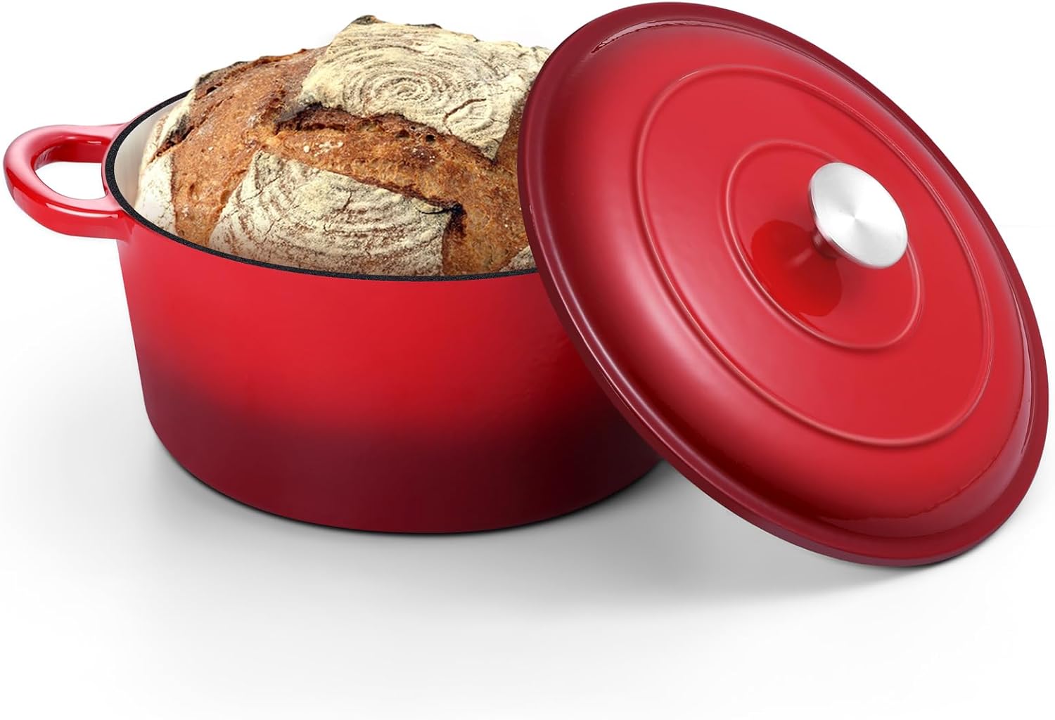 | Material | Enameled Coatings, Cast Iron Core, Stainless Steel Lid Knob |